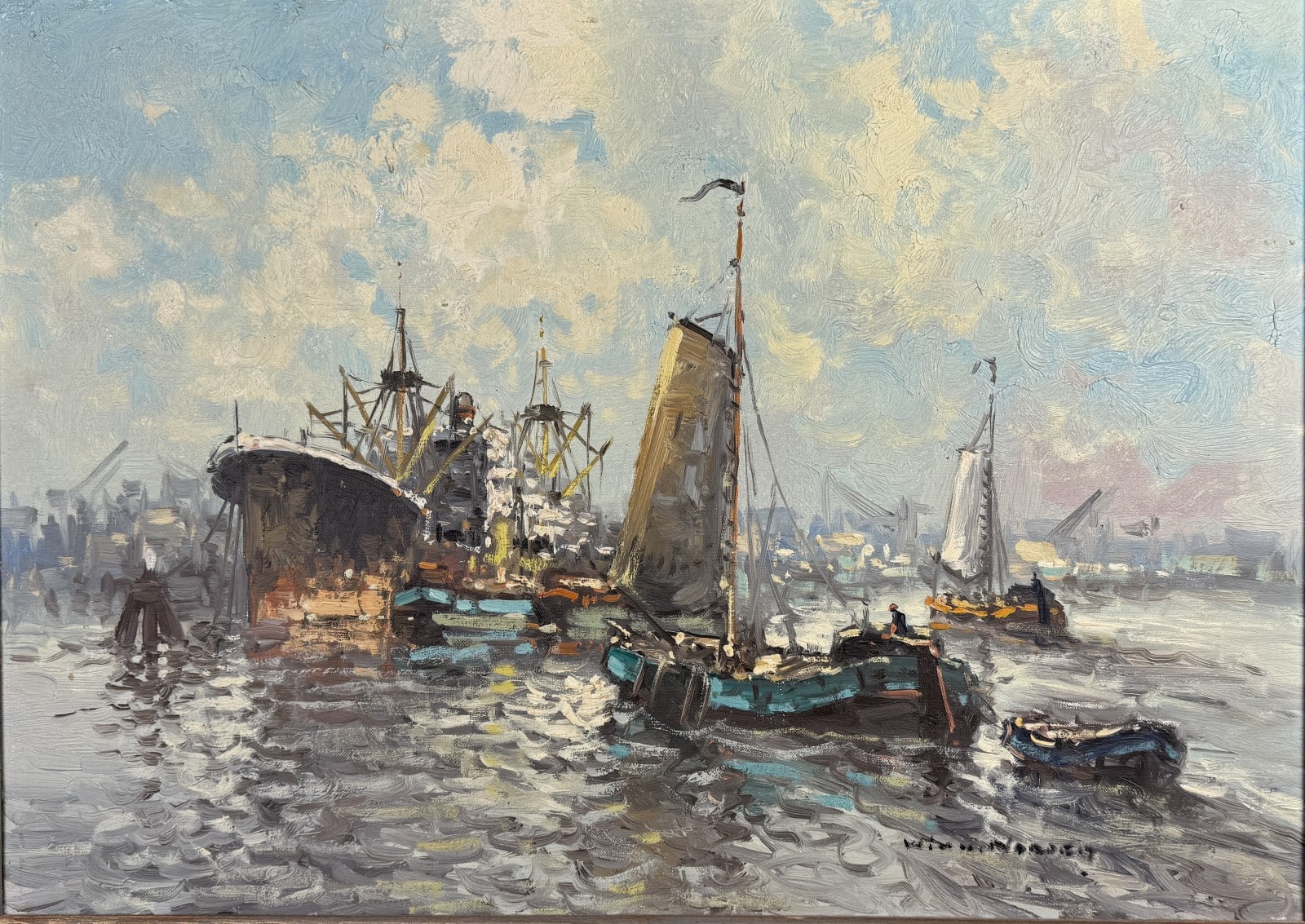 • Wim van Norden (1917-2015) Hafen von Amsterdam, Öl auf Leinwand, signiert, ca. 69×49 cm, mit Rahmen ca. 82×62 cm.