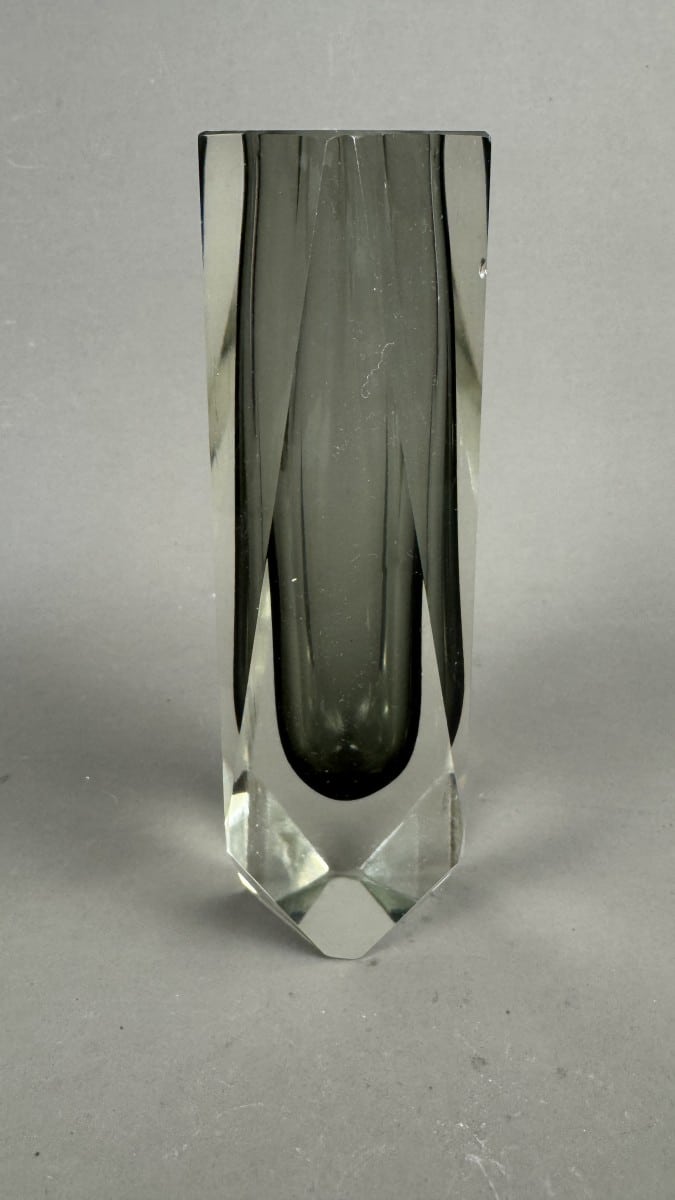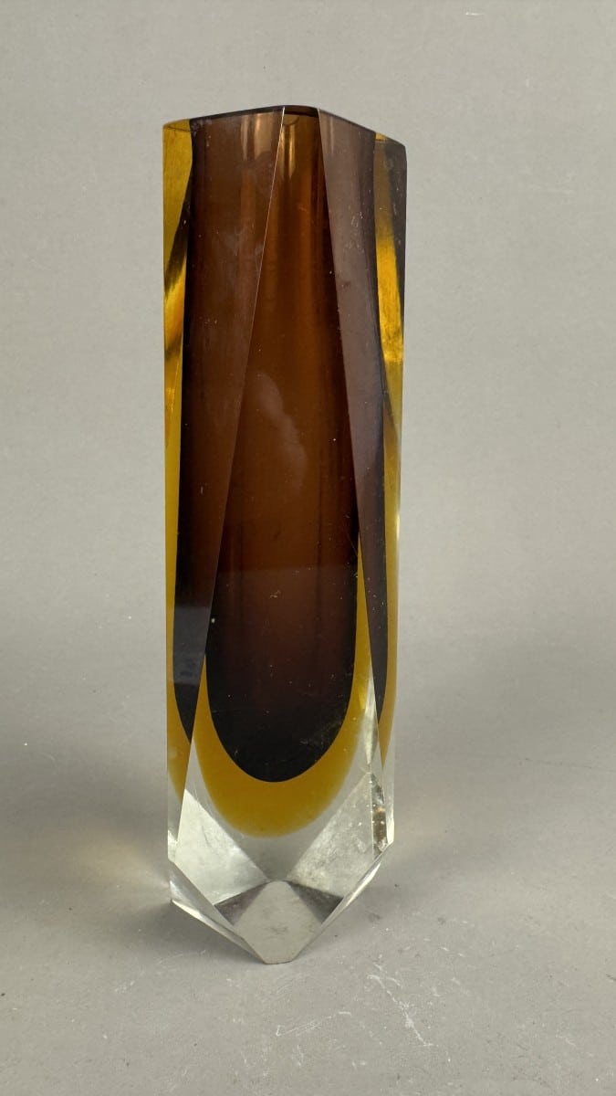 • Facettierte Sommerso Vase aus Muranoglas, Flavio Poli zugeschrieben, Italien, 1970er, H 21 cm