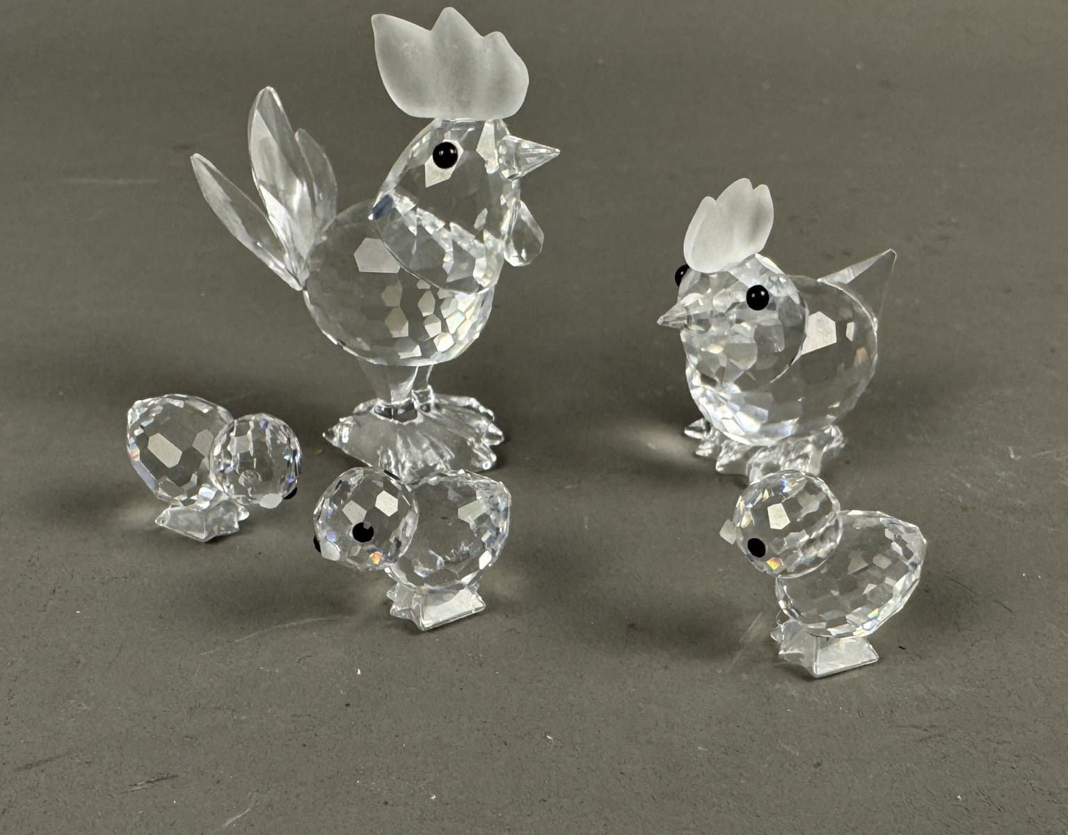 • 5 Swarovski Kristall Figuren, Hahn, Henne, 3 Kücken