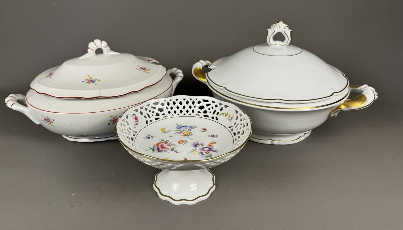 • 2 Suppenterrinen, 1 Anbietschale, versch. Hersteller wie Burg Lindau Feines Porzellan