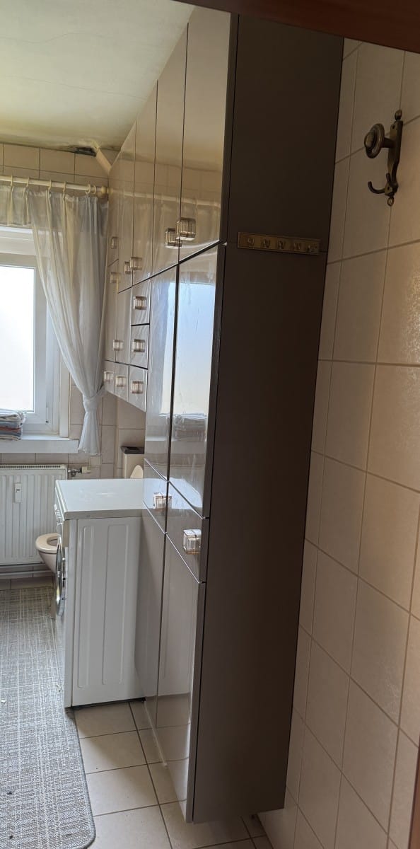 • Vintage Alibert Bad Einbau SIEHE BILDER !!! Seltener Wandverbau H 233cm T 39cm gesB 212cm mit Waschbecken, Unterkästchen und Spiegel.