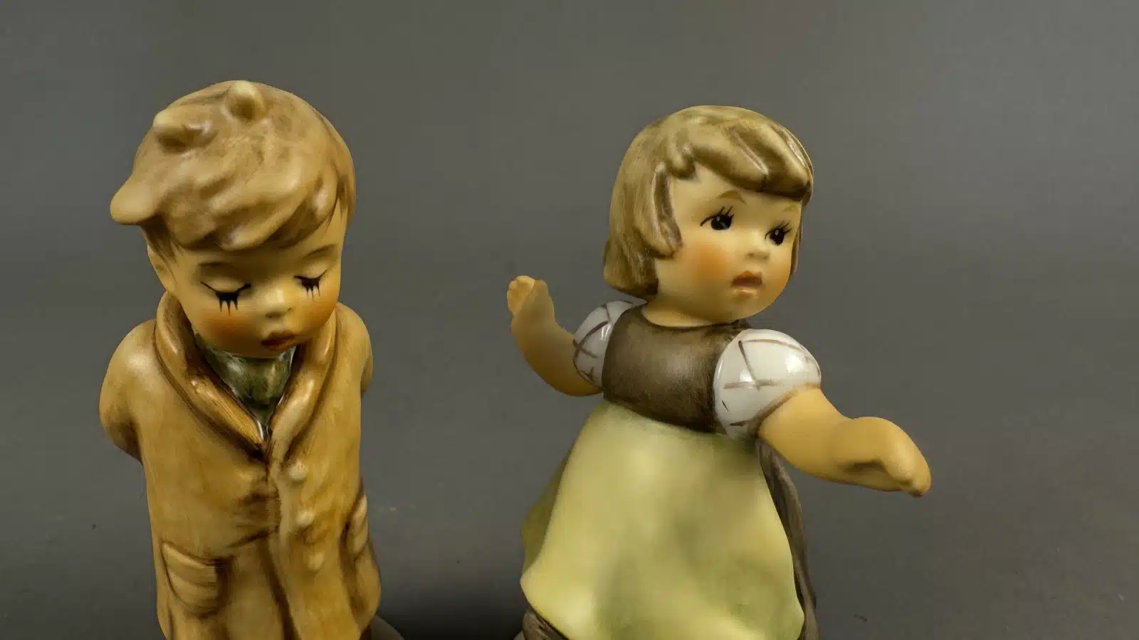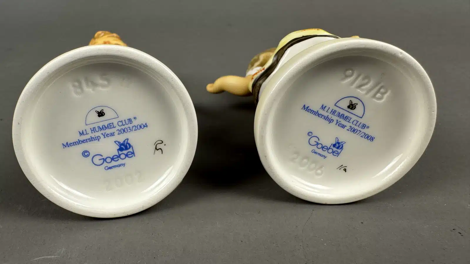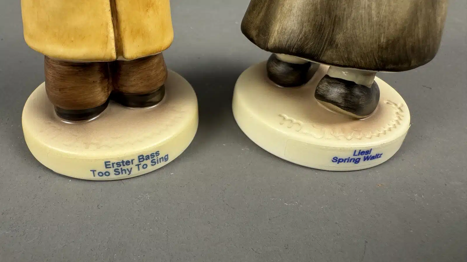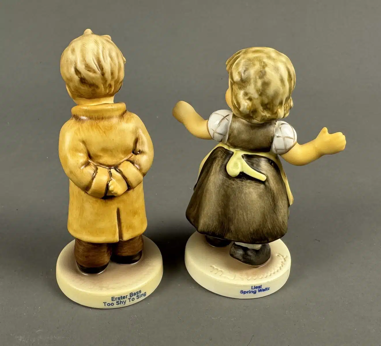 2 Goebel Hummel-Figuren, „Frühlingswalzer“ (Spring Waltz), „Too Shy To Sing“ (auch bekannt als „Erster Bass“), Modellnummer 845