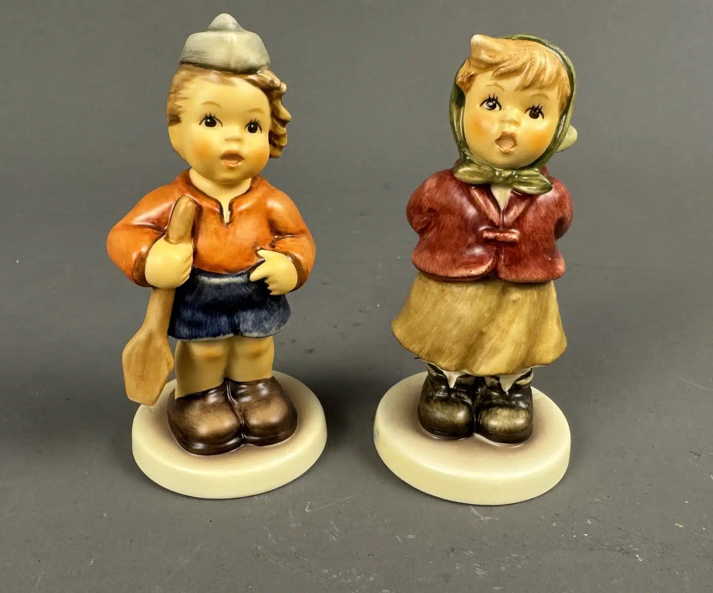 2 Goebel Hummel-Figuren, Kleiner Junge Ich möchte mitrudern, Nr.2181 – SINGT MIT / KINDERCHOR