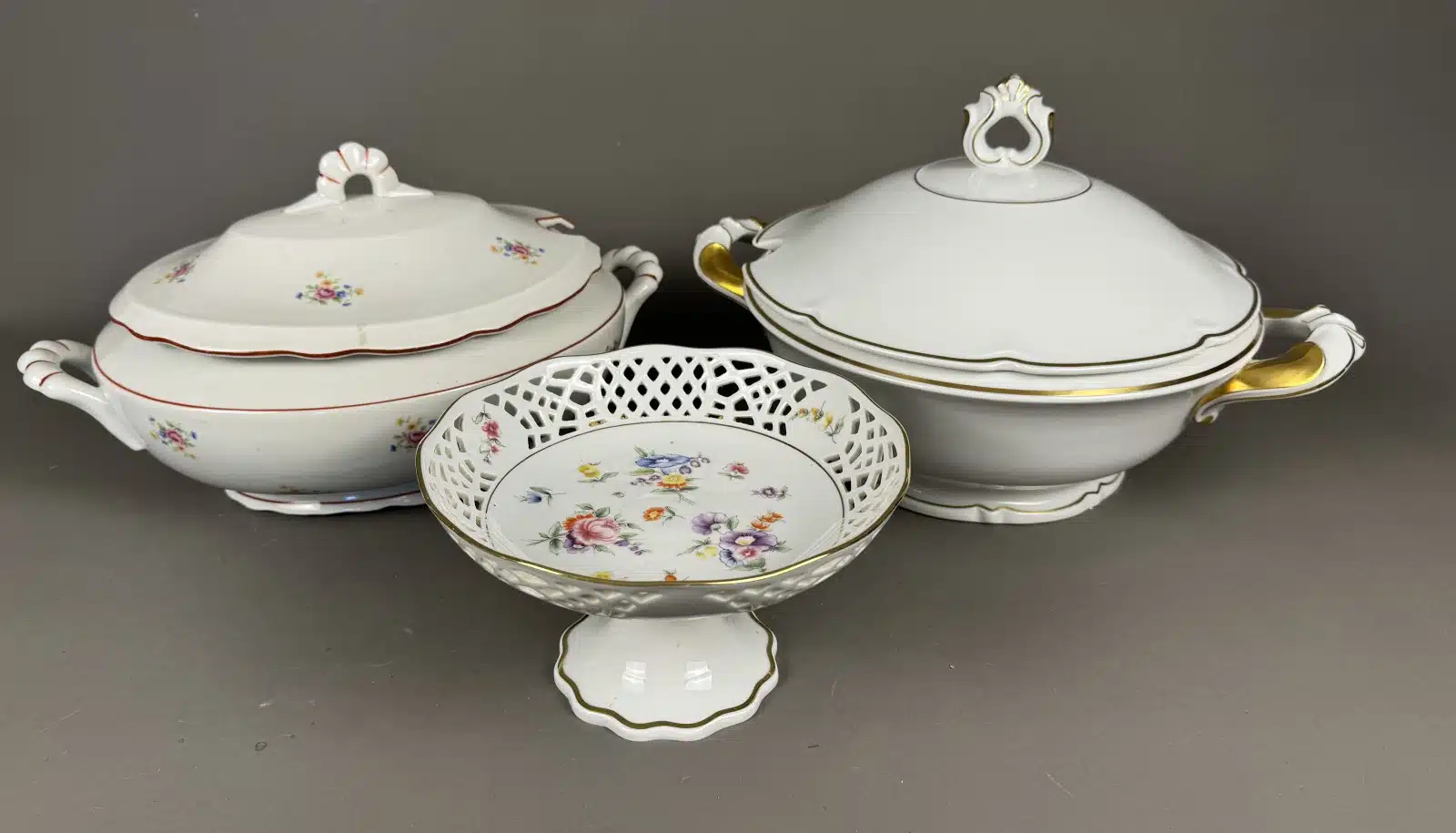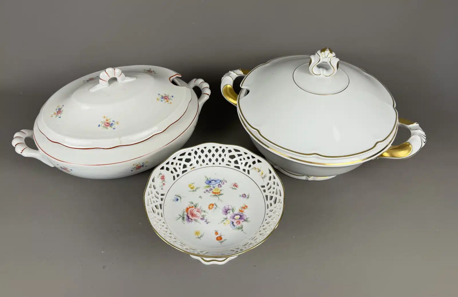 2 Suppenterrinen, 1 Anbietschale, versch. Hersteller wie Burg Lindau Feines Porzellan
