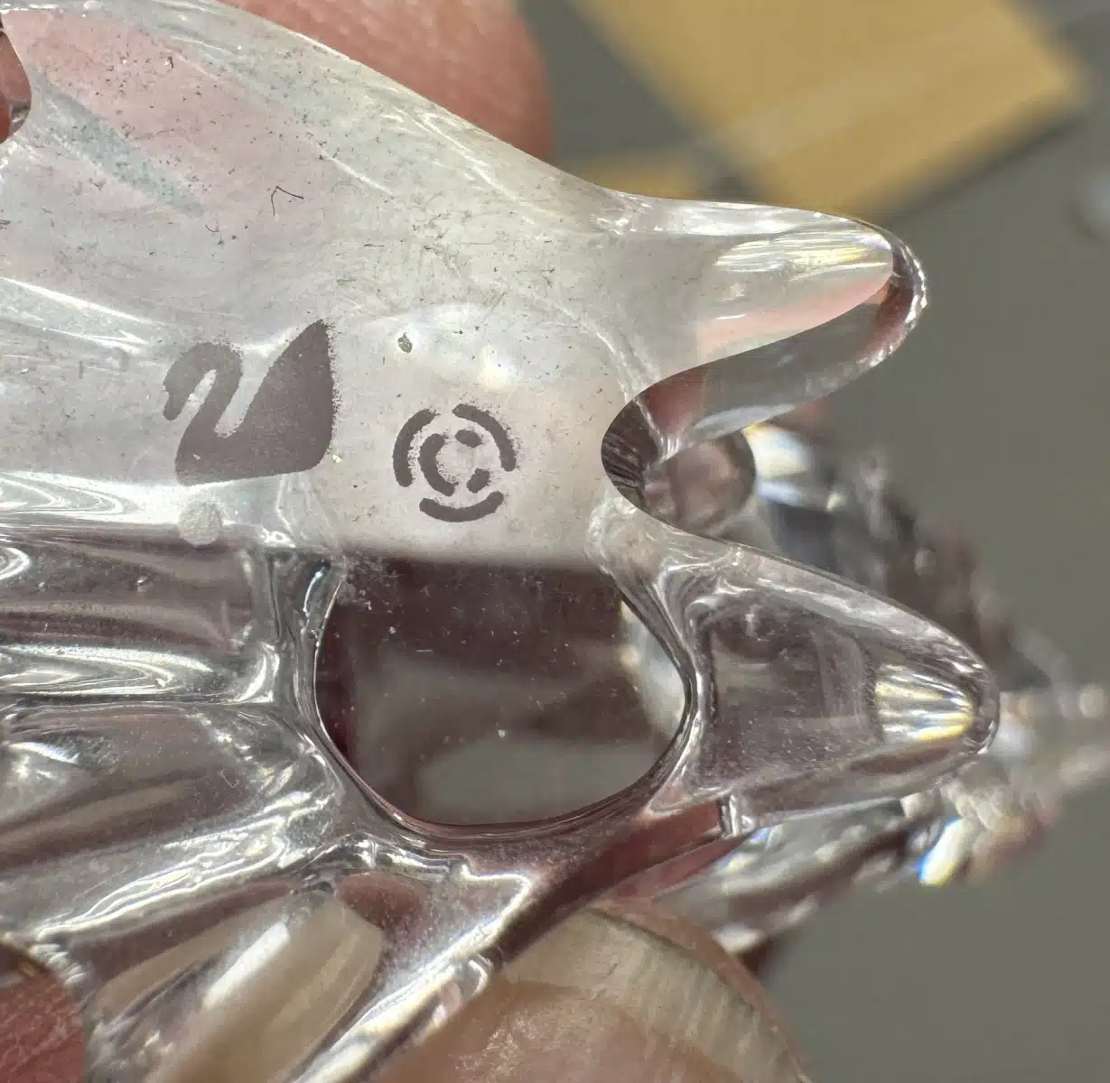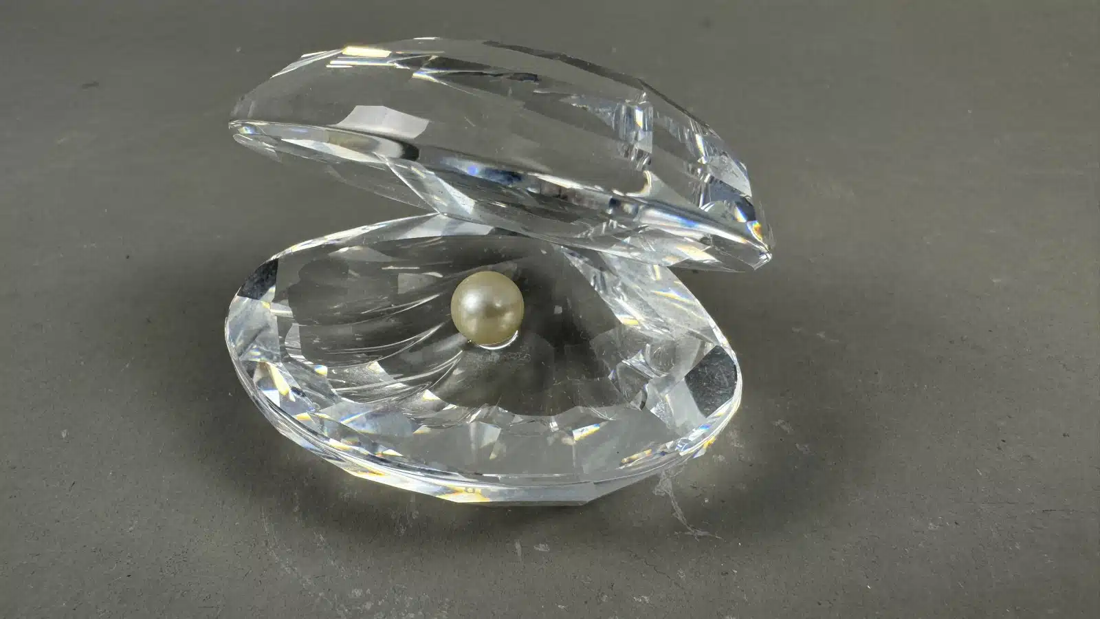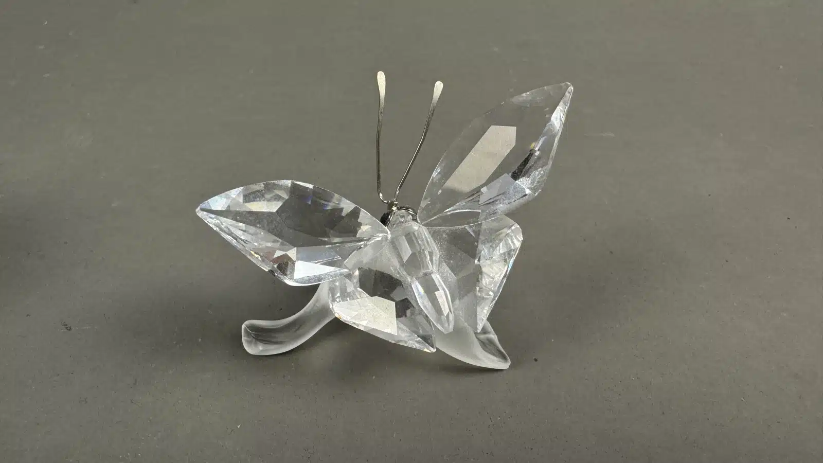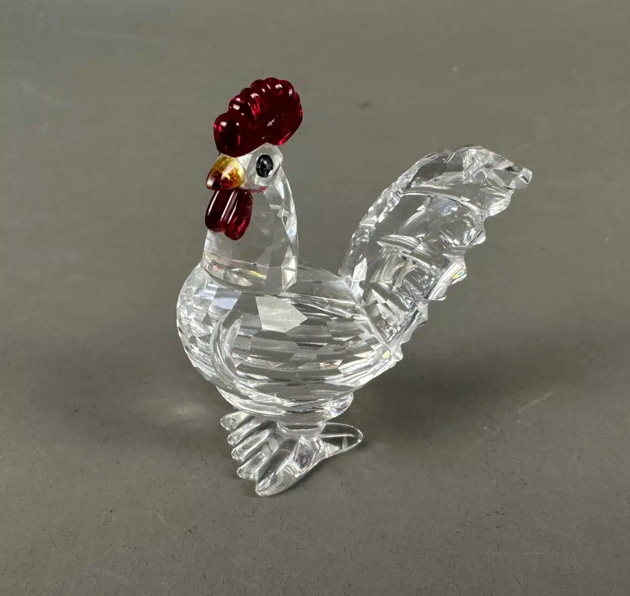 3 Stück Swarovski Kristallfiguren, Schmetterling auf einem Blatt, Hahn, Muschel mit Perle