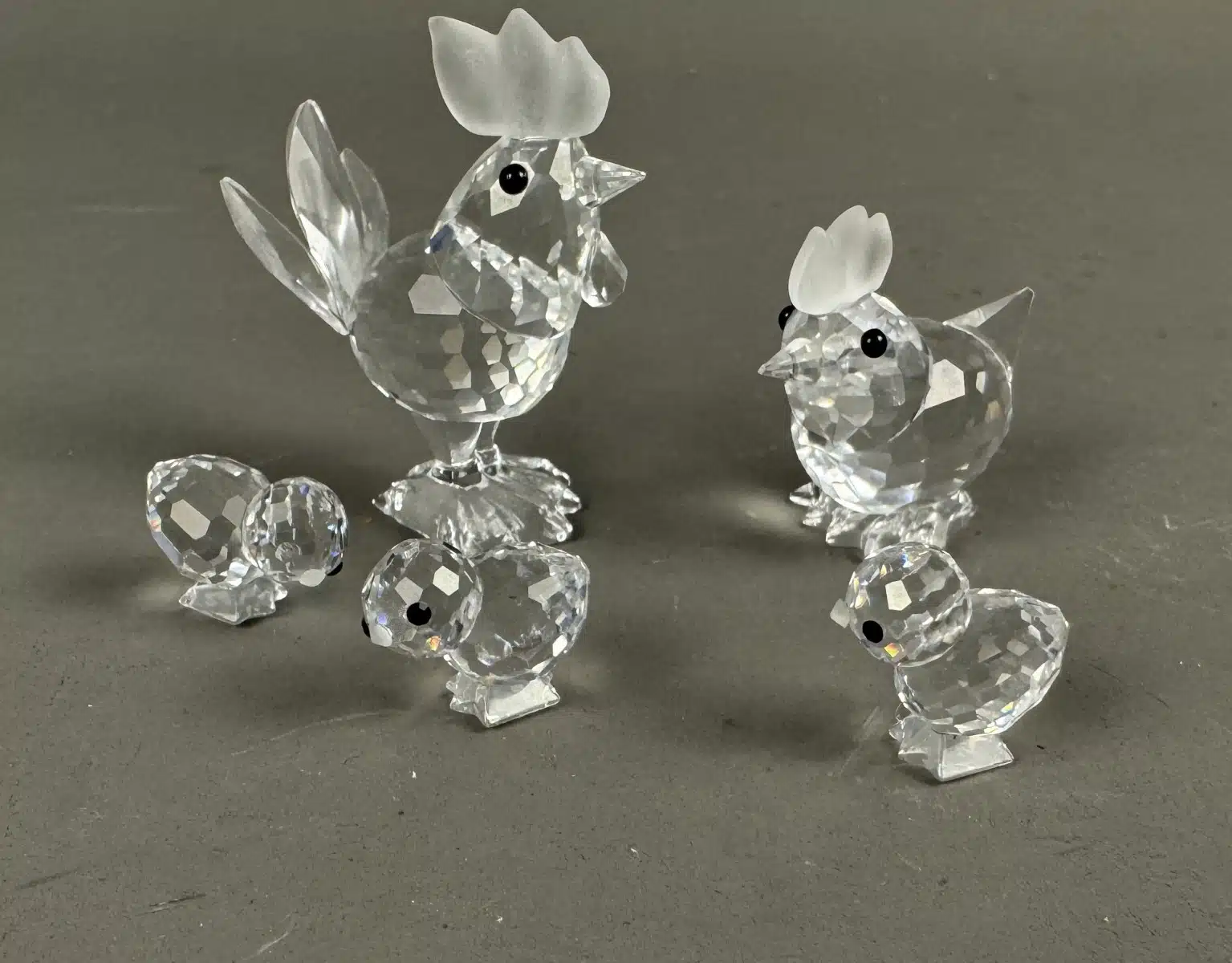 5 Swarovski Kristall Figuren, Hahn, Henne, 3 Kücken