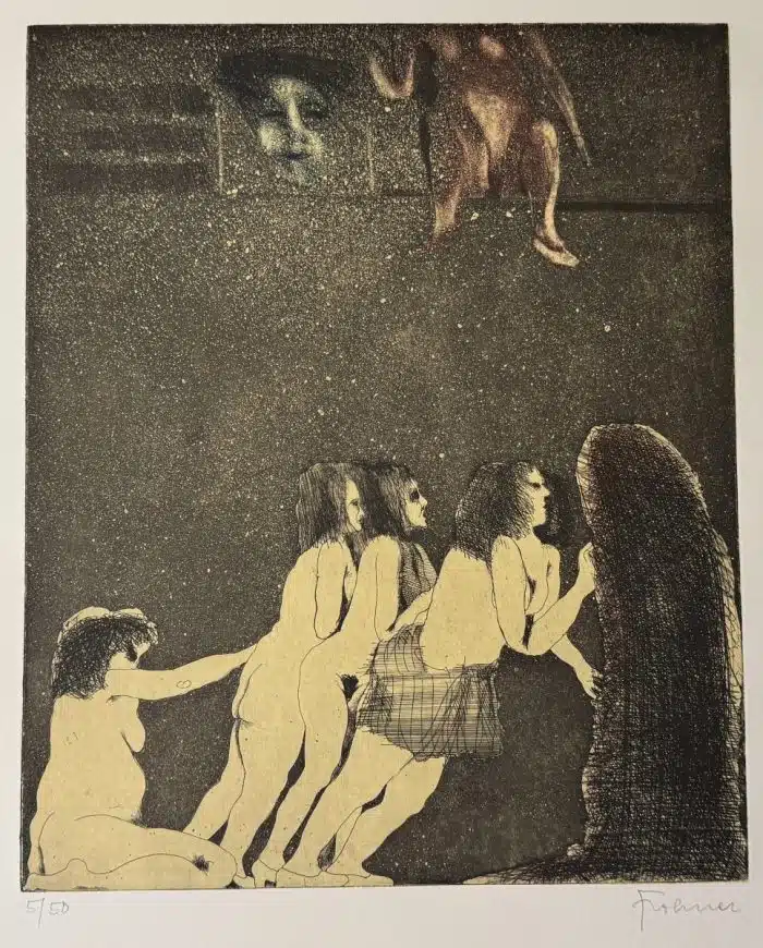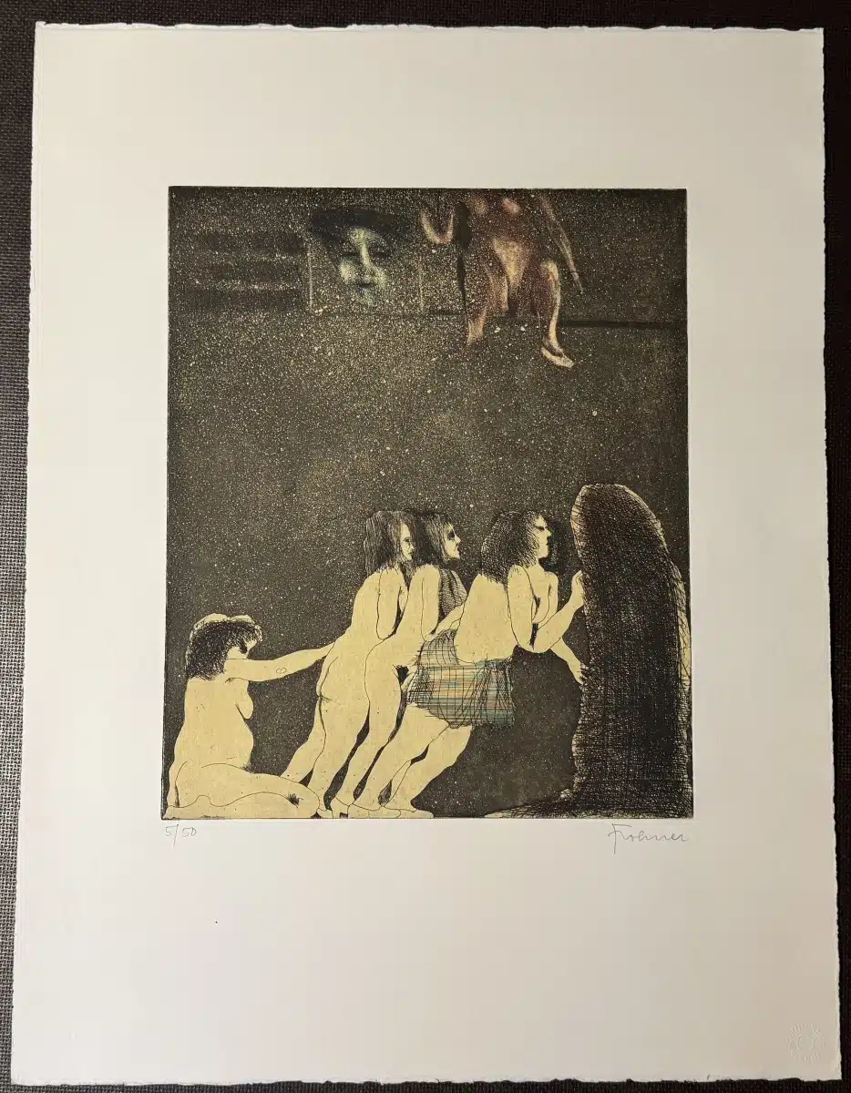 Adolf Frohner (Groß Inzersdorf 1934-2007, Besuch der Akademie der Bildenden Künste in Wien) Farblithographie, 5/50, „Erotische Frauenphantasien“ signiert „Frohner“ 40×33 cm Blatt 66×50 cm