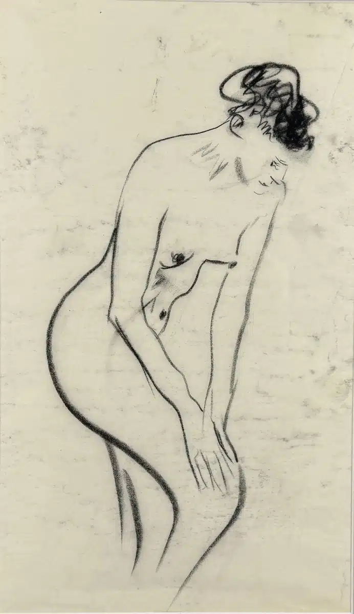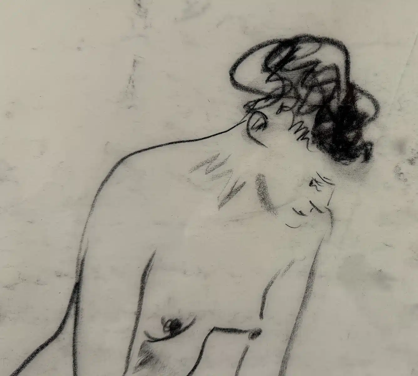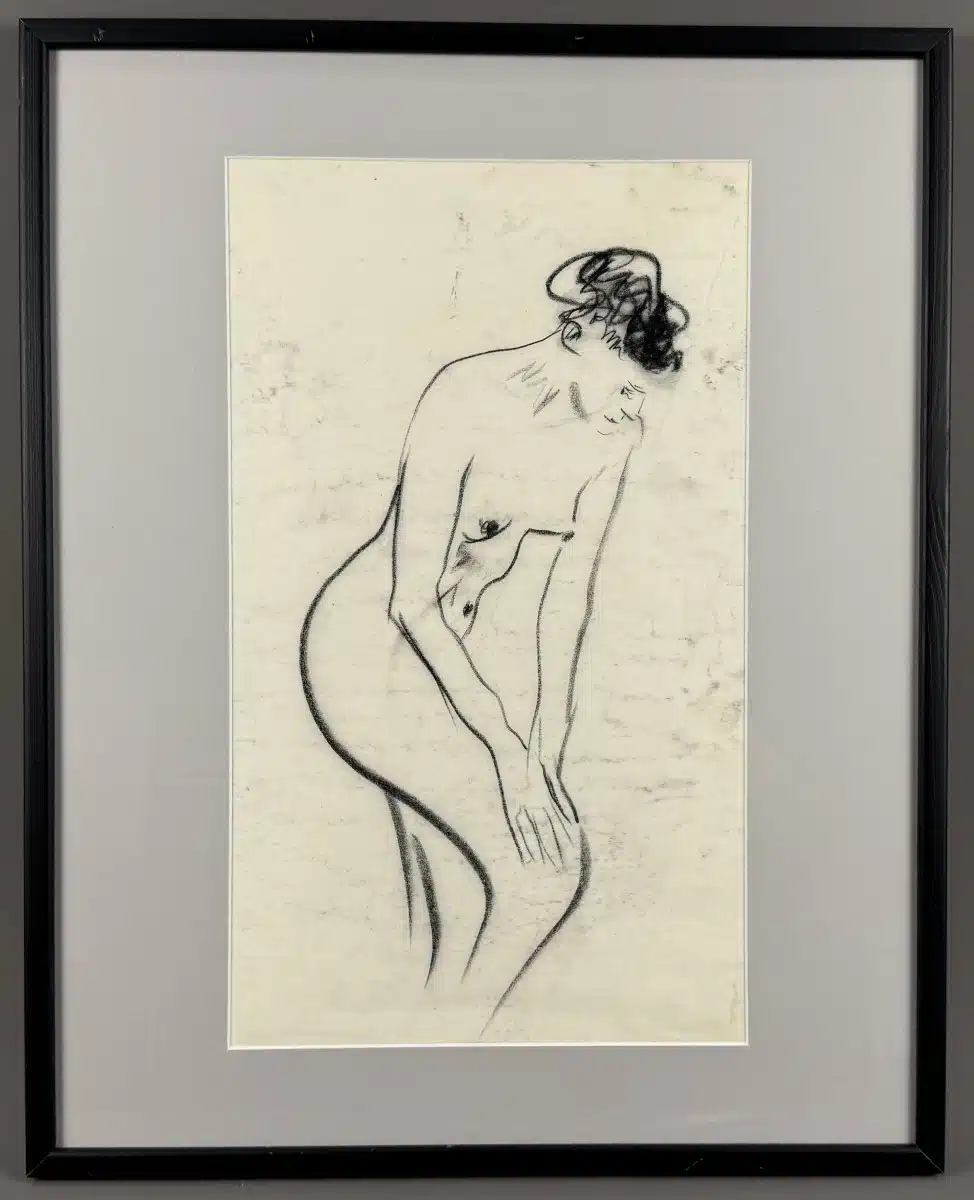 Akt, Kohlezeichnung, 40×24 cm, verglast, gerahmt gesamt 52×42 cm