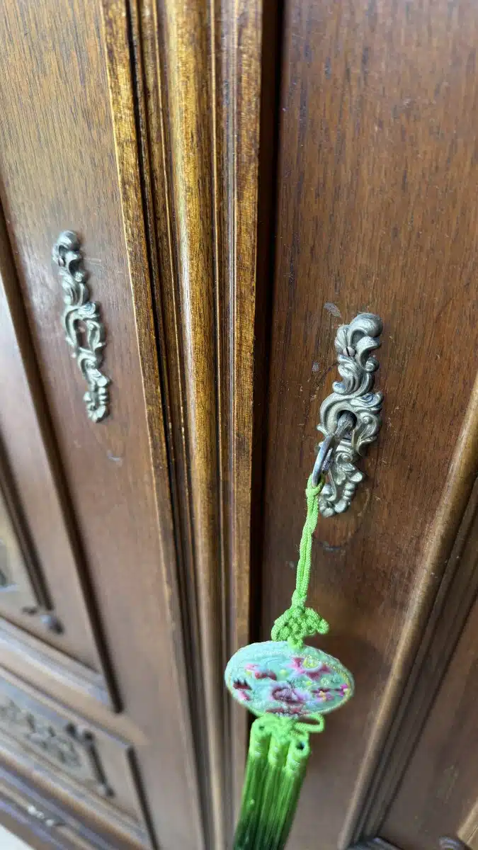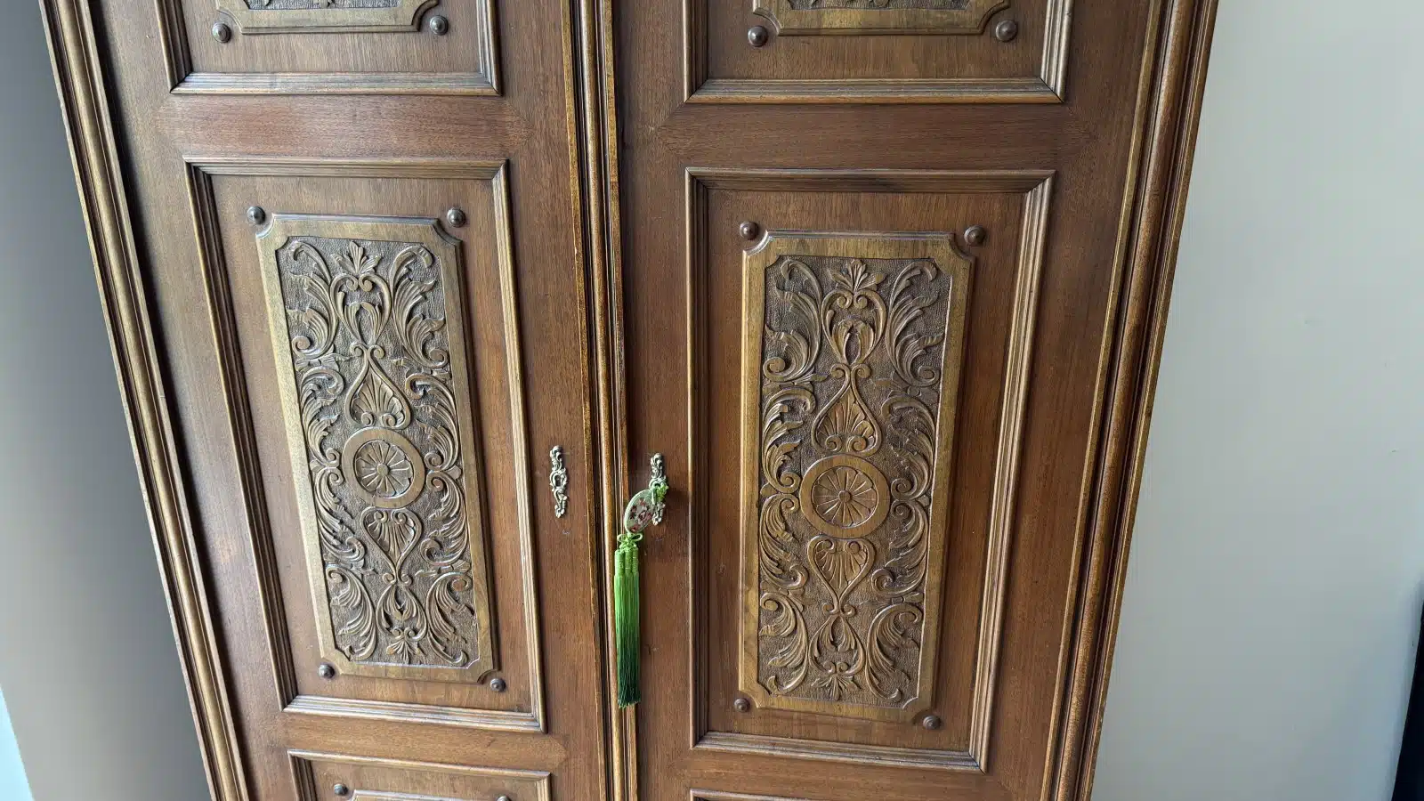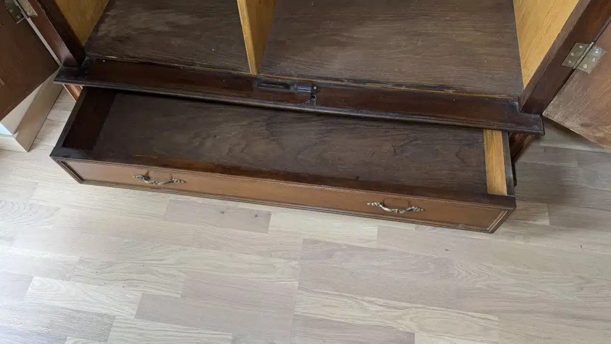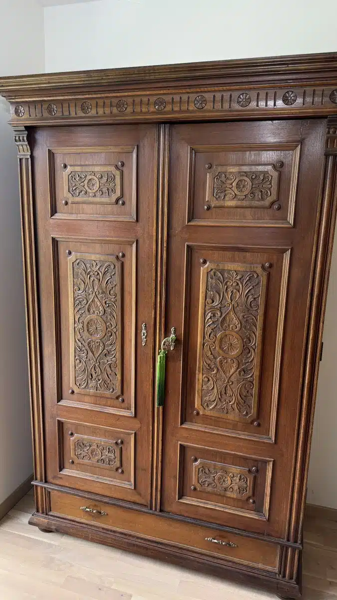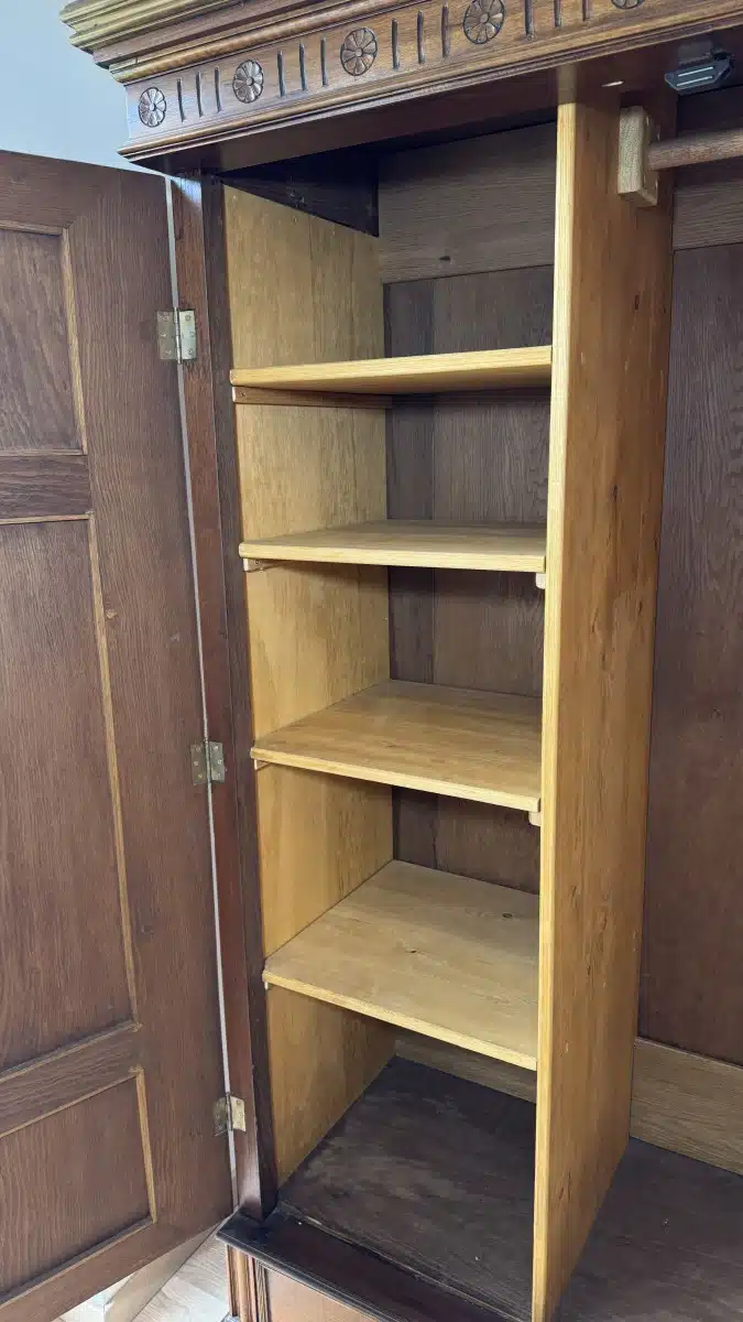 Altdeutscher Schrank – Kasten mit Regalfächer Antik mit Schnitzerei H 201 cm B 132 cm T 72 cm