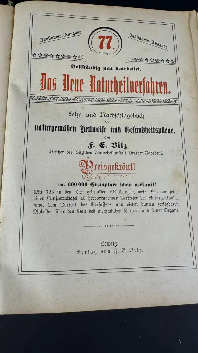 Antikes medizinisches Buch von Bilz über Naturheilkunde und Gesundheitsfürsorge