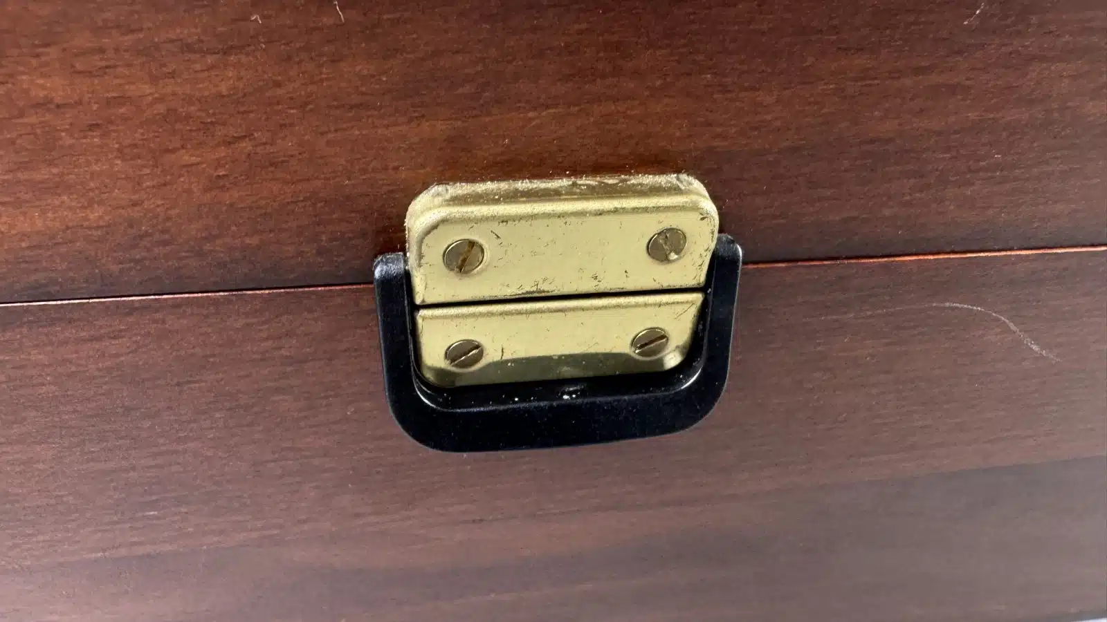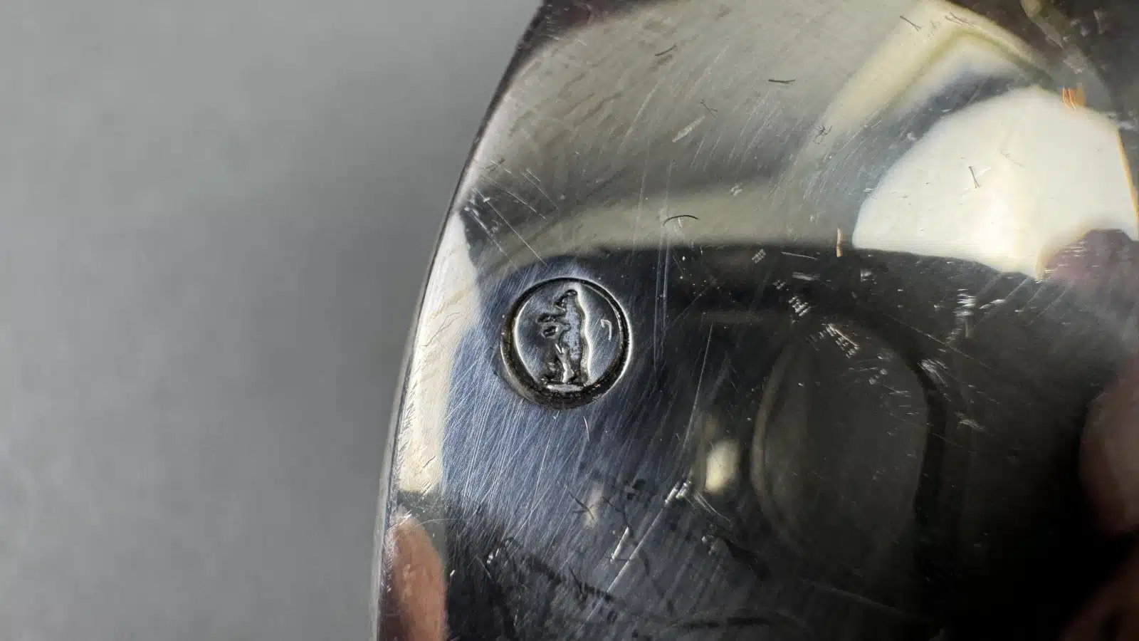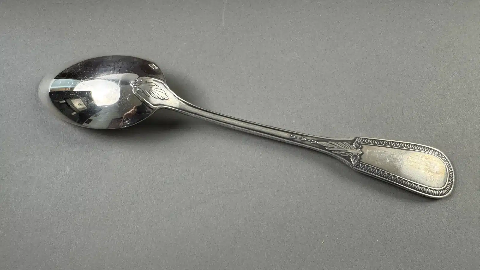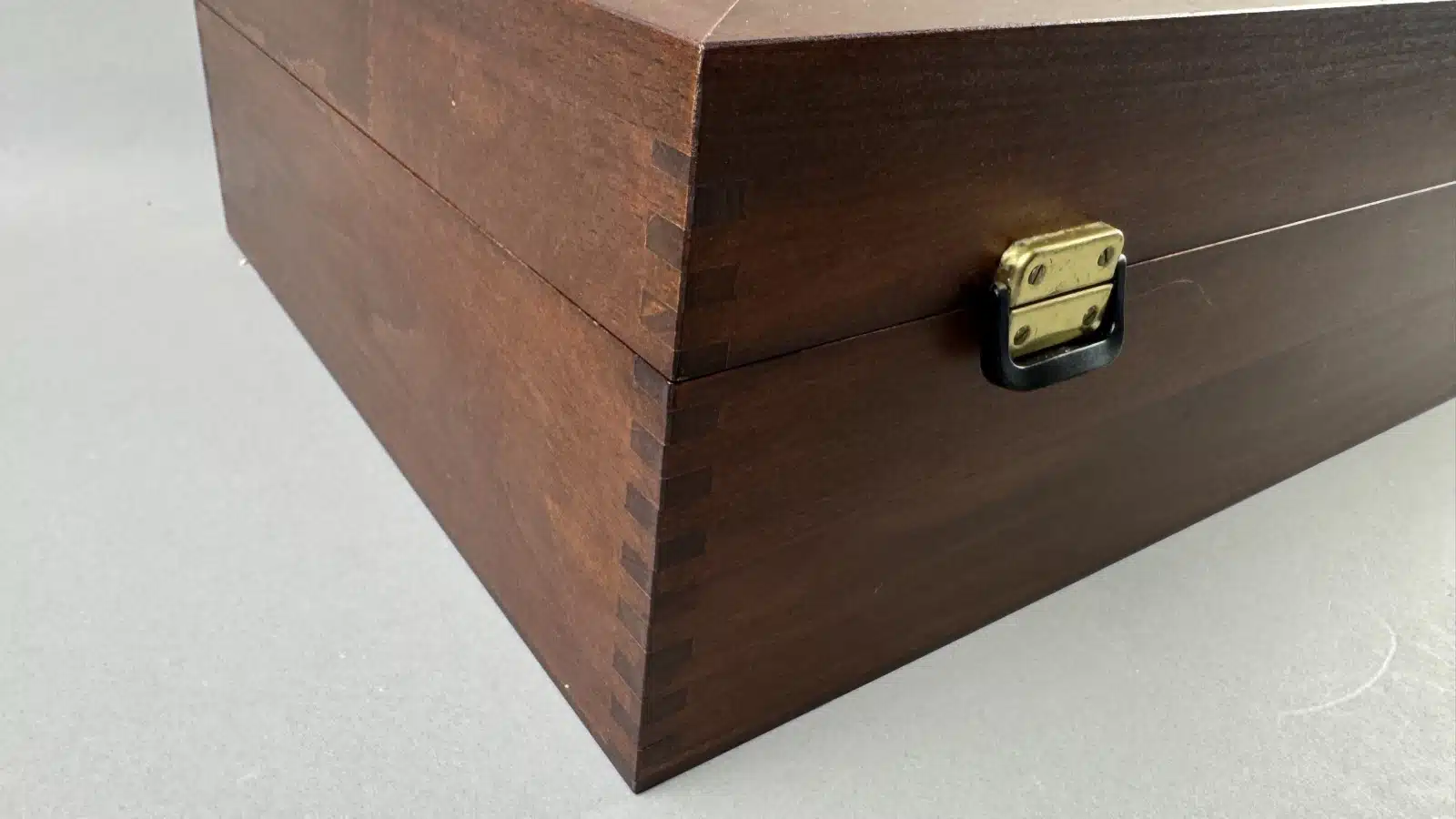 Berndorf – Vorspeise-, Hauptspeise- Besteck für 6 Personen, Metall versilbert, je 6 Messer, Gabeln, Löffel, Kaffeelöffel und Kuchengabeln (im Seitenfach) in Holz Besteckkasten, Firmenzeichen, Monogramm, Siehe Bilder