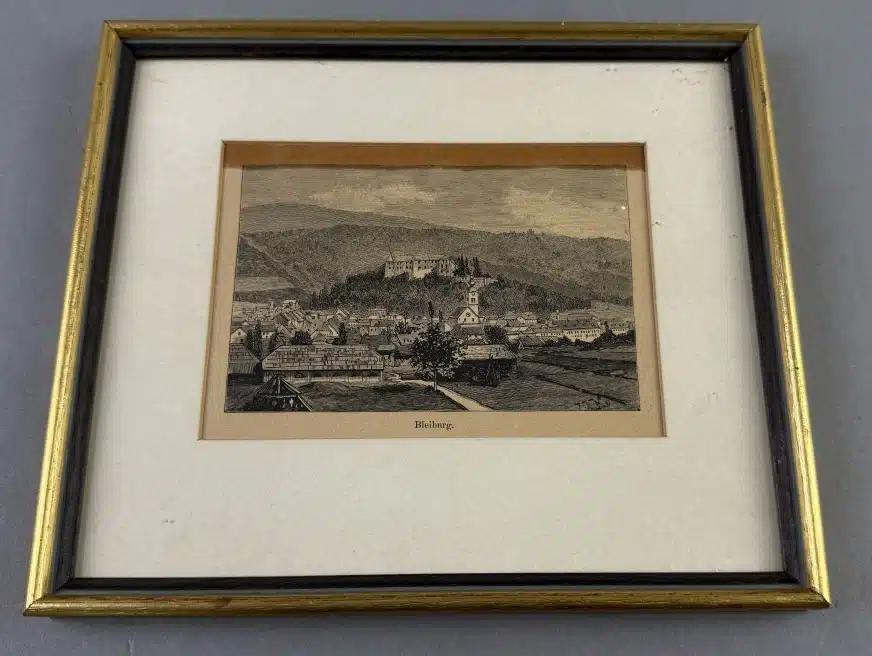 Bleiburg – Xylografie von Klos um 1890 – 21×18 cm Ausschnitt 13×9,5 cm