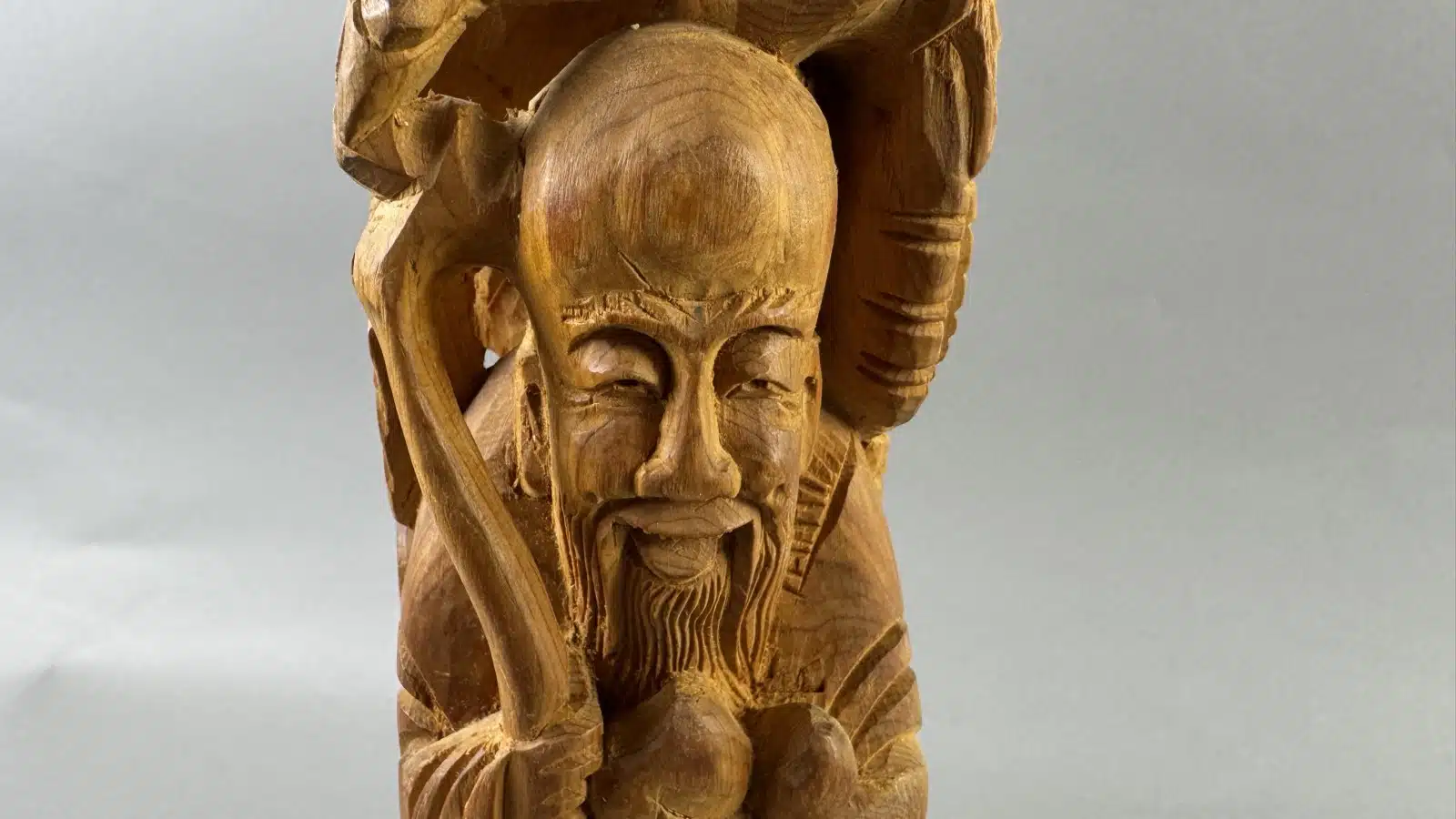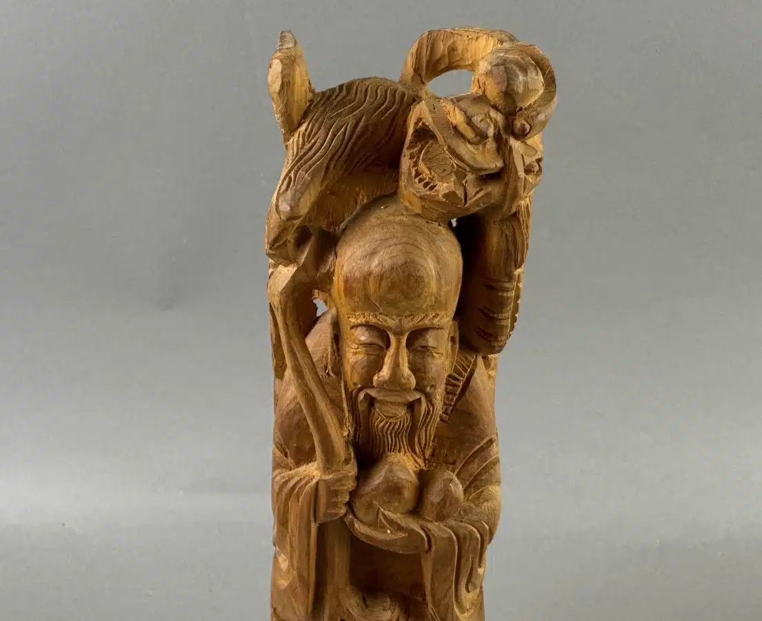 Darstellung von Shou Lao -auch bekannt als Shouxing, Holz H. 33 cm – chinesischer Gott der Langlebigkeit.