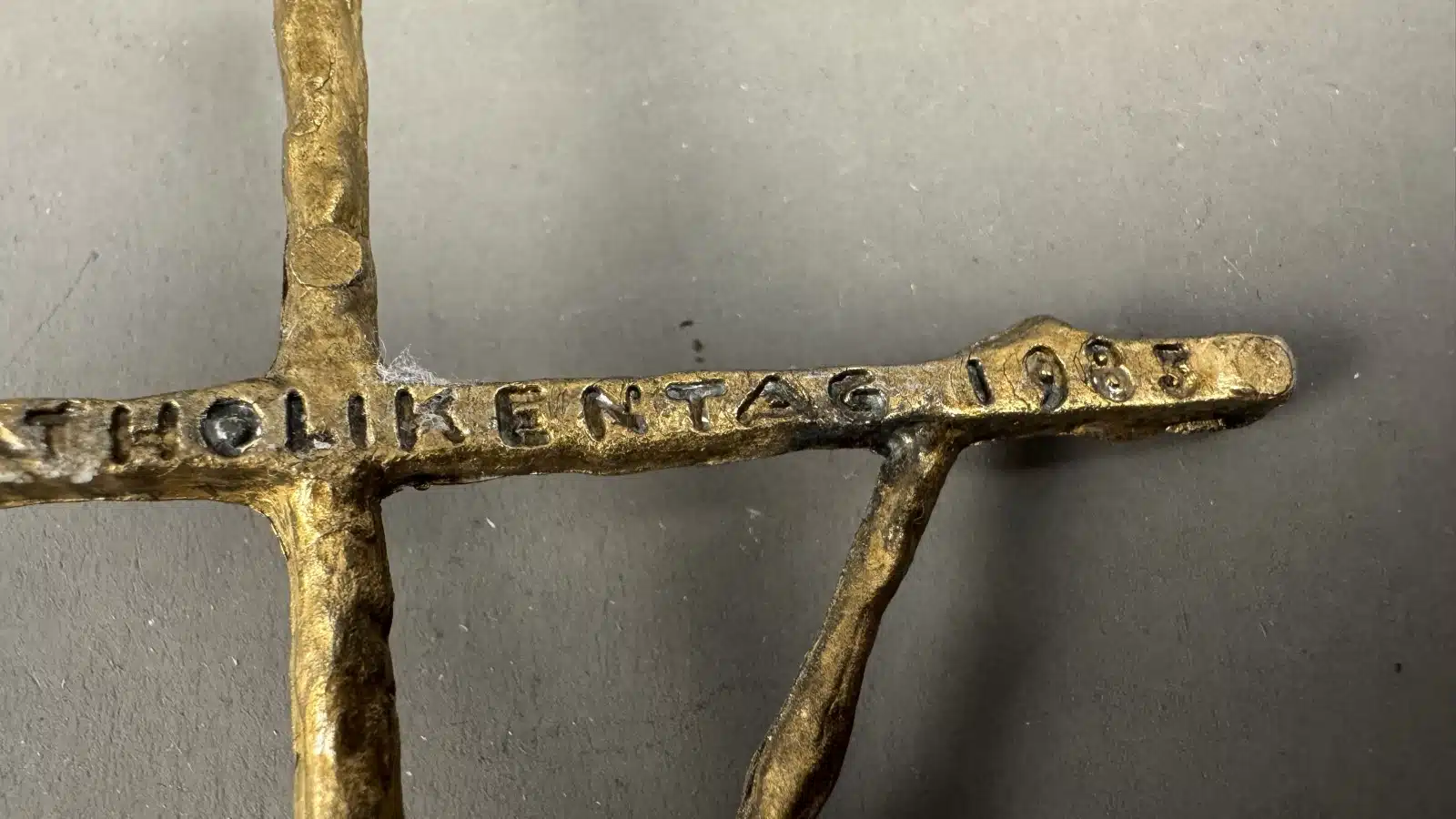 Erwin Huber (Graz 1929-2006) Kruzifix, „Österr. Katholikentag 1983“, Bronzeguss, patiniert, signiert E. Huber, H 20cm
