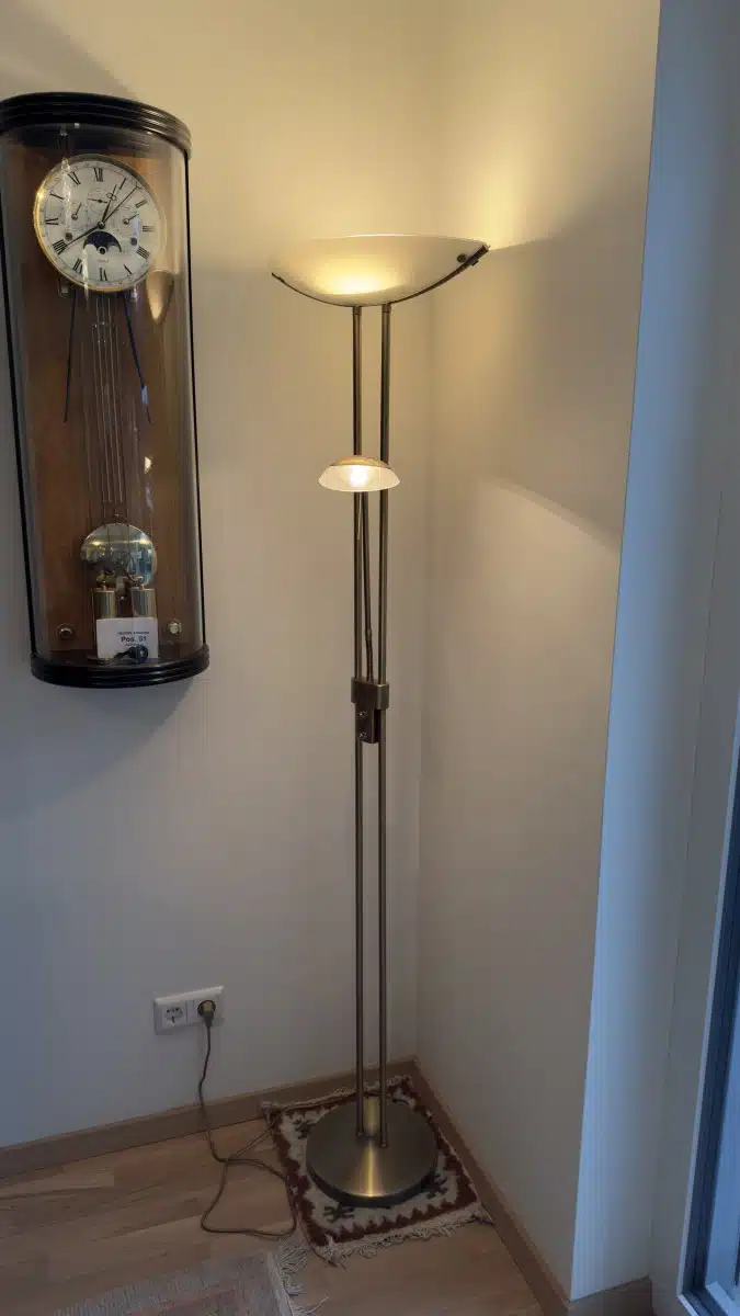 extravagante Stehlampe – Leselampe Chrom – dimmbar H 180 cm
