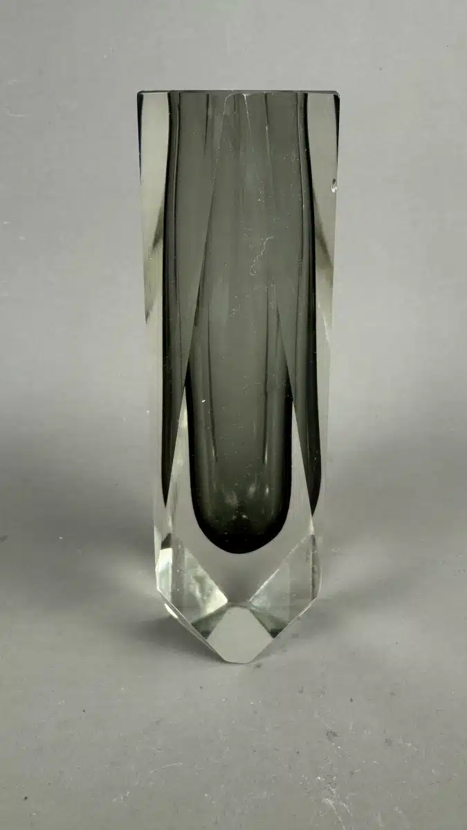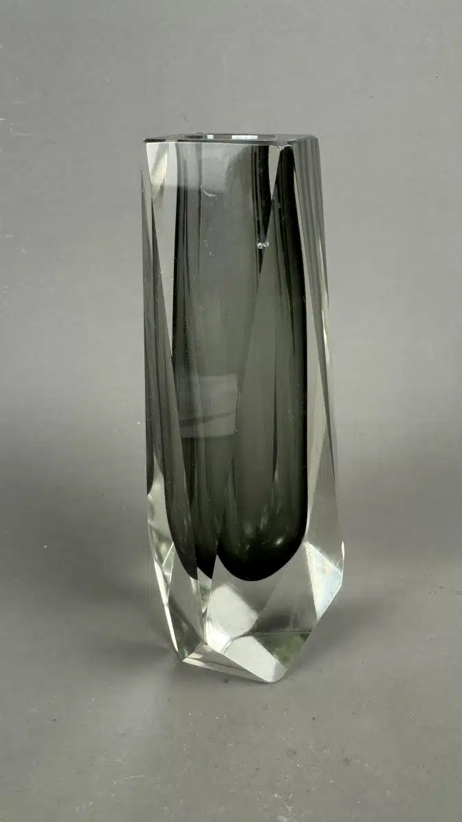 Facettierte Sommerso Vase aus Muranoglas, Flavio Poli zugeschrieben, Italien, 1970er, H 21 cm