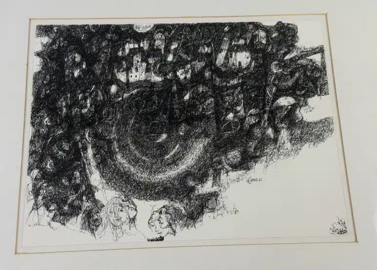 Franz Brandl (St. Georgen/Längsee 1928-2012 Bleiburg, signiert Franz Brandl, 58×48 cm datiert 1990 – Mischtechnik auf Papier, Ausschnitt 40×30 cm, gerahmt, verglast