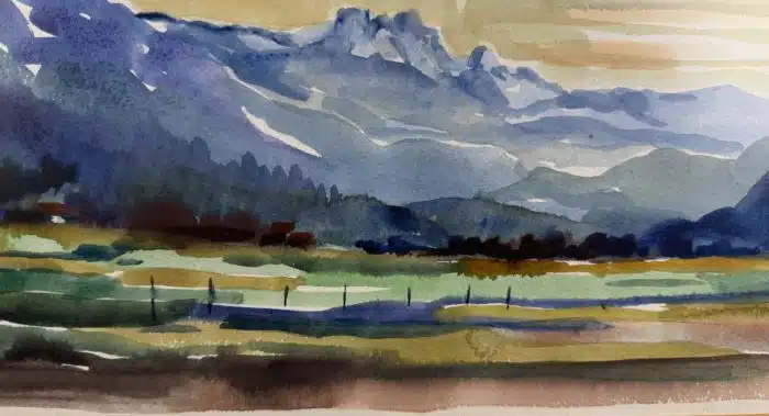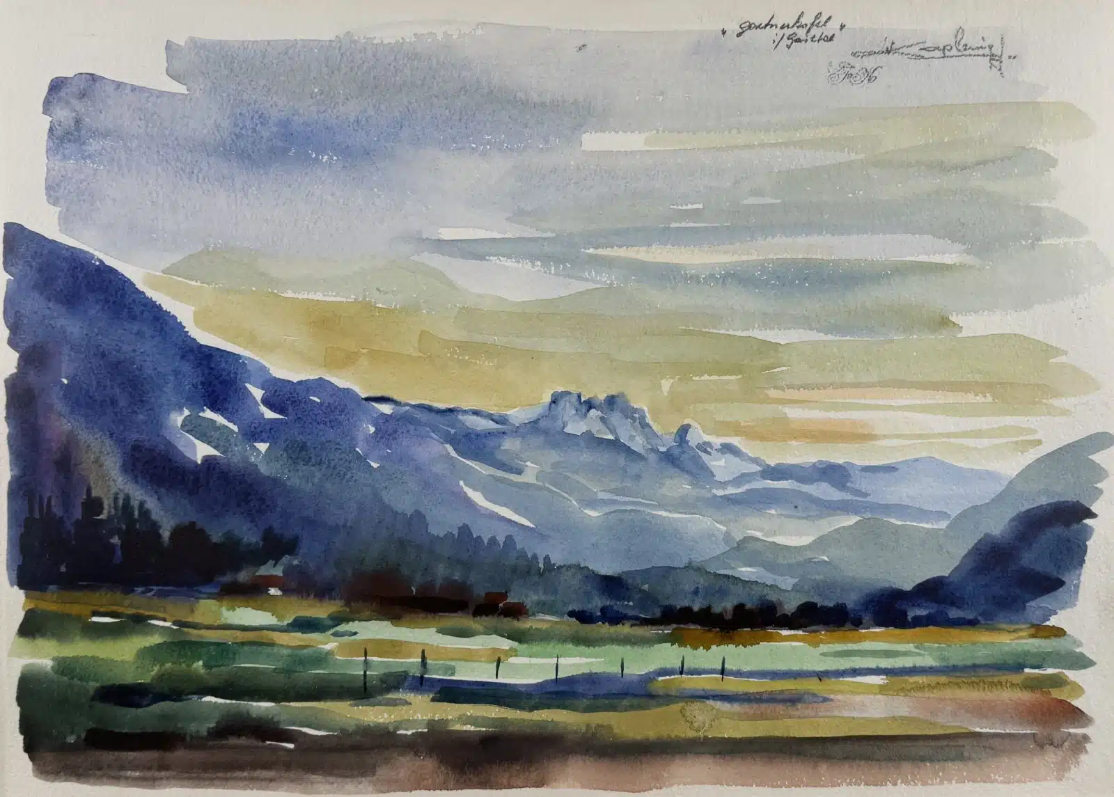 Franz Kaplenig (Kötschach-Mauthen 1924-2007 Klagenfurt) Gartnerkofel – Gailtal, 48×35 cm, verglast, gerahmt gesamt 64x51cm