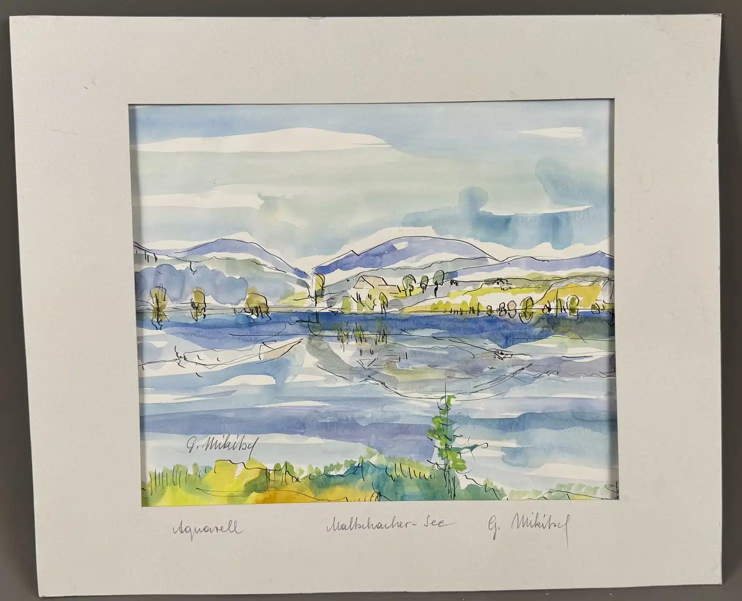 G. Mikitsch Aquarell, Maltschacher See, signiert, 51×38 cm, gesamt 68×58 cm