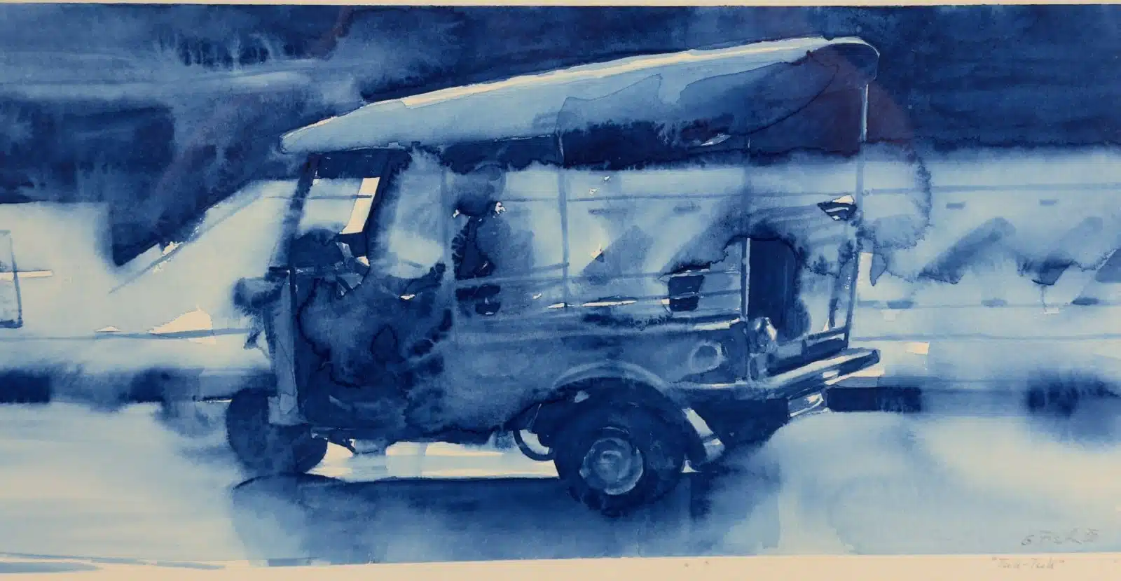 Gernot Fischer-Kondratovitch (Villach 1968 geb.) Aquarell, Tuc Tuc, signiert, datiert 2000,Rahmen 57×33 cm