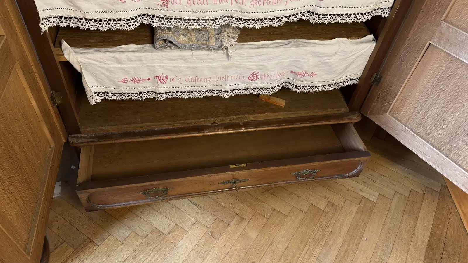 Gründerzeit Kasten, 2 Türen, 1 Lade, mit Schlüssel, B 130 T 60cm H 230cm