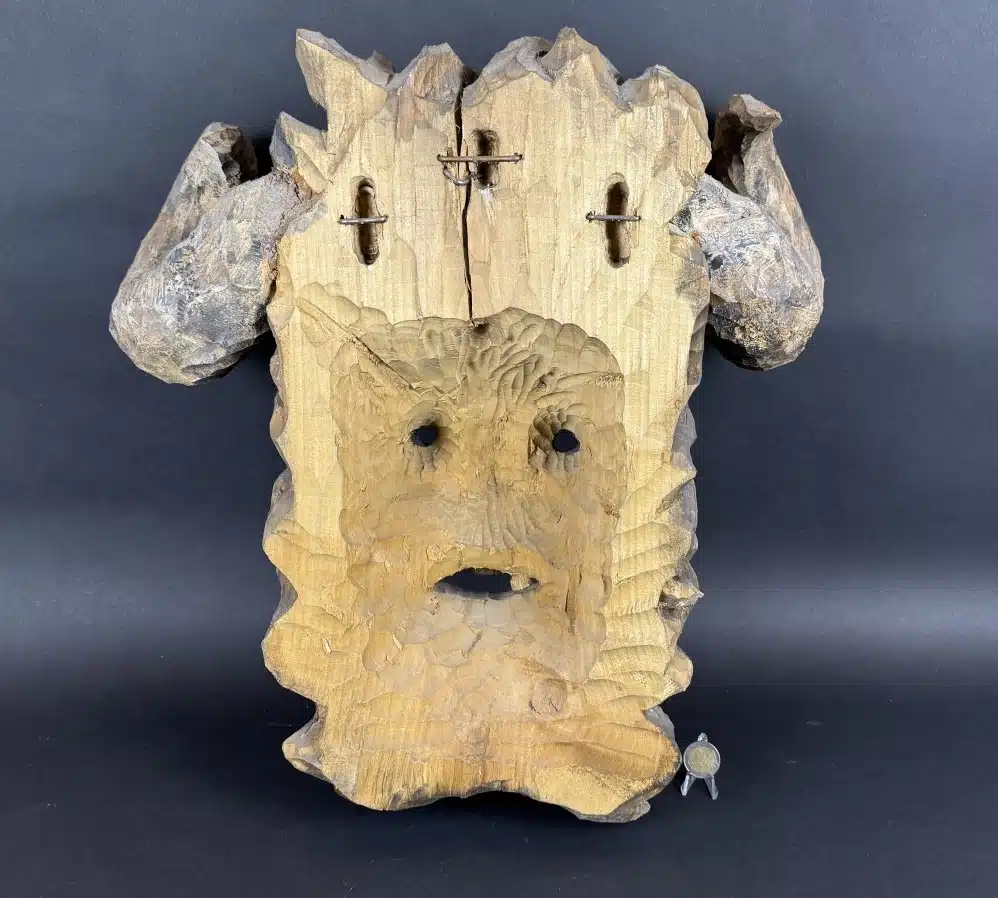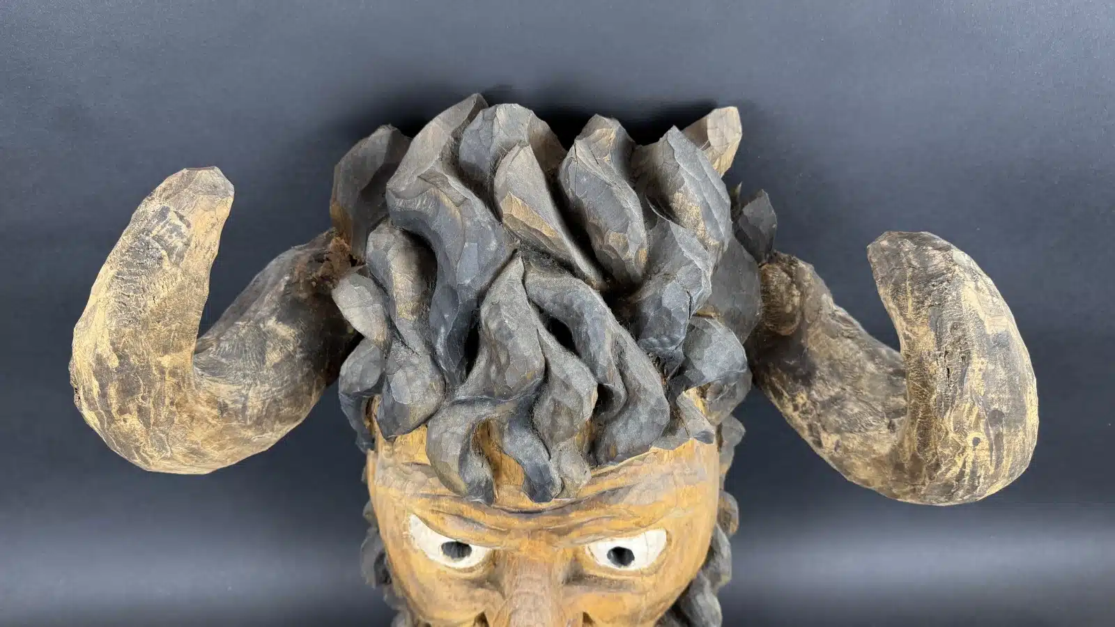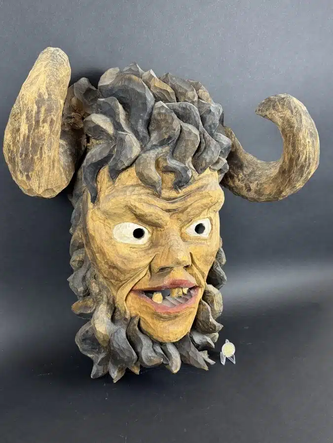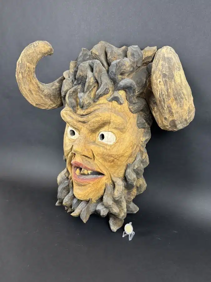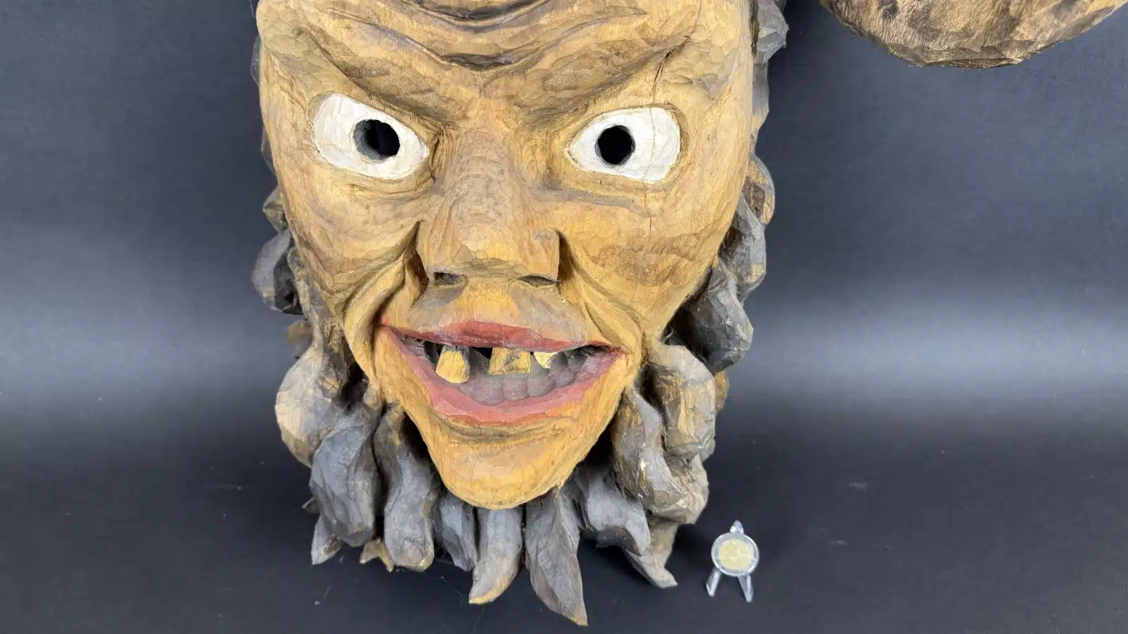 handgeschnitzte Perchtenmaske, Larve, 20. Jh., Höhe 52 cm, B 50 cm