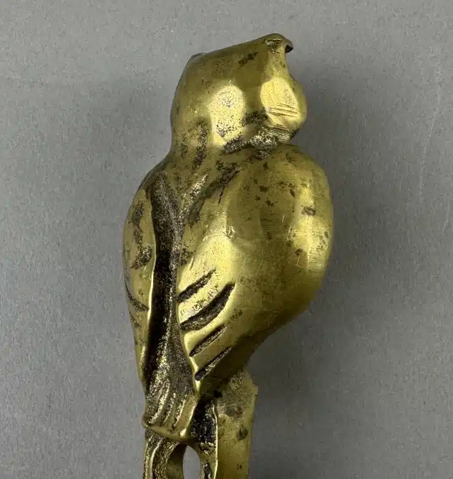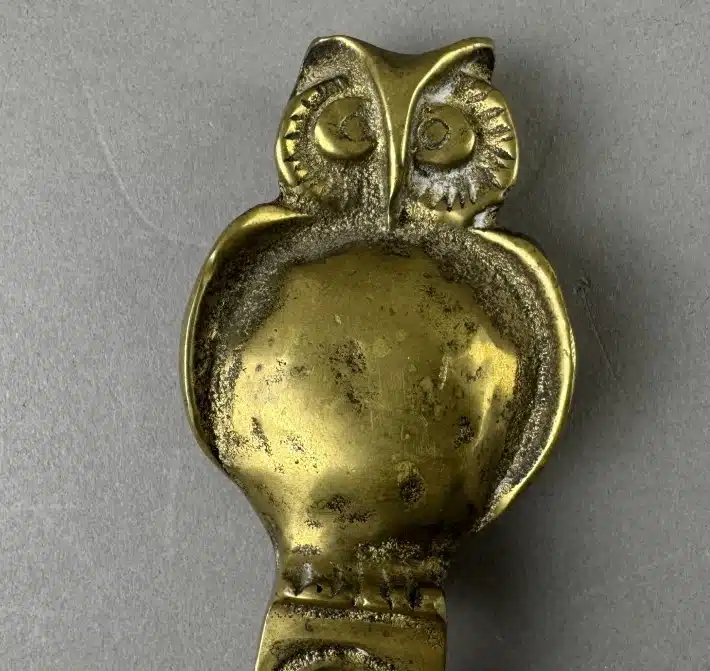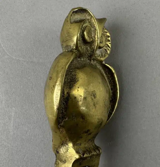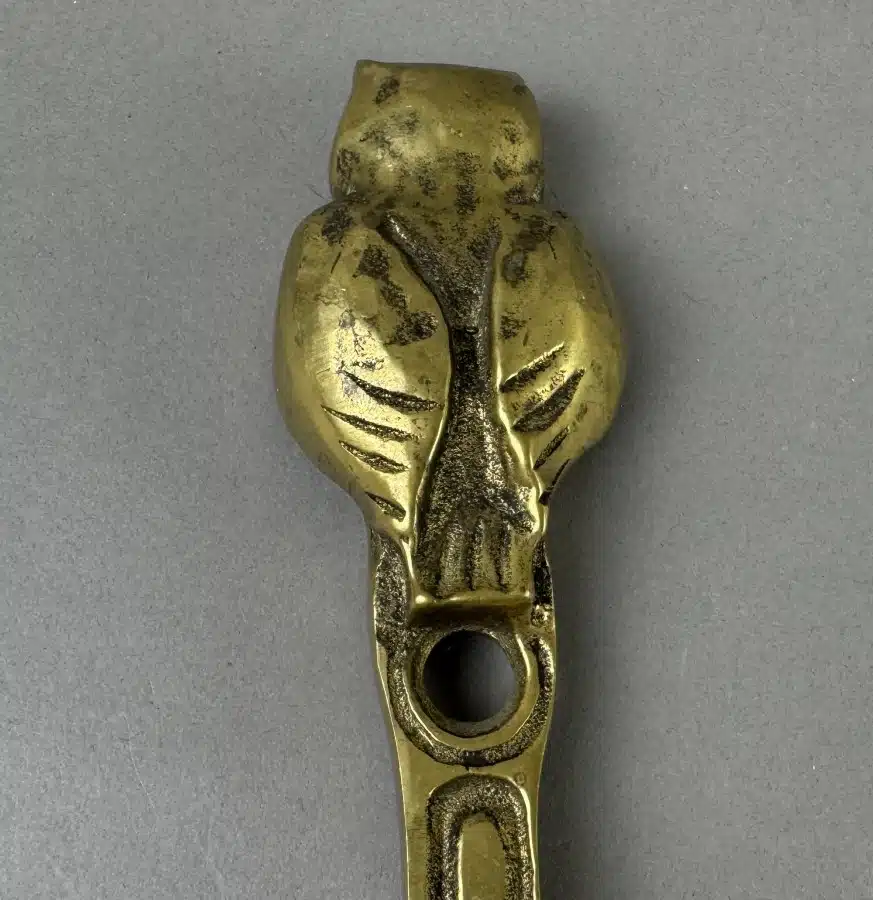Heinz Goll – Messing – Schuhlöffel mit Eulenkopf – Ausführung Gießerei „Kurt Jesch“ Bleiburg, L. 52 cm