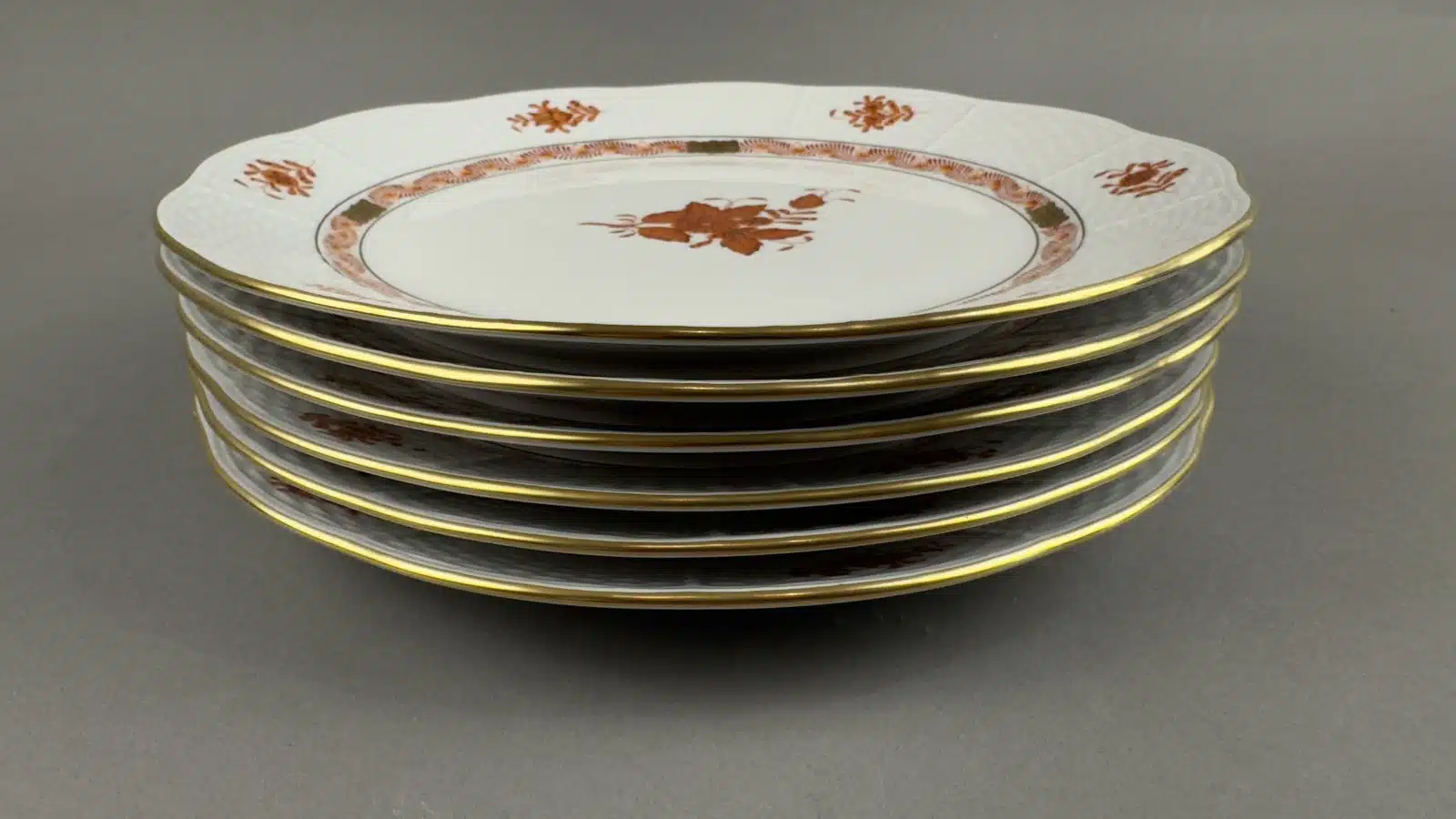 Herend – 6 Speiseteller – blaue Marke, Dekor Apponyi Orange