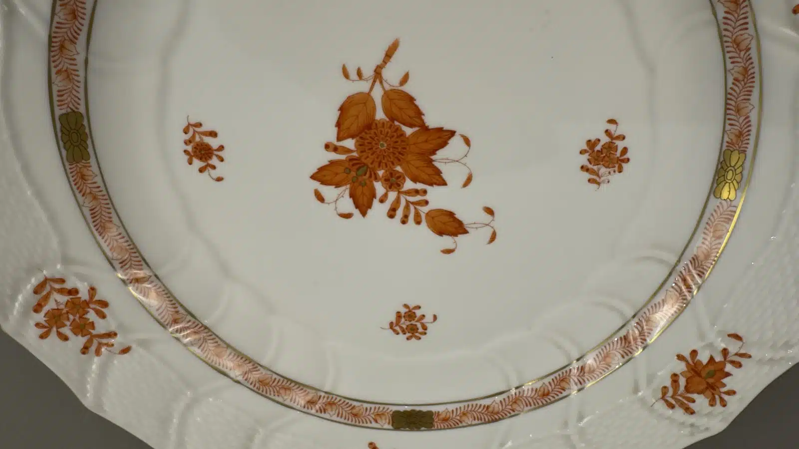 Herend, Ungarn 1 runde Vorlege Platte Dm. 32 cm blaue Marke, Dekor Apponyi Orange