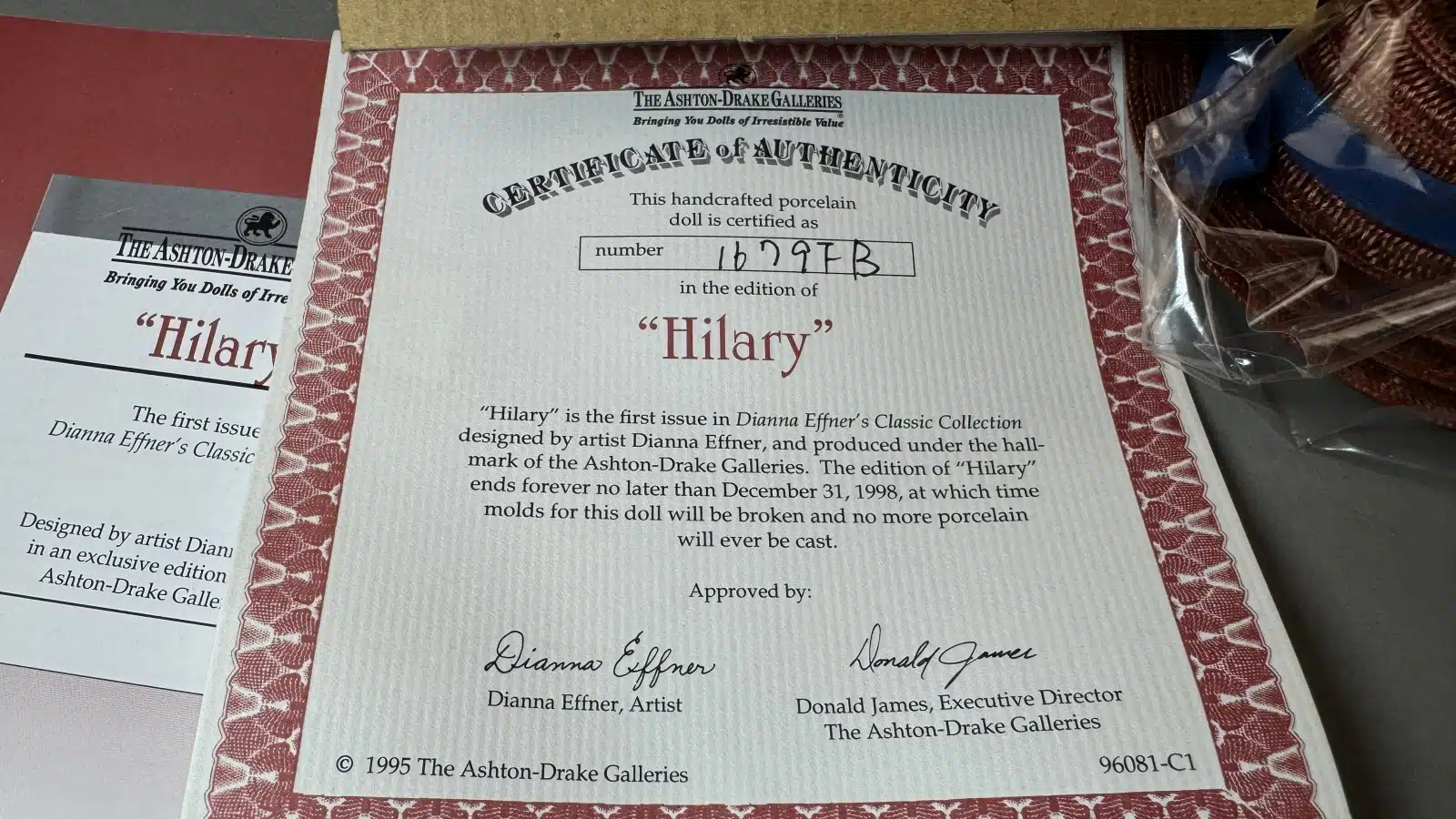 Hilary – The Ashton Drake Galleries Porzellanpuppe Künstlerpuppe, original Zertifikat. OVP