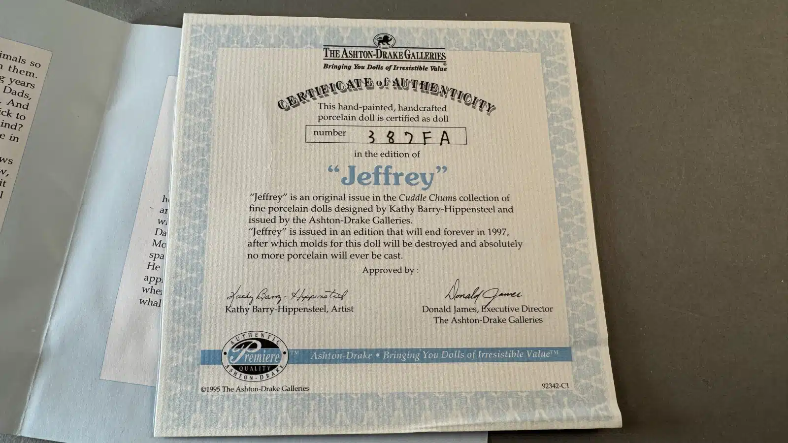 Jeffrey -The Ashton Drake Galleries Porzellanpuppe Künstlerpuppe, original Zertifikat. OVP