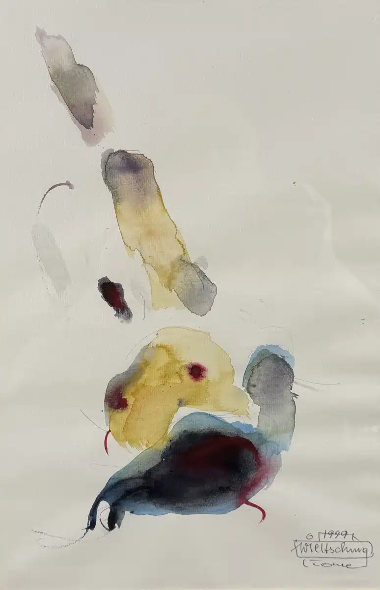 Johann Wieltschnig Holzfeind (Wernberg/Kntn.1949 geb.) Aquarell, „Ohne Titel“, signiert Wieltschnig, datiert 1999, 36×24 verglast, gerahmt gesamt 52×43 cm