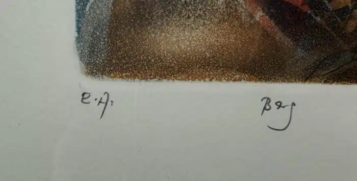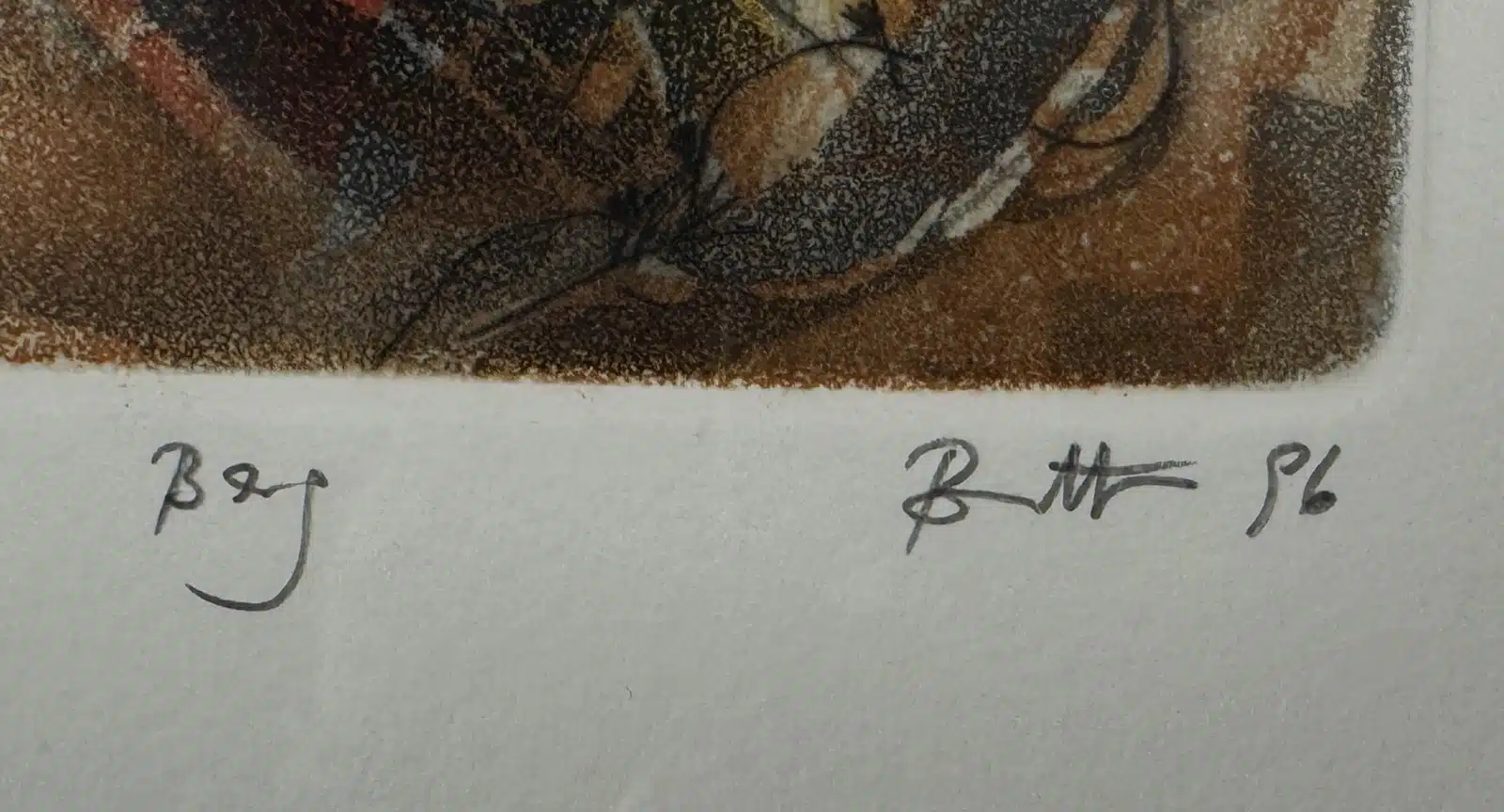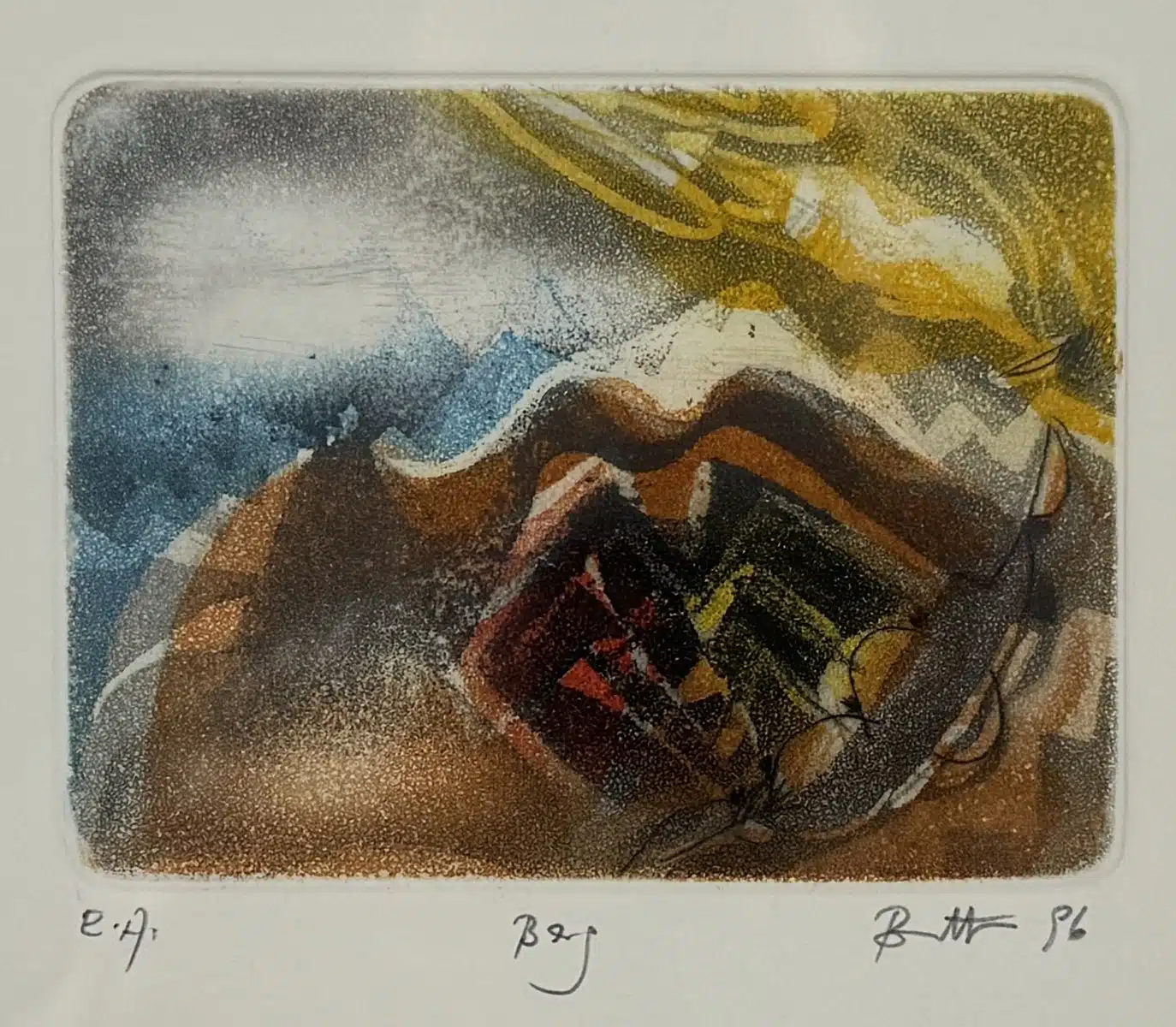 Karl Brandstätter (Lautz bei Villach 1946 geb.) Farbradierung 10×7 cm, verglast, gerahmt gesamt 29x21cm