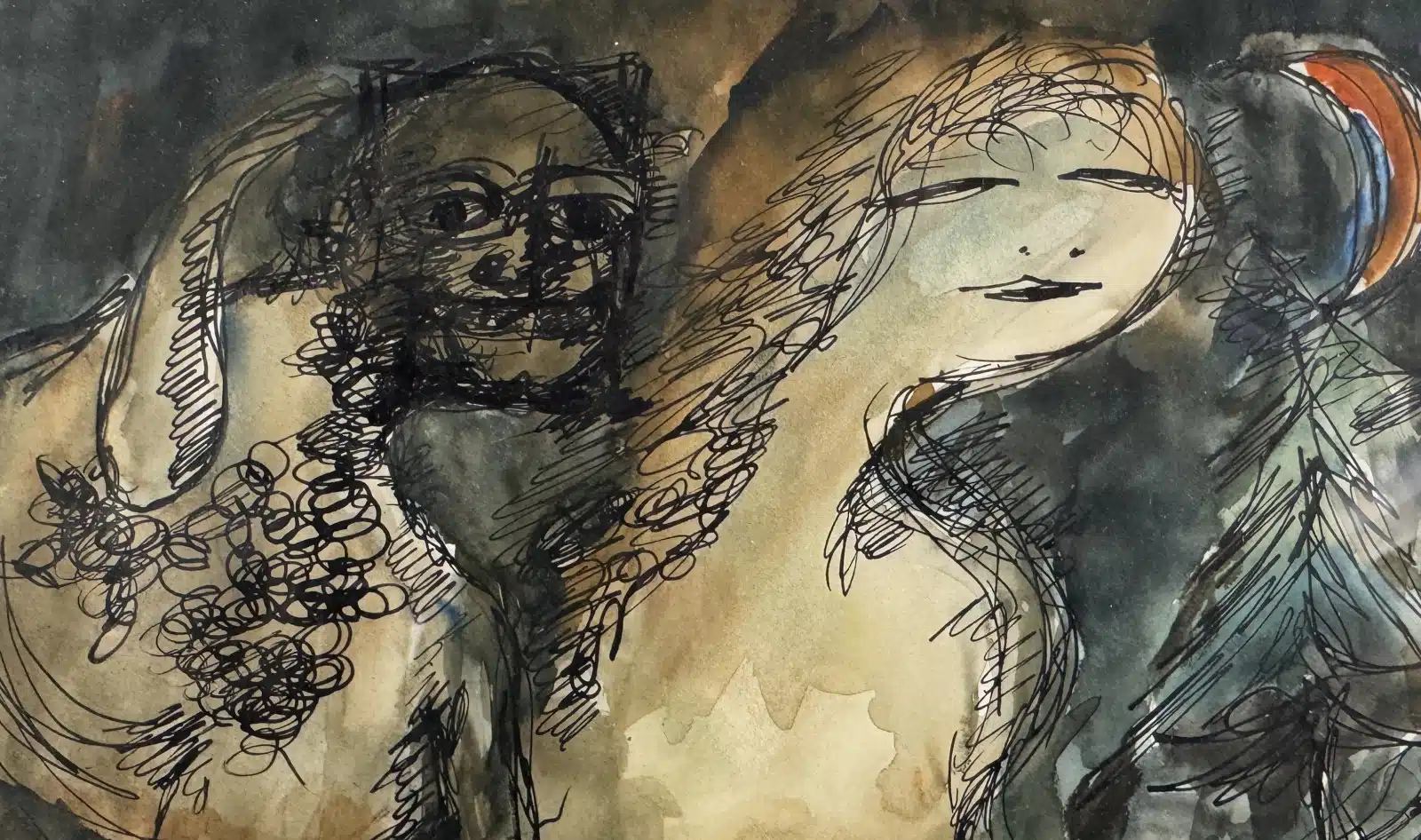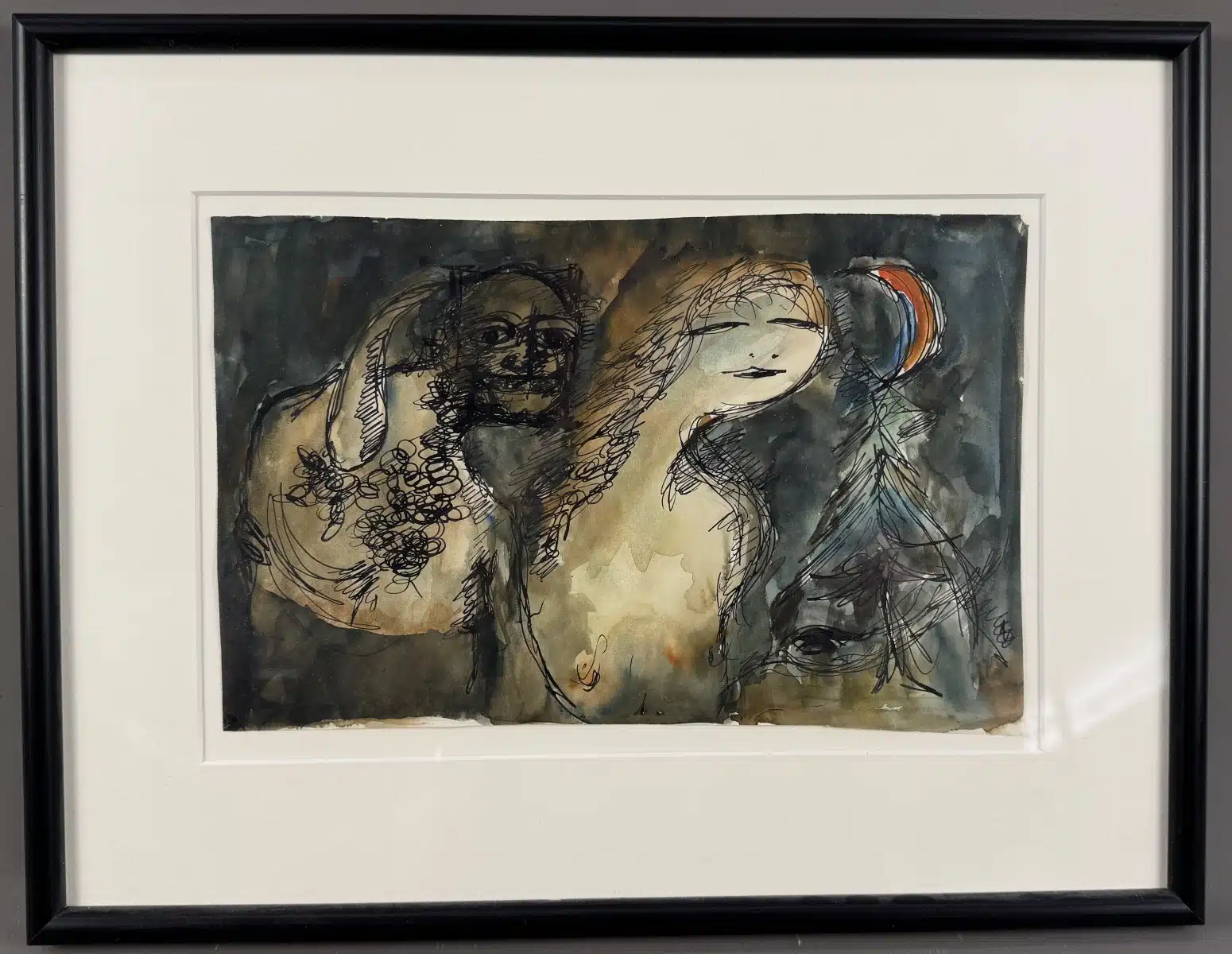 Konrad Koller (Villach 1916 geb.) Aquarellierte Federzeichnung,26×17 cm, gerahmt, verglast gesamt 37×29 cm