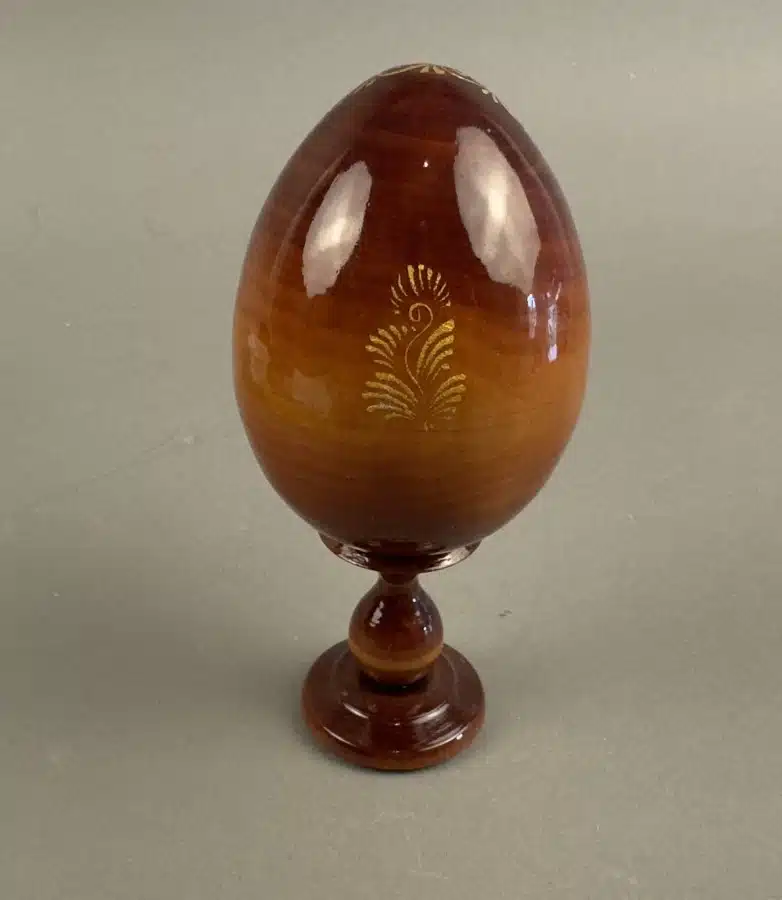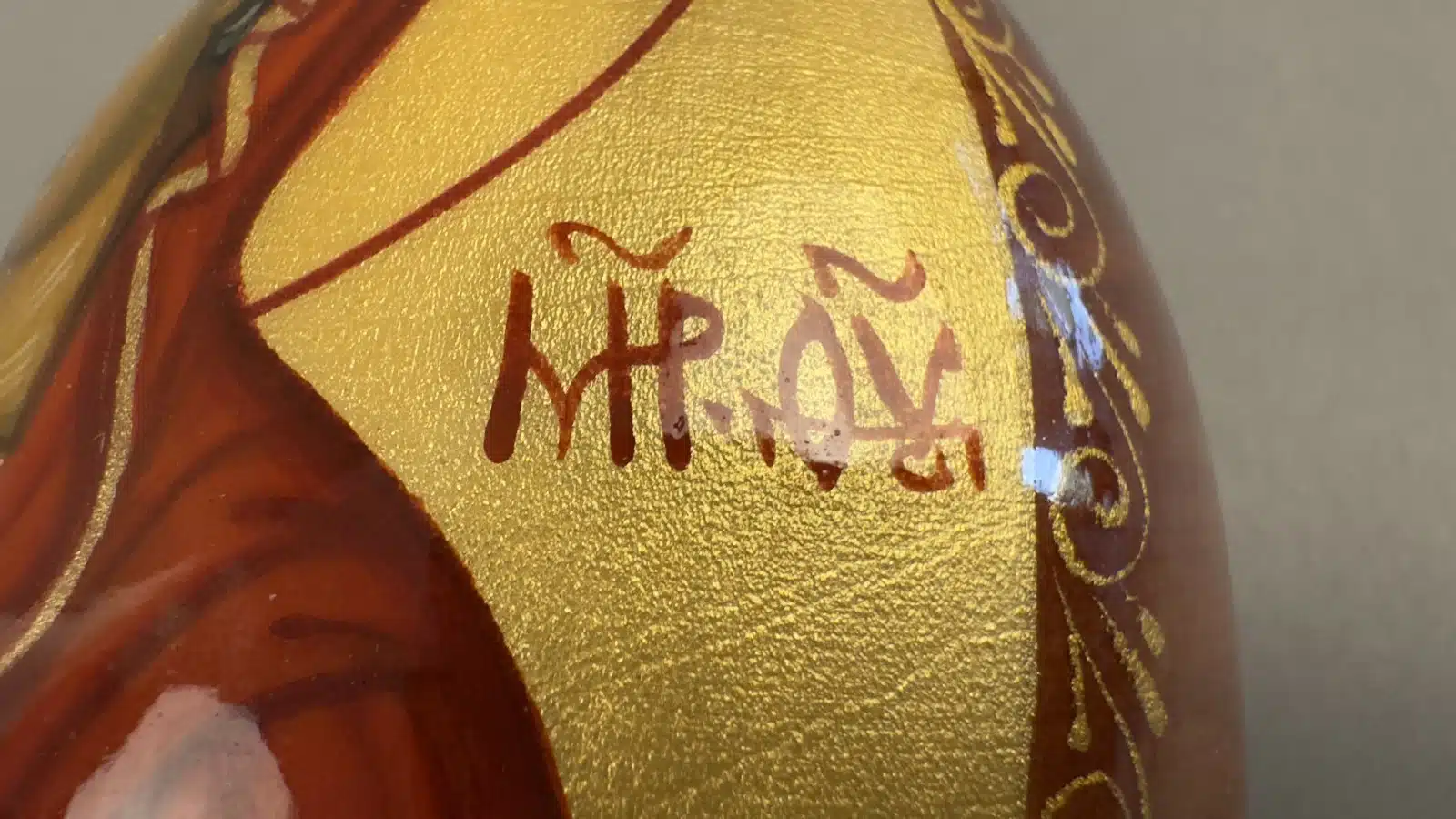 Lack-Ei Darstellung „Madonna mit Kind“, Höhe ca. 18 cm, signiert