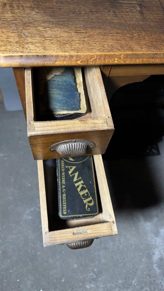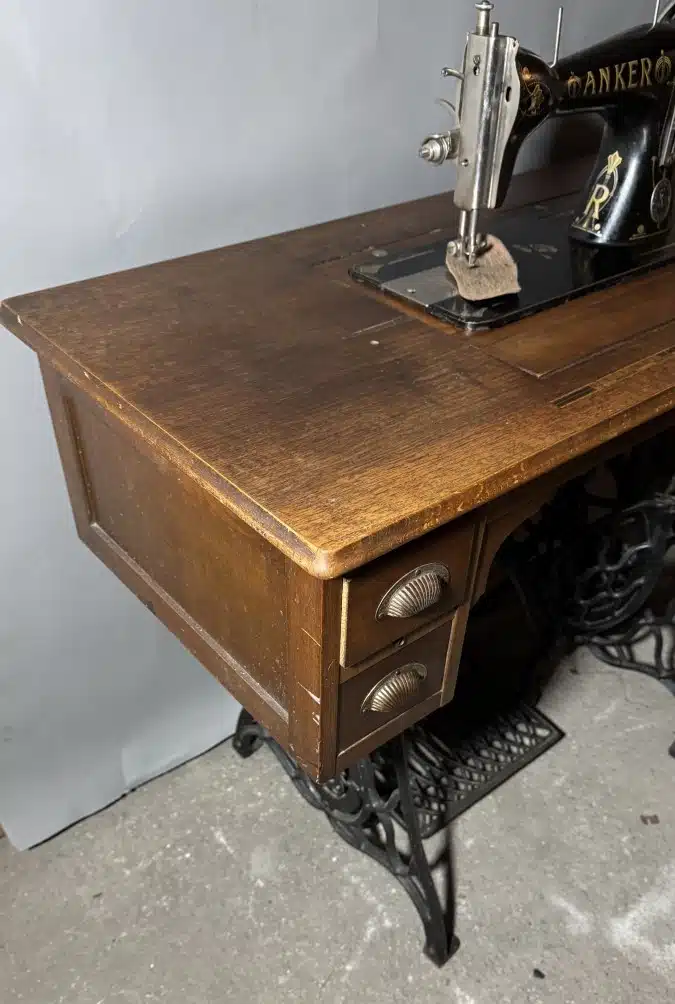 Nähmaschine 1915 Anker Werke Bielefield mit Tisch und Zubehör