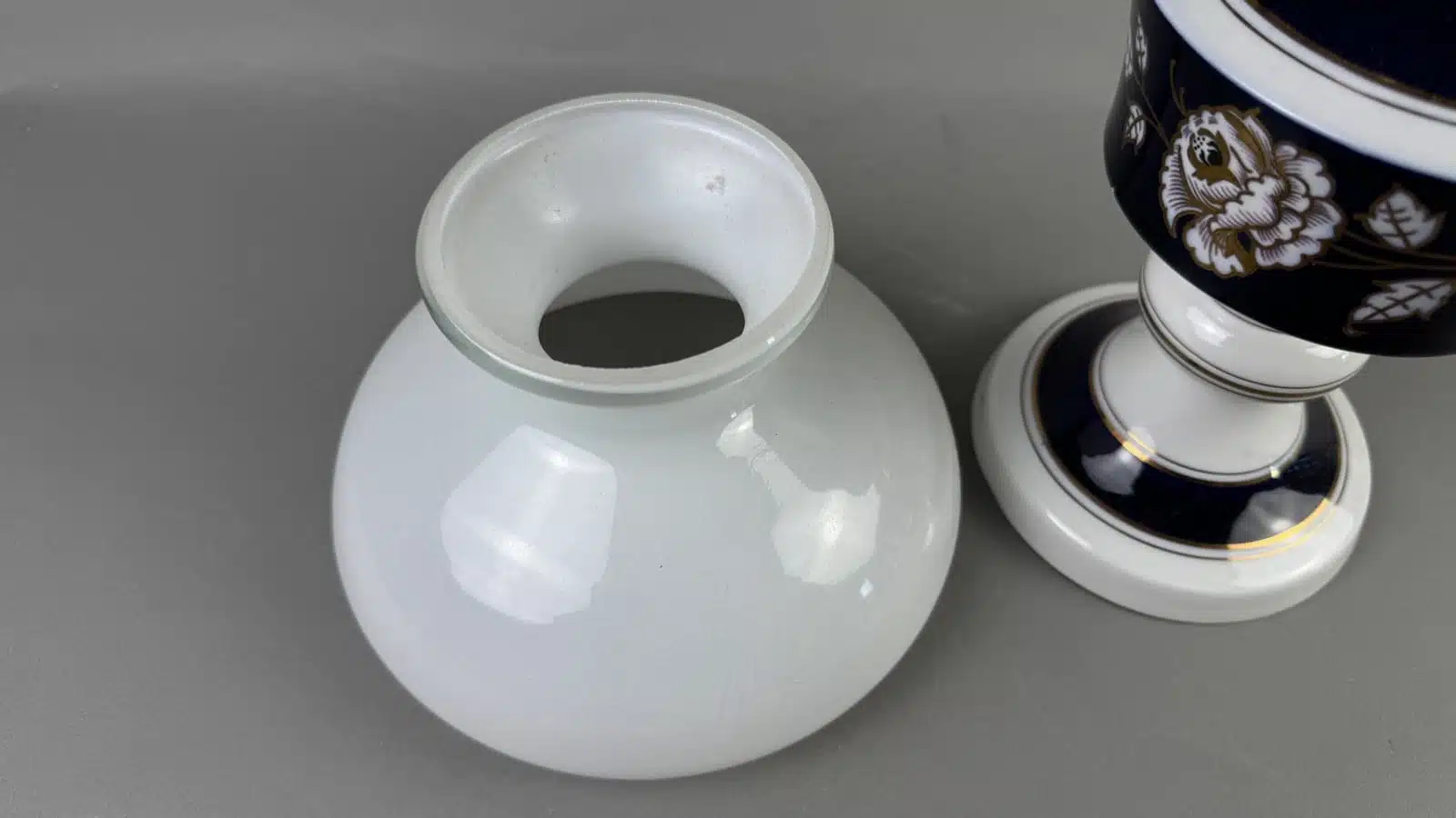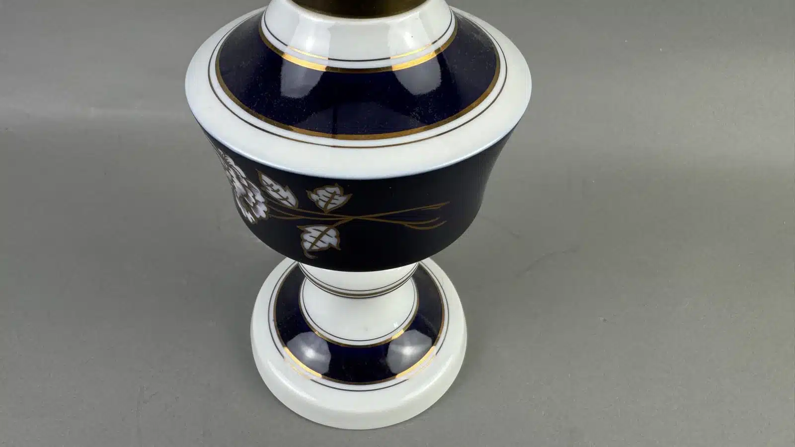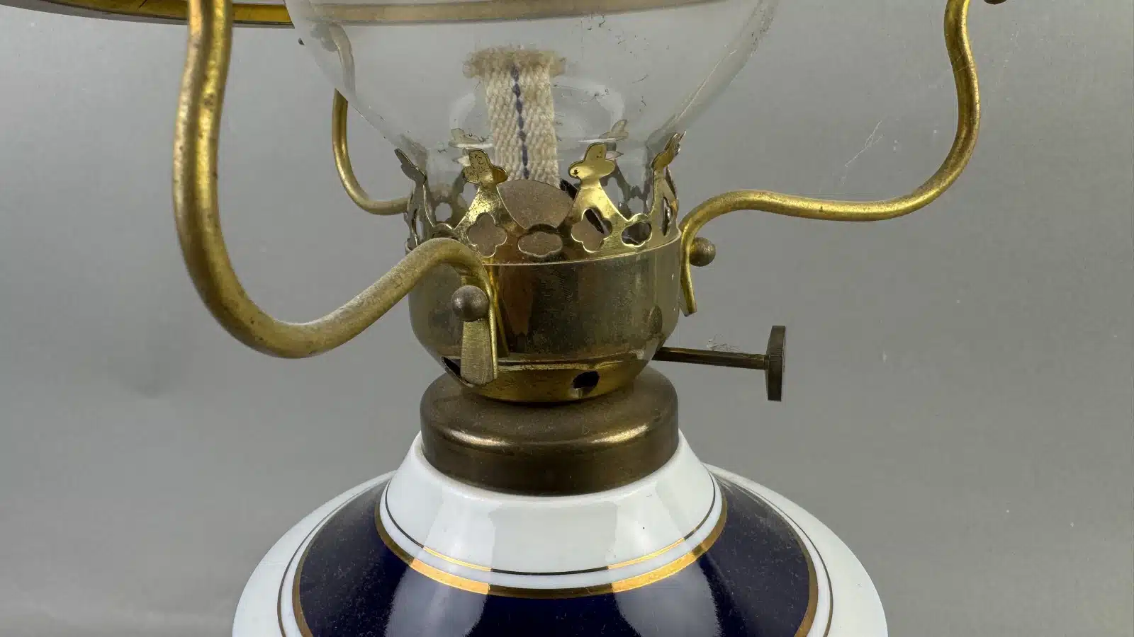 Petroleum Lampe  Wallendorf Porzellan Echt Kobalt blaue Blume GDR DDR H.49cm