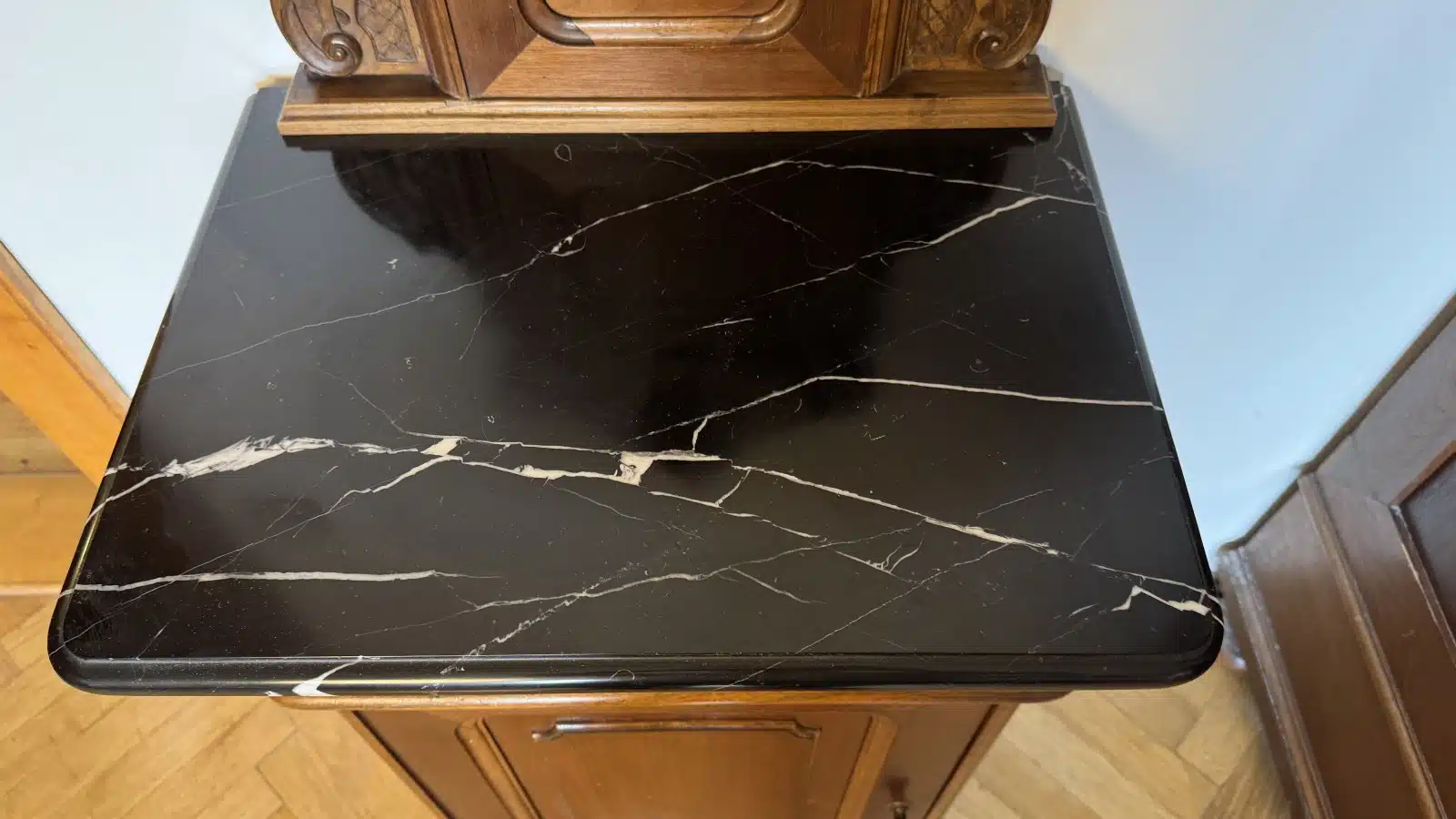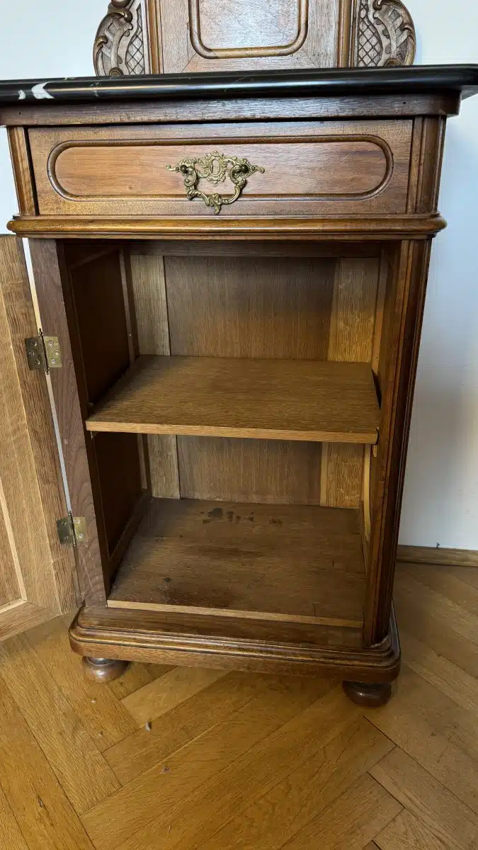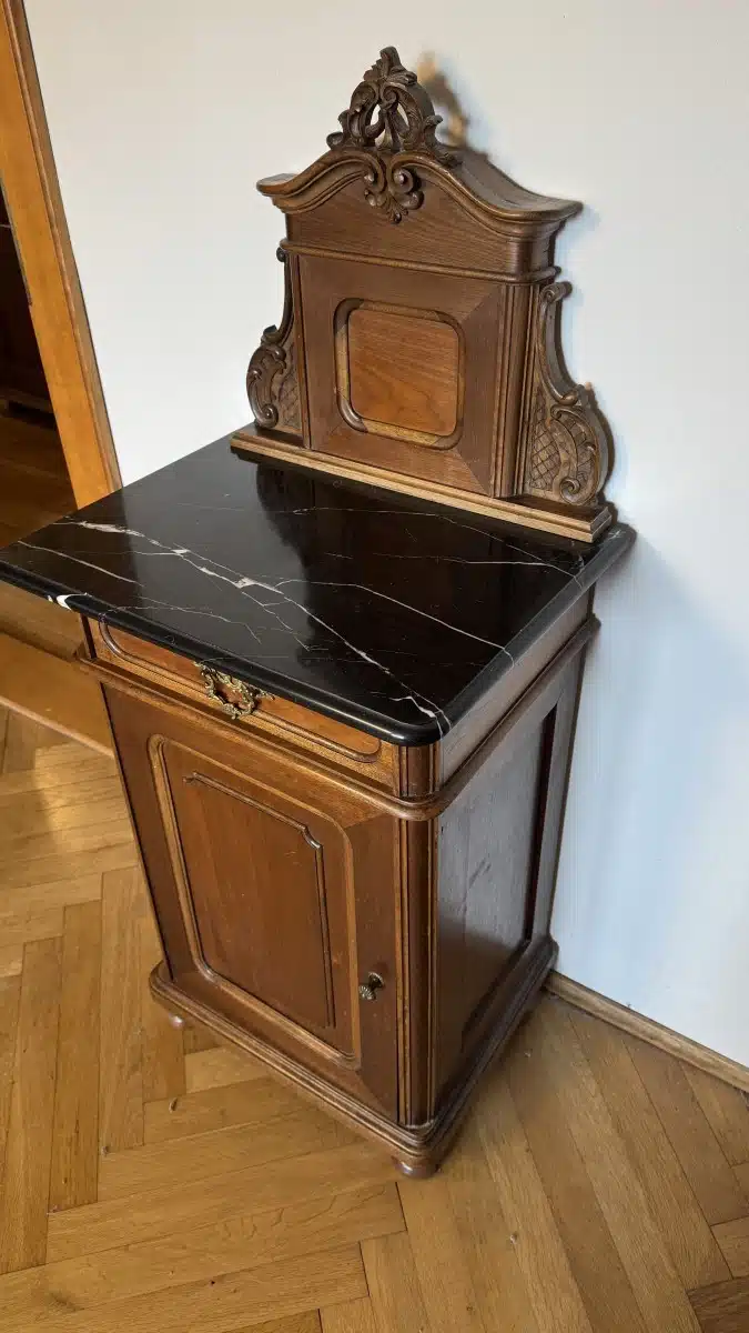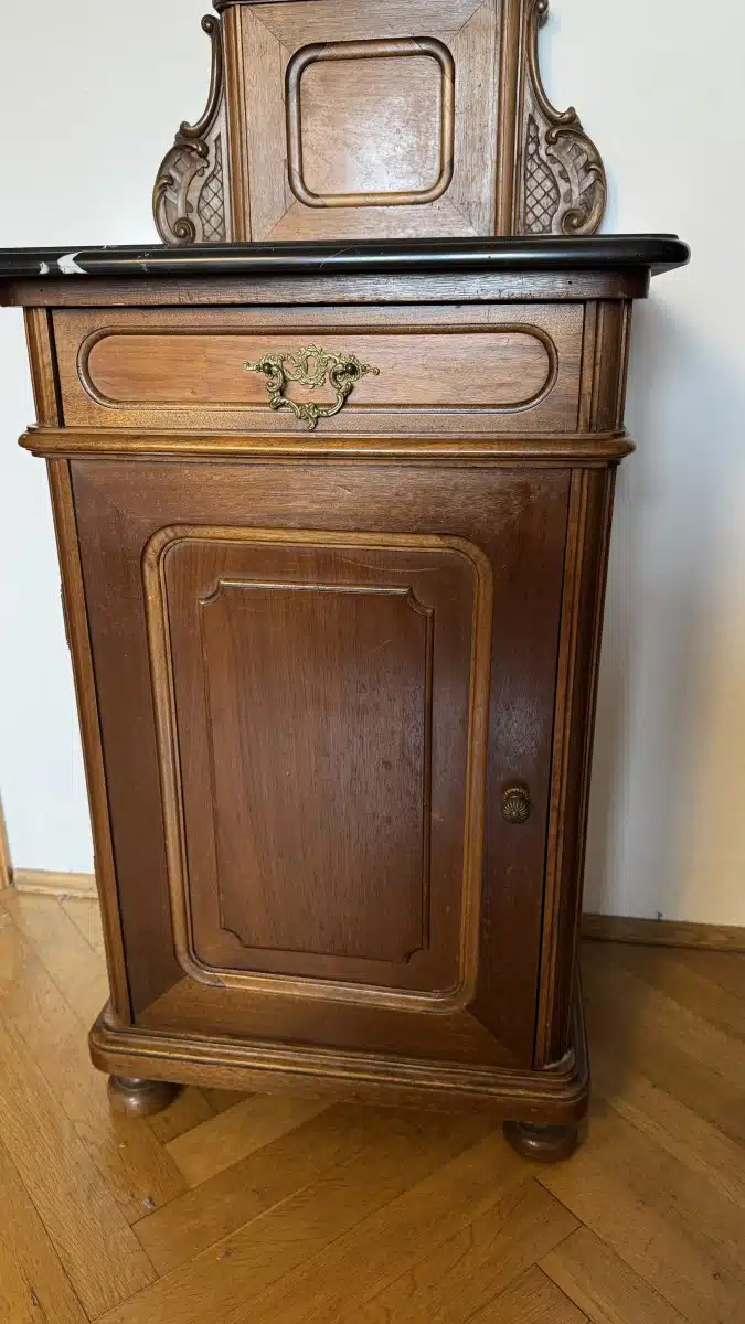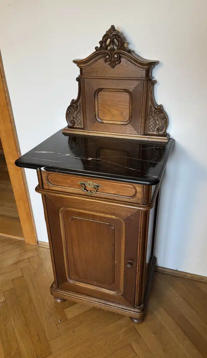 Pfeiferlbarock, Nachttisch mit Marmorplatte, 1 Türe, 1 Lade, B53cm H 120cm T 40cm