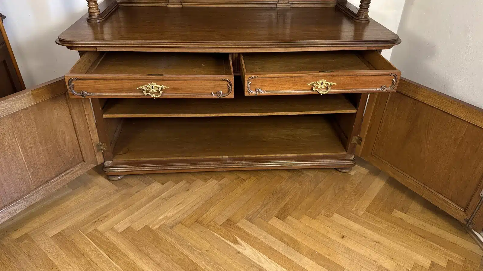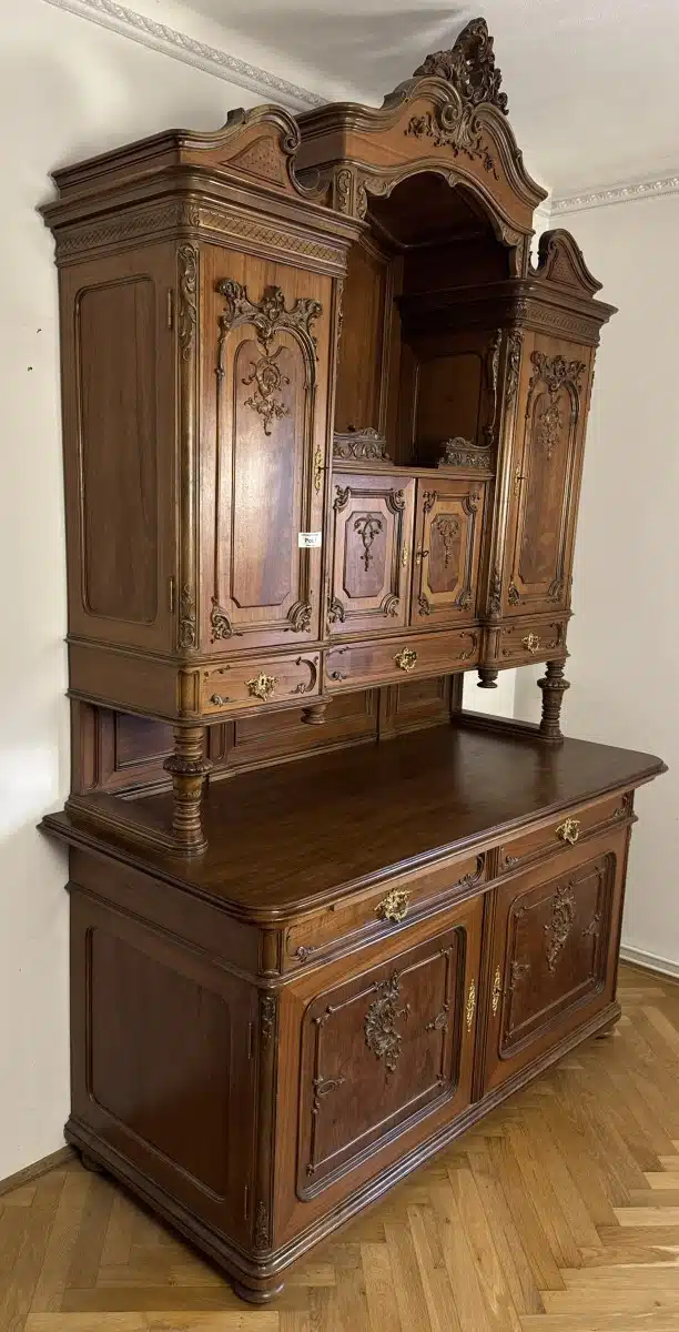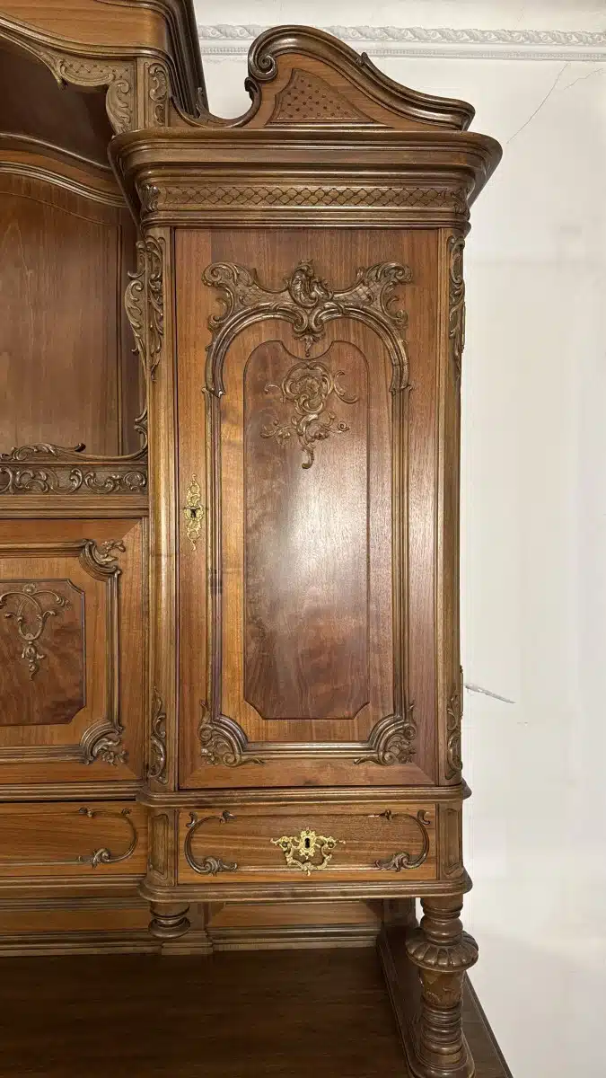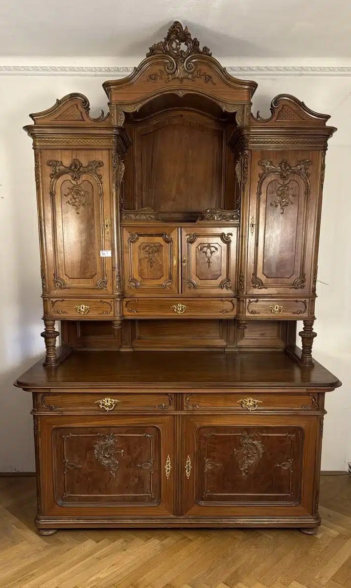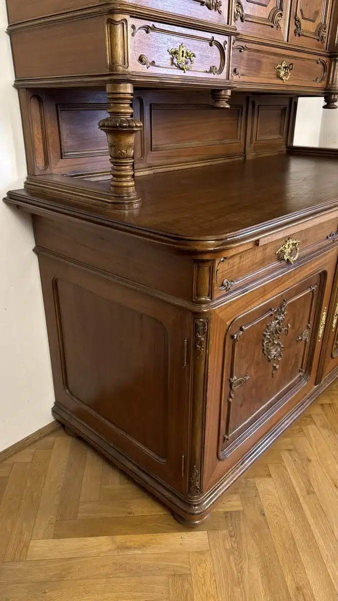 Pfeiferlbarock, Prächtige Wiener Aufsatzkredenz, wunderschönen Schnitzereien. Historismus – um 1880, Der Aufsatz kann getrennt transportiert werden.