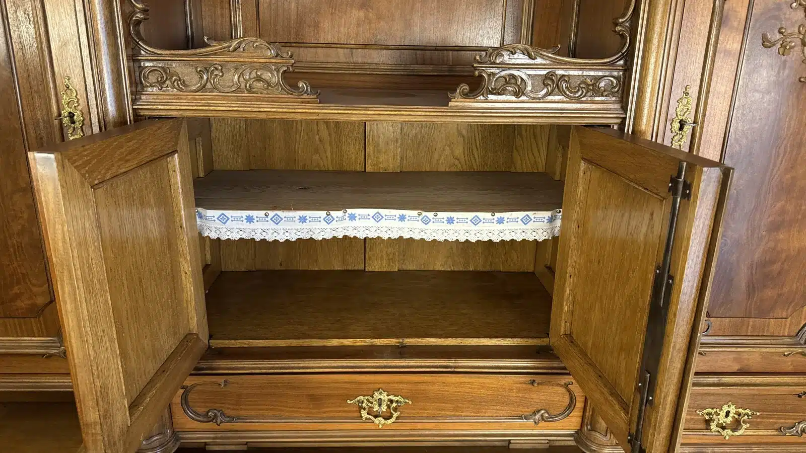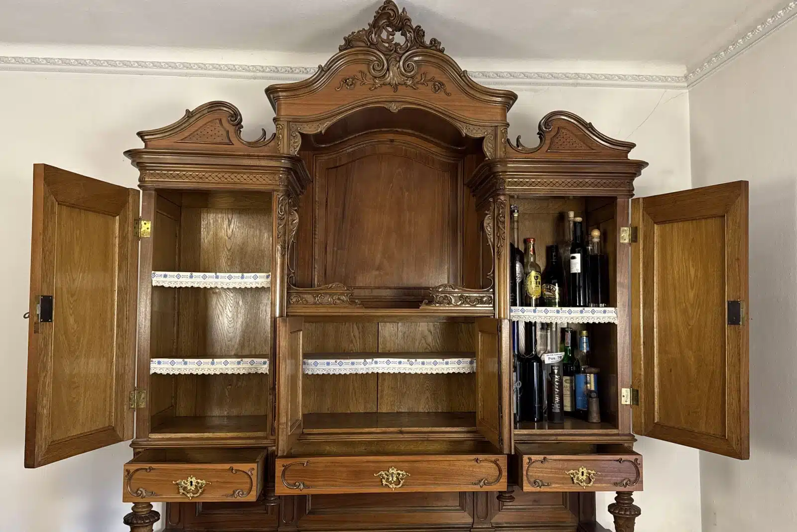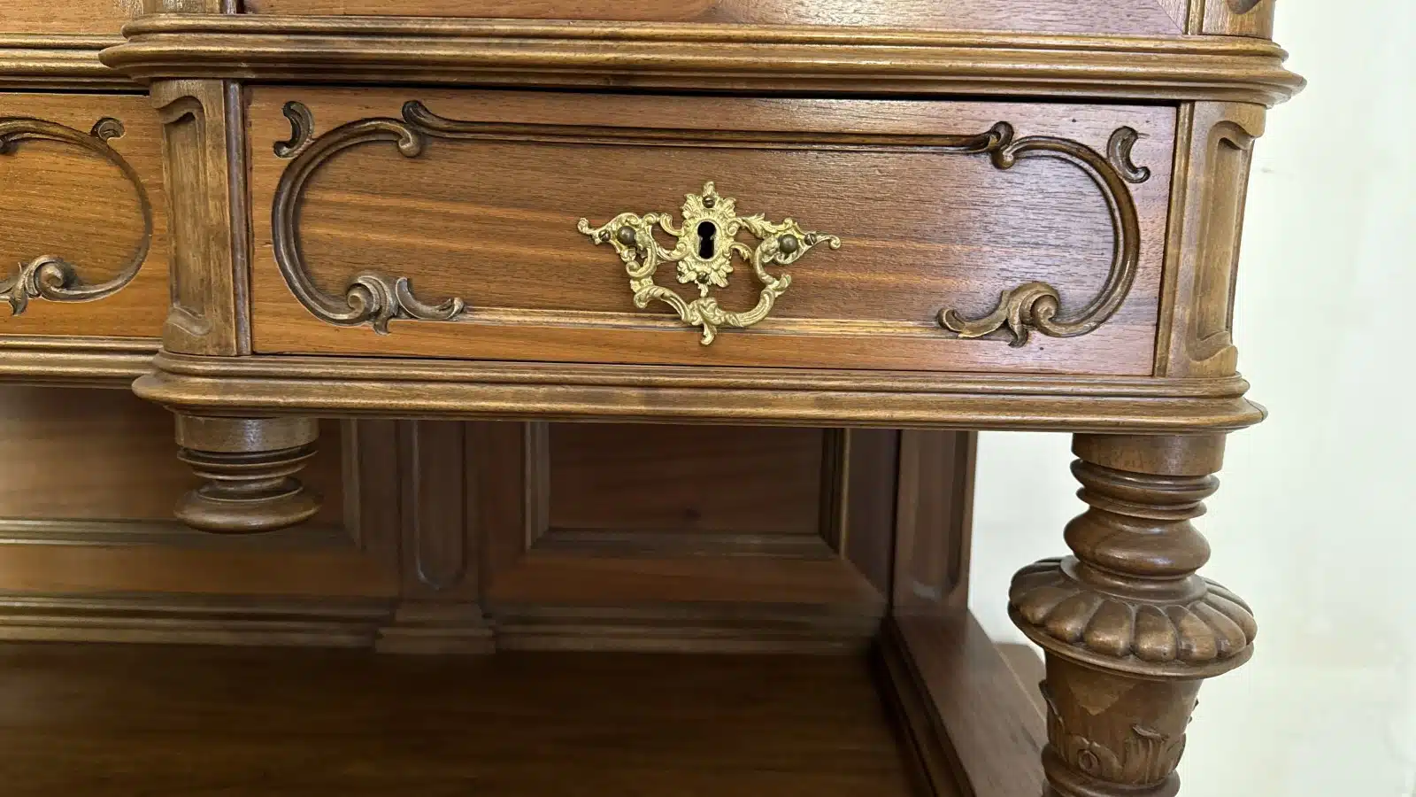 Pfeiferlbarock, Prächtige Wiener Aufsatzkredenz, wunderschönen Schnitzereien. Historismus – um 1880, Der Aufsatz kann getrennt transportiert werden.