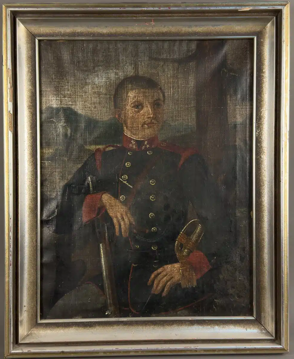Porträt, französischer Offizier , um 1800, Öl auf Leinwand, aus aristokratischem Besitz, 50×38 cm Rahmen 60×49 cm