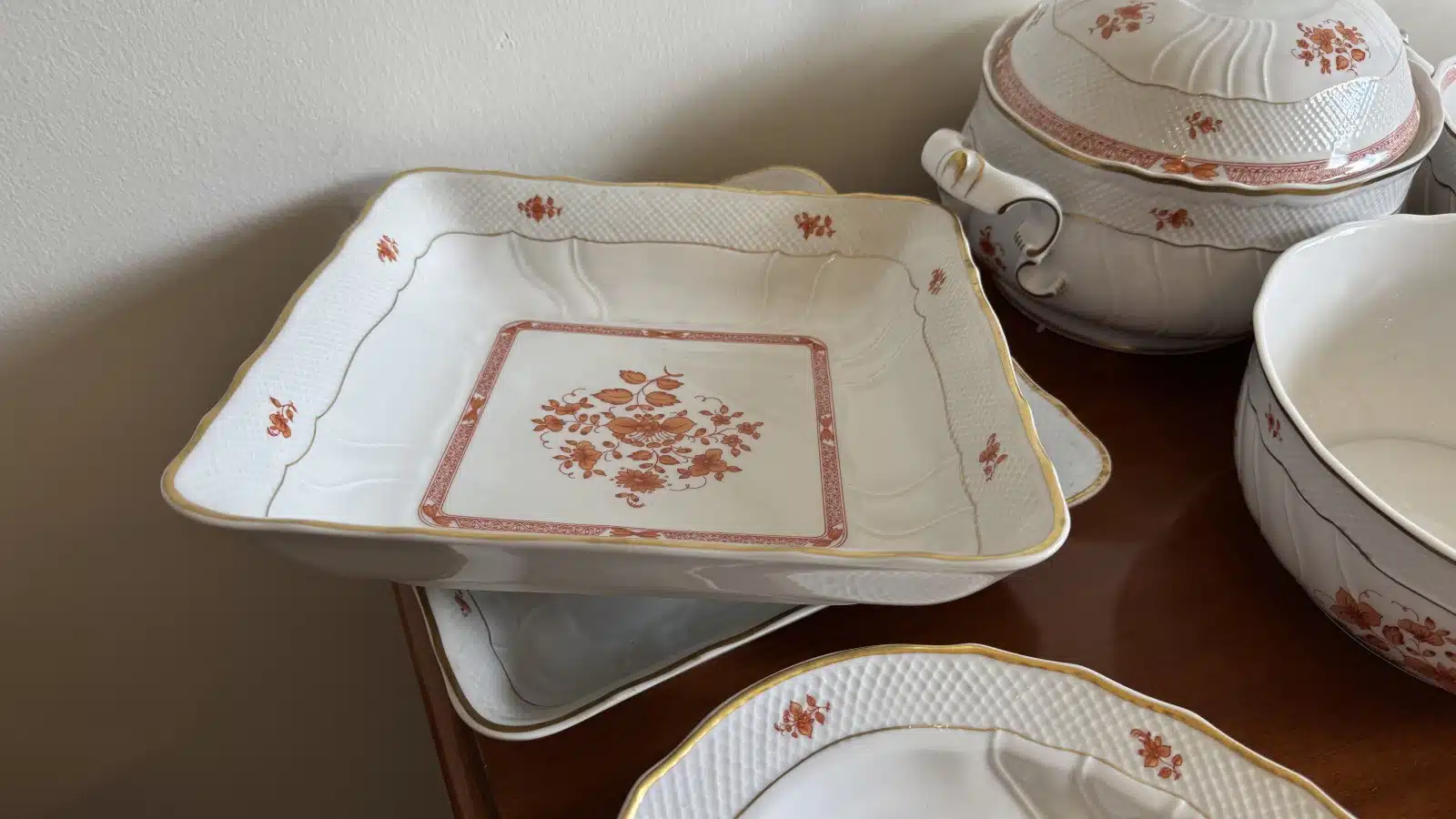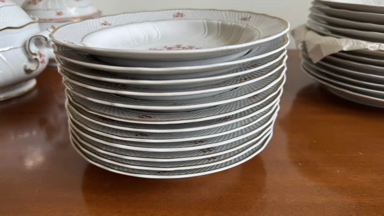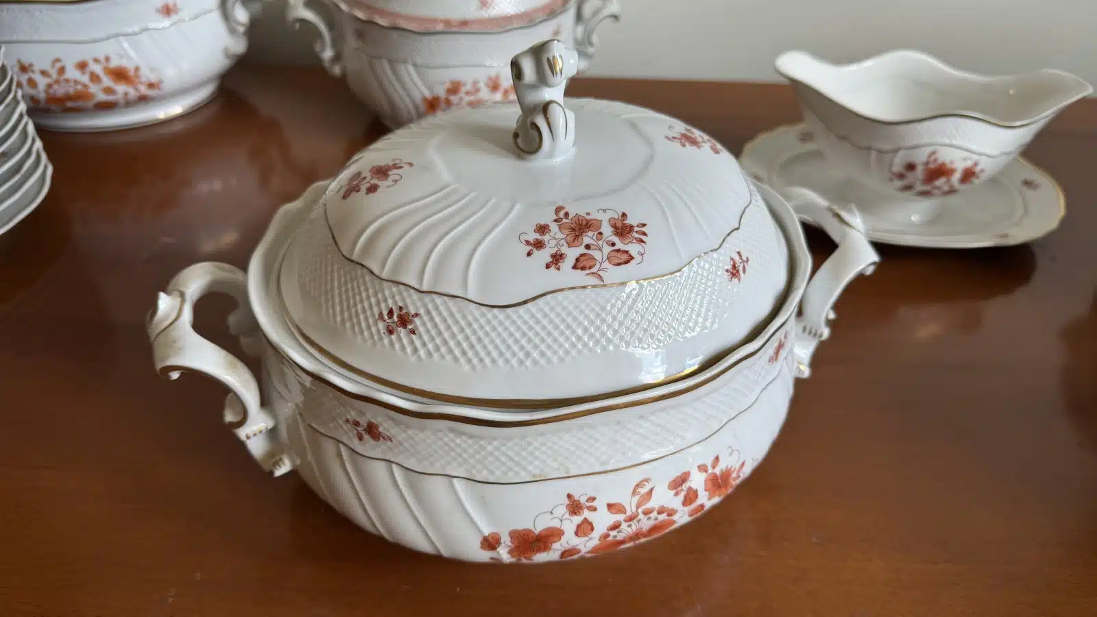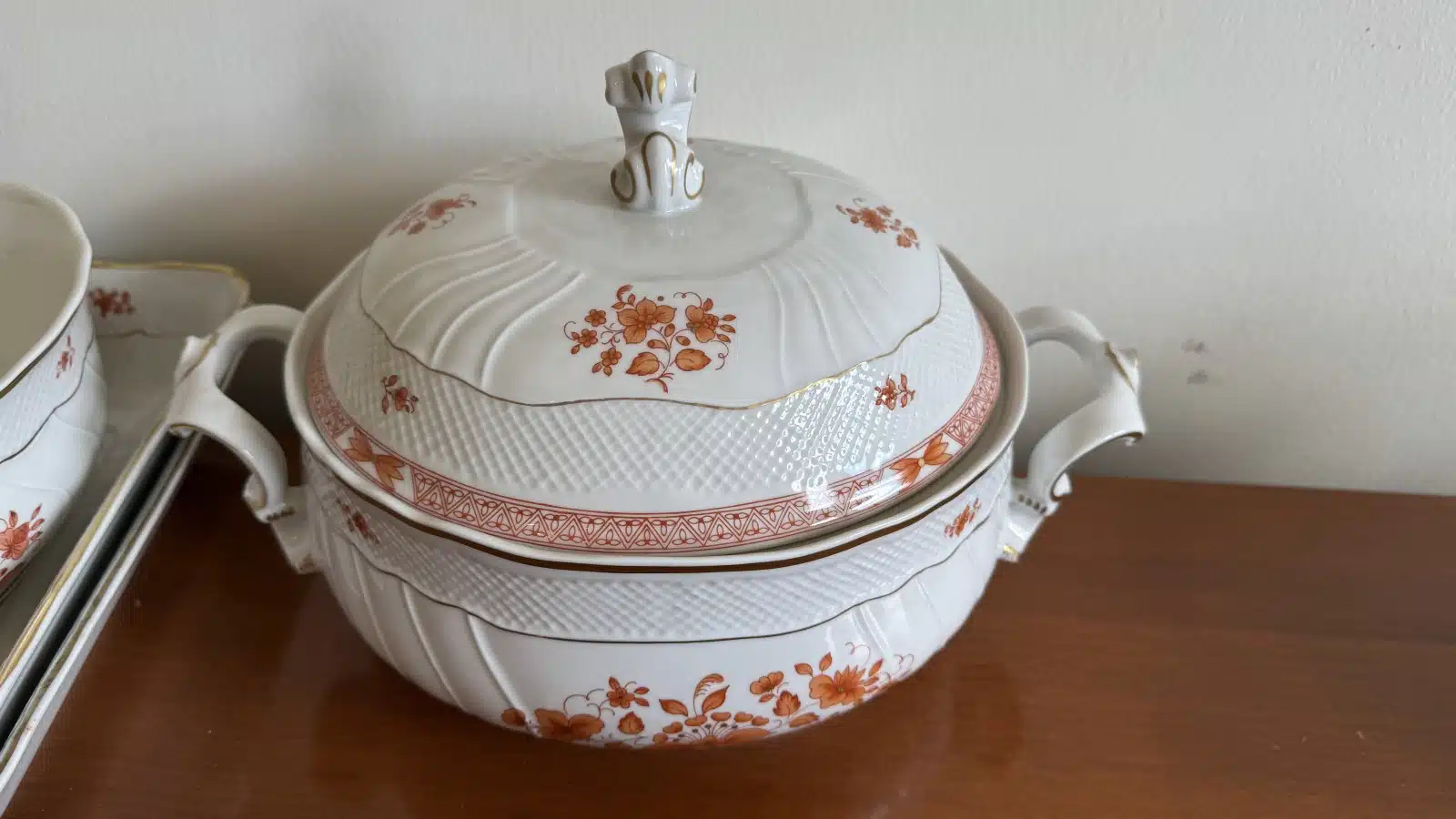 Posten – Hollohaza Porzellan ca. 50 Teile – Service – Vorlegeplatte, Teller, Suppenteriene uvm.