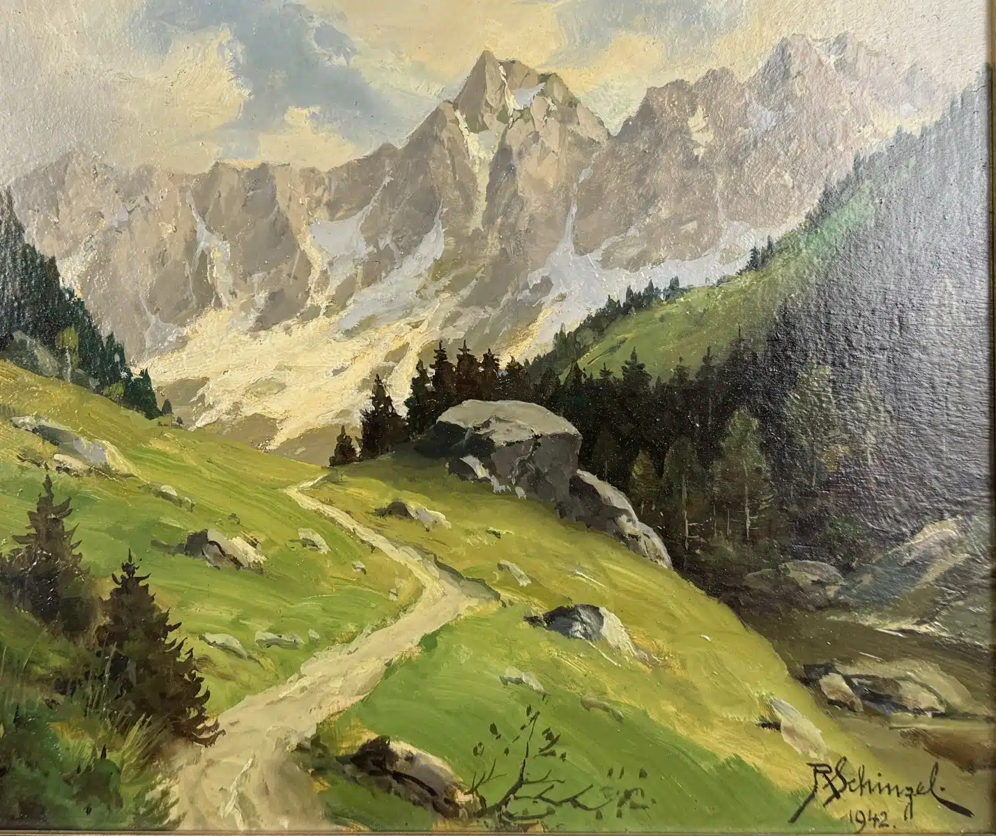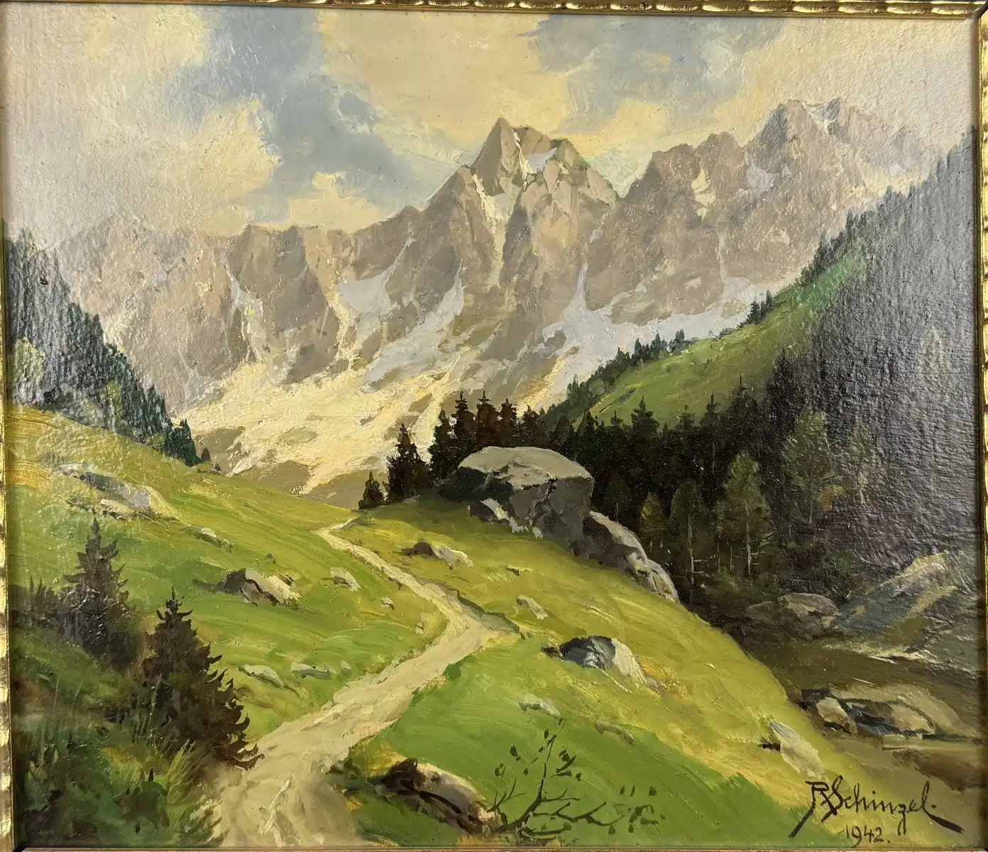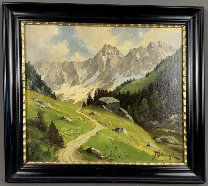 Reinhard Schinzel (Großlobming 1879-1954 Villach) signiert R Schinzel, Öl auf Platte, 29×25 cm, gerahmt, 36×32 cm