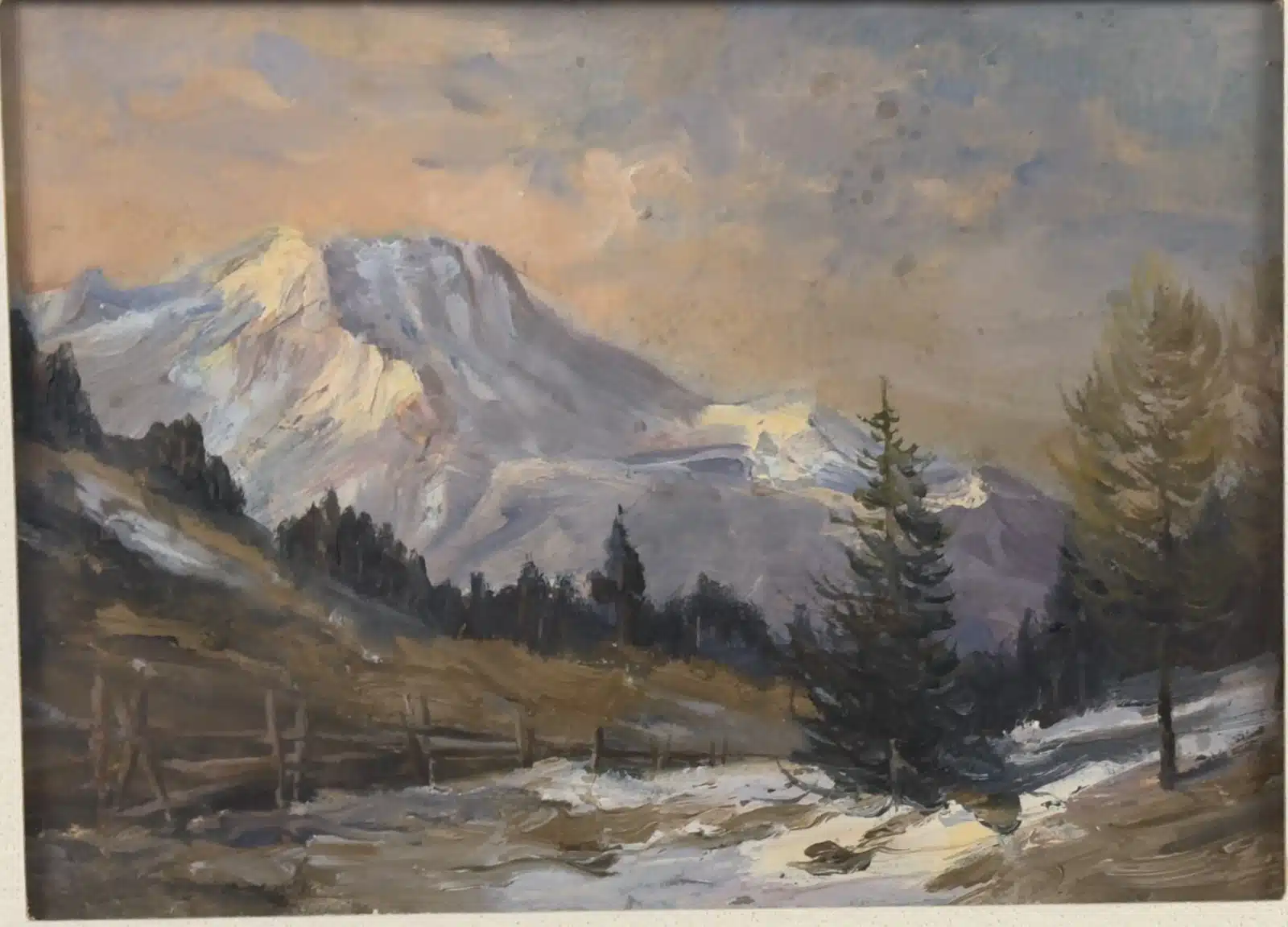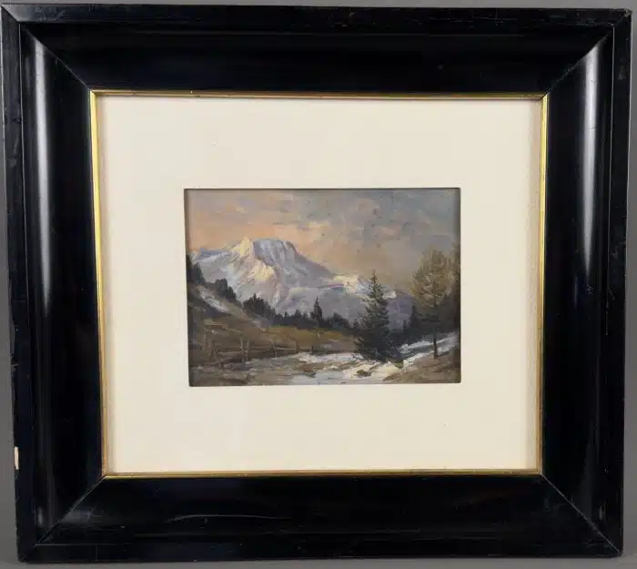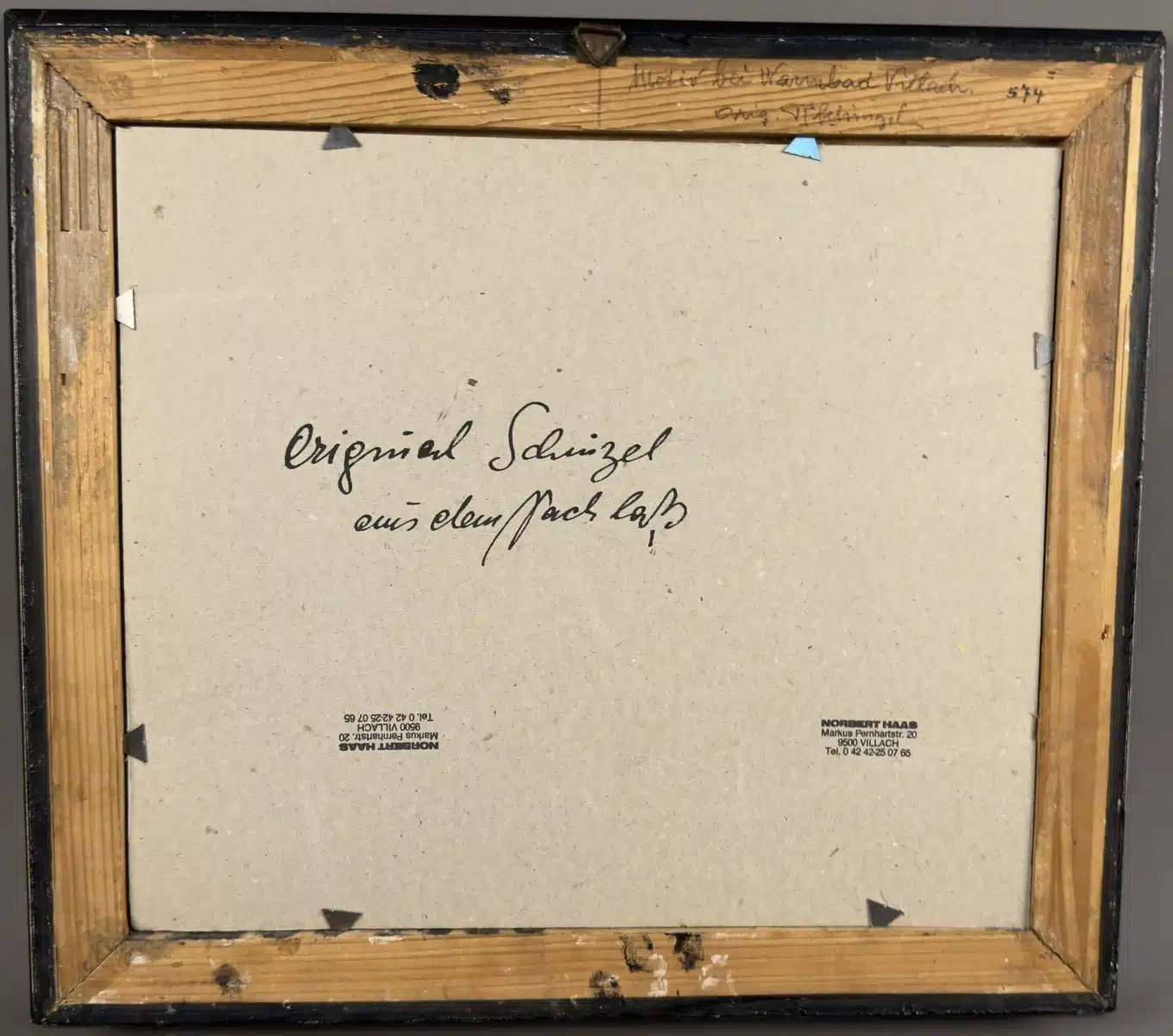 Reinhart Schinzel (Großlobming 1879-1954 Villach) bei Warmbad Villach, Öl auf Platte, Original aus Nachlass 18×13 cm Rahmen 38×34 cm