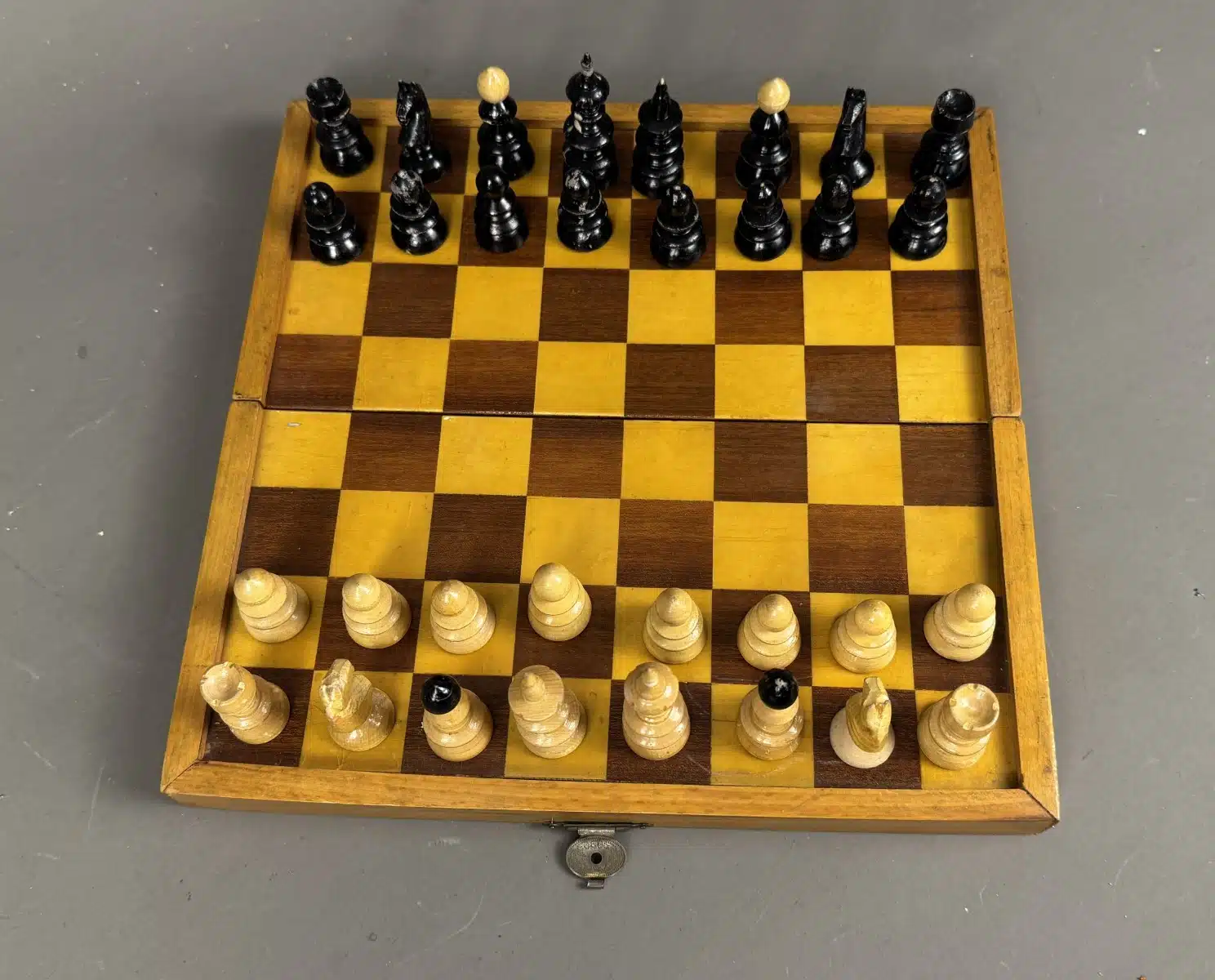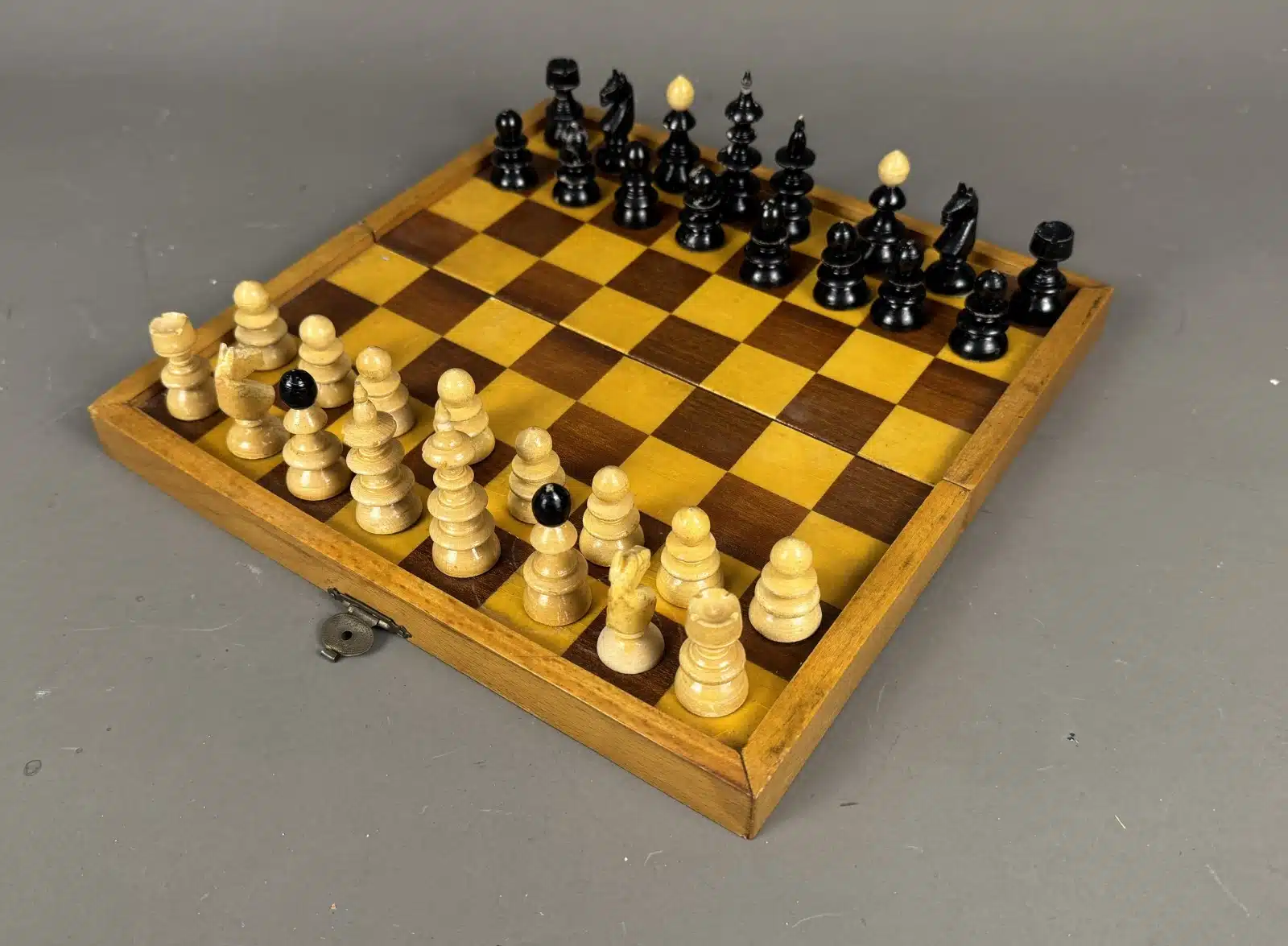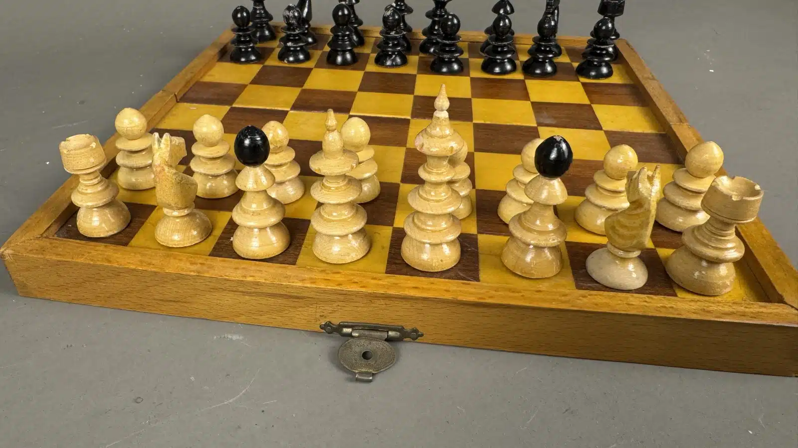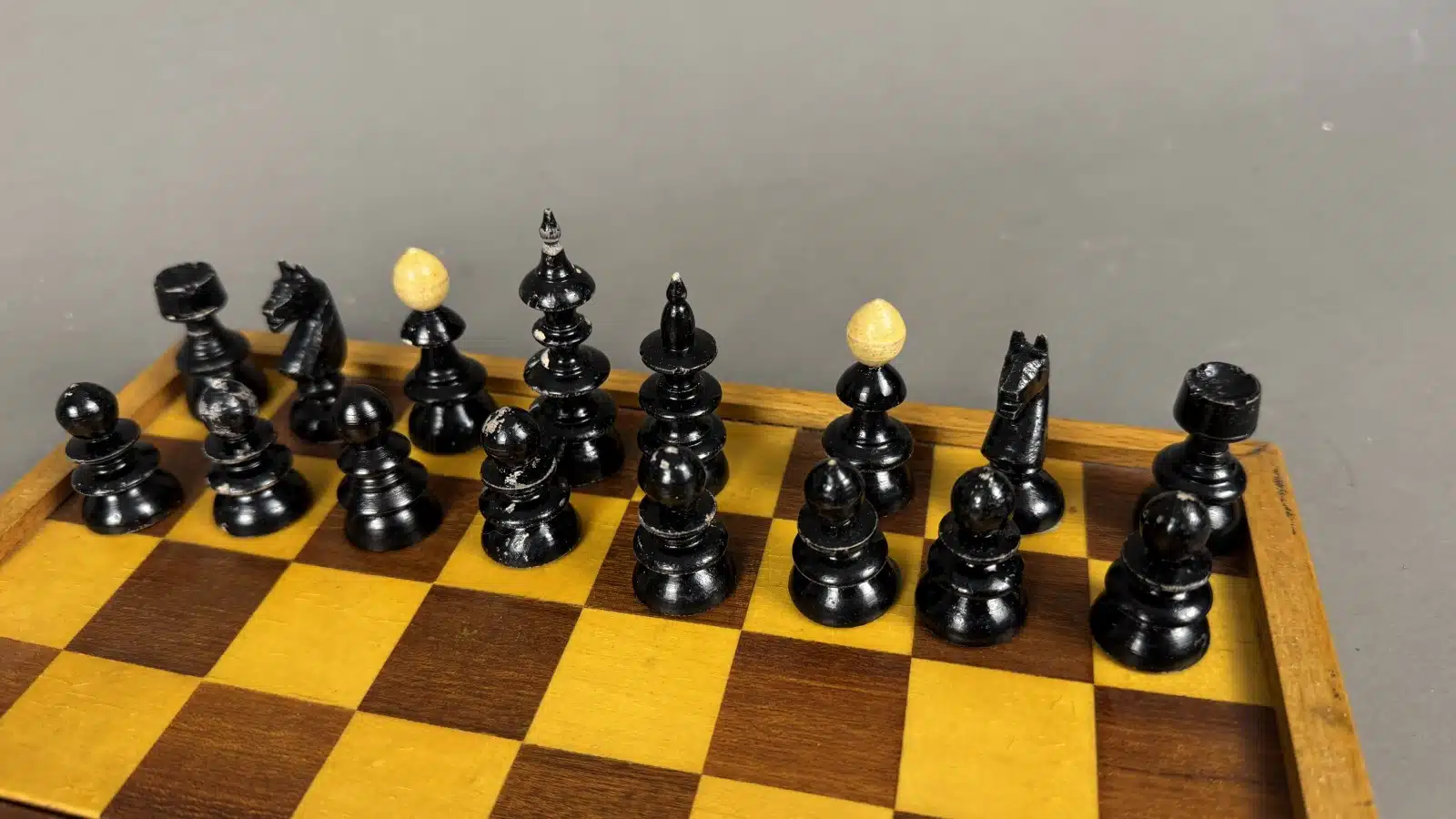 Schachbrett mit Holzfiguren