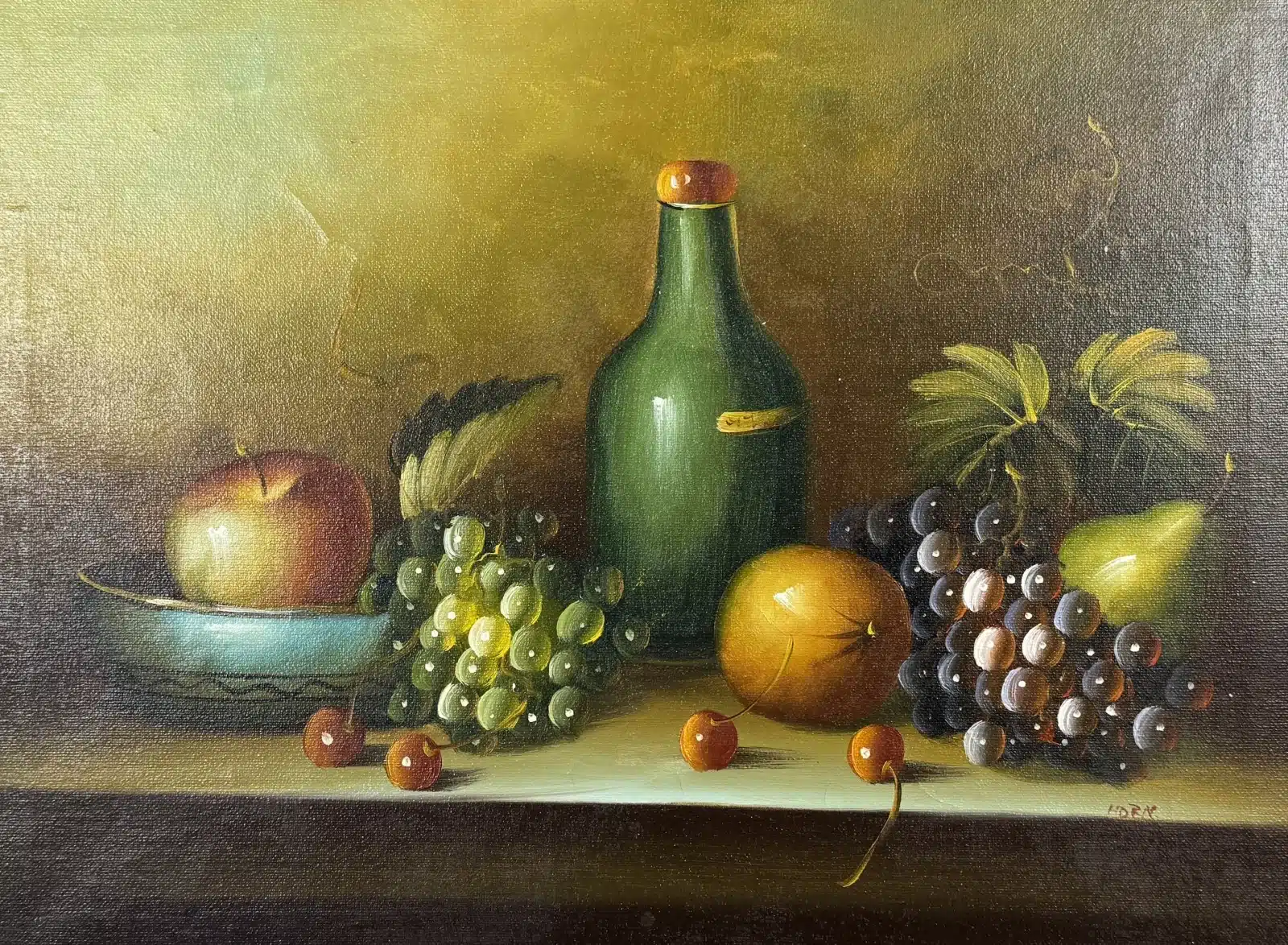 Stillleben, Öldruck auf Leinwand, im Druck signiert, 45×36 cm
