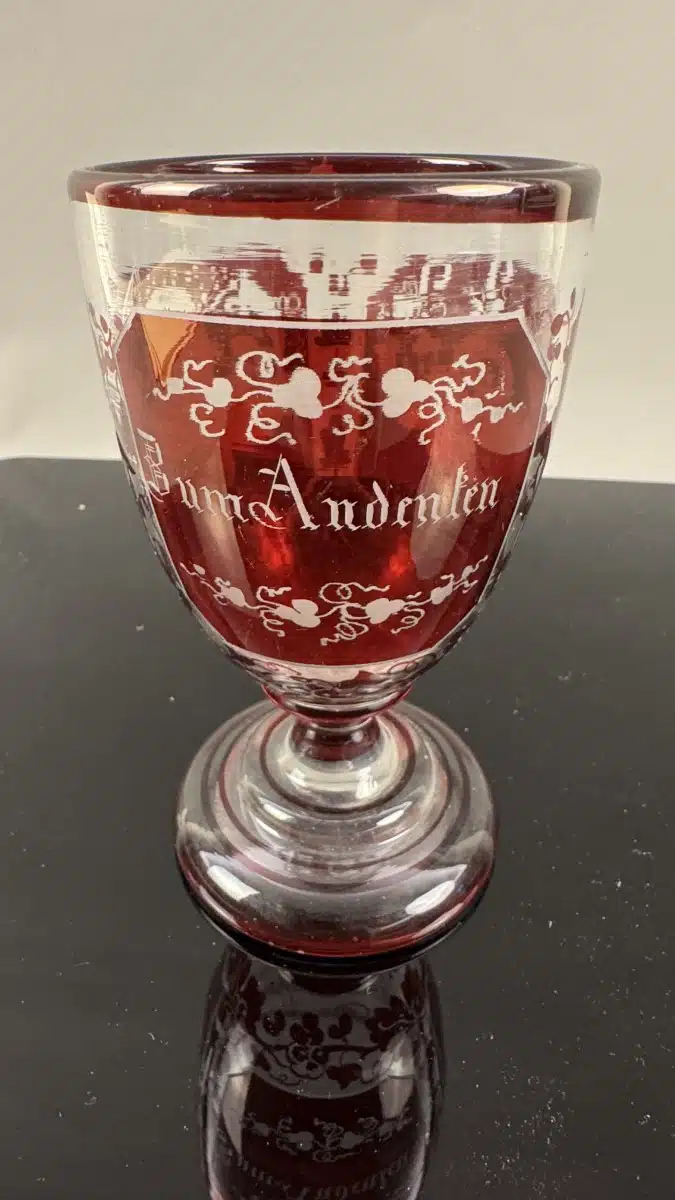 Switbert Lobisser – Aus persönlichem Besitz – antiker Fußbecher, Zum Andenken, H 13 cm