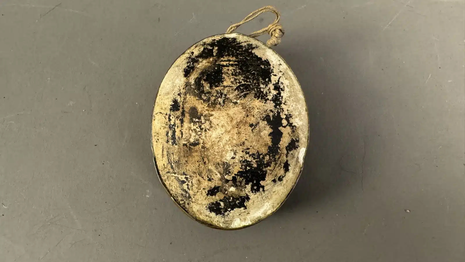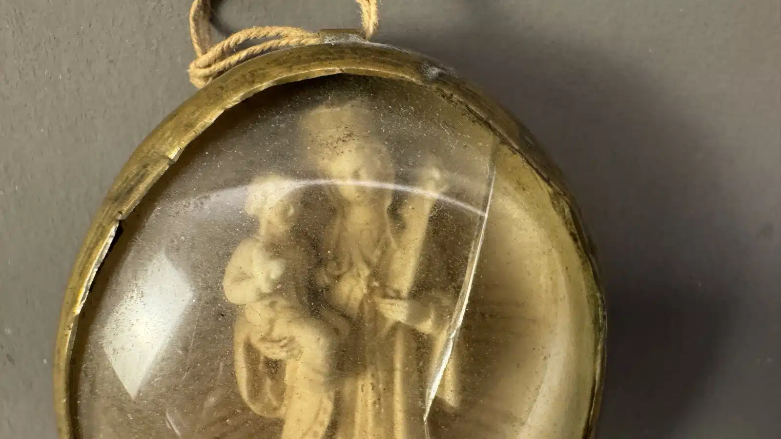 Switbert Lobisser – Aus persönlichem Besitz – antikes religiöses Medaillon, 19. Jahrhundert, Maria mit dem Jesuskind H 5,5 cm