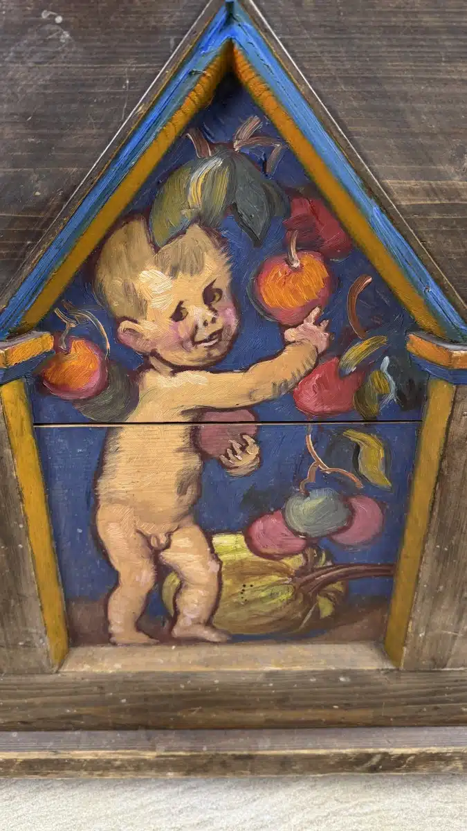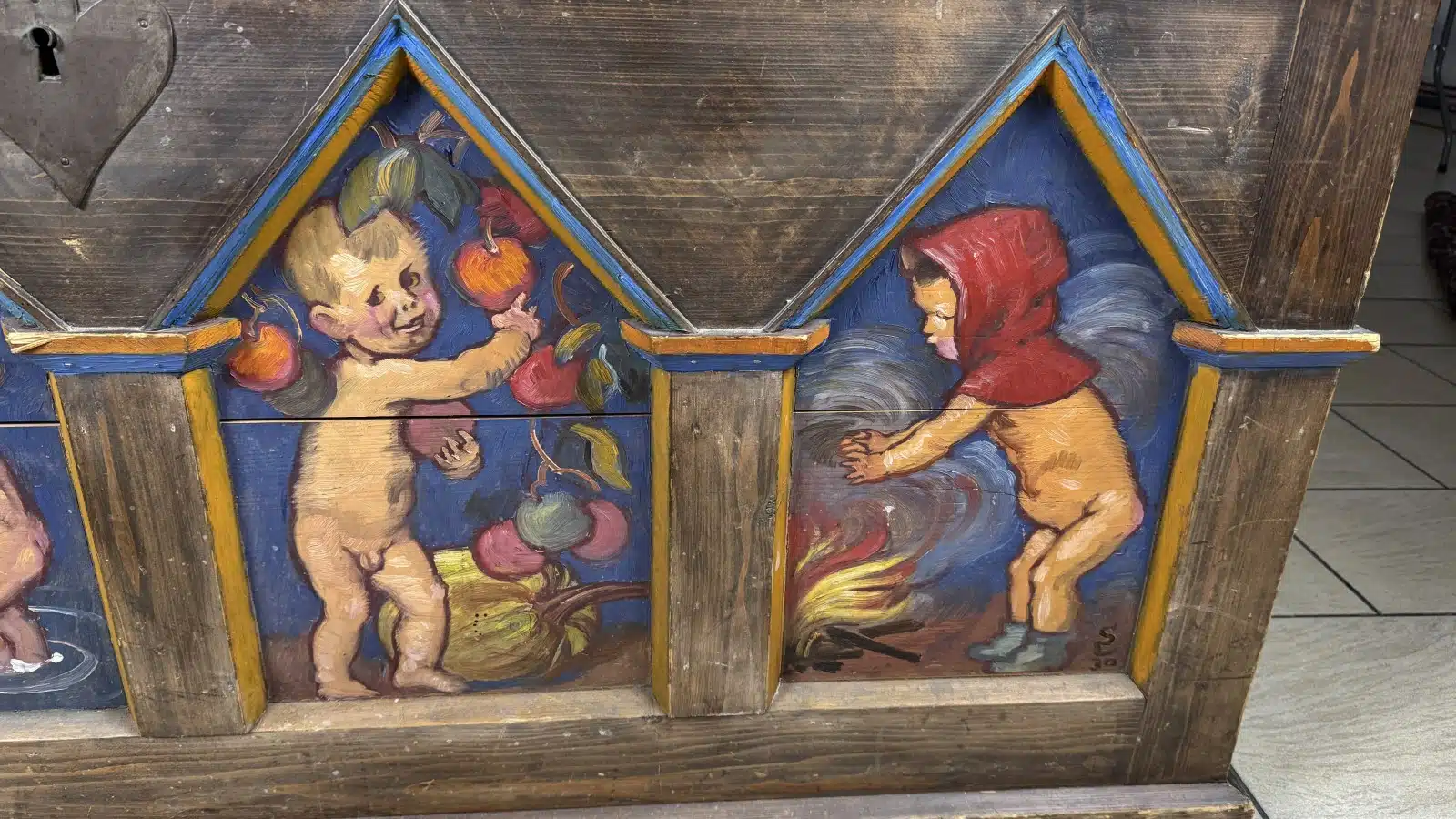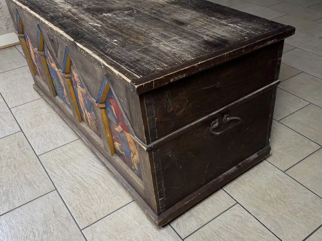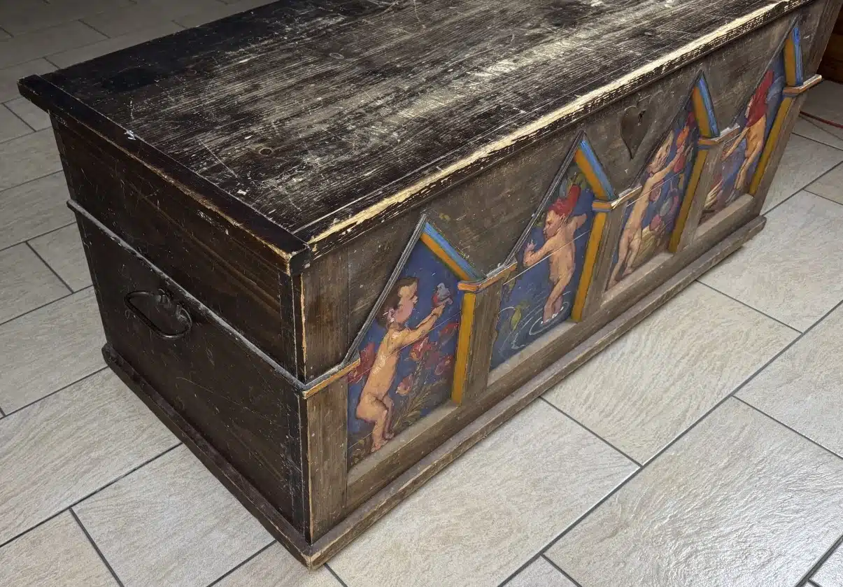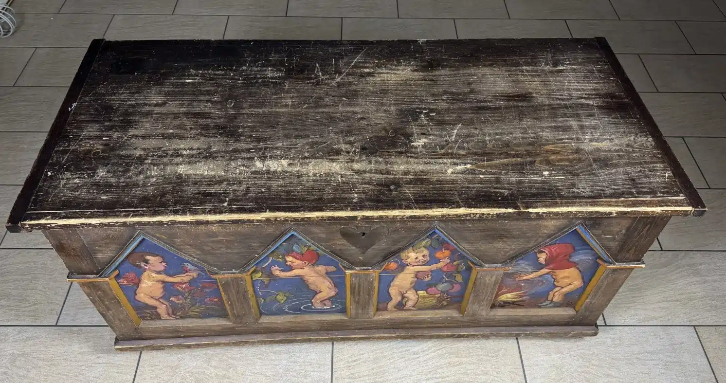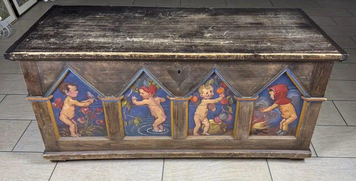 Switbert Lobisser – Aus persönlichem Besitz – Bauerntruhe seiner Eva „Ev“ Luise Bleymaier mit den 4 Jahreszeiten von Lobisser bemalt, Frühling, Sommer, Herbst, Winter L 154 T 70 H 79 cm 4 Stück – Kohle und Aquarell – Entwurf zur Bauerntruhe seiner Ev. siehe Beschreibung Abholungsort: Galerie Magnet Völkermarkt !!