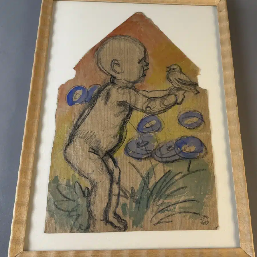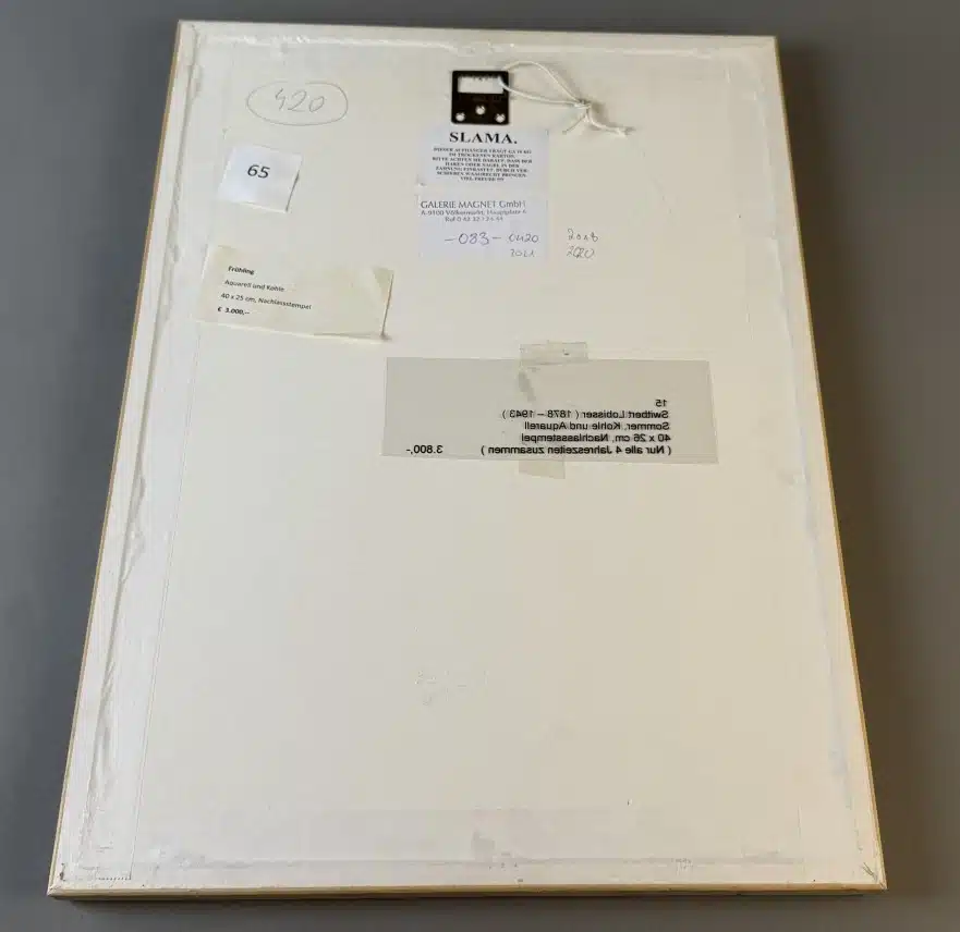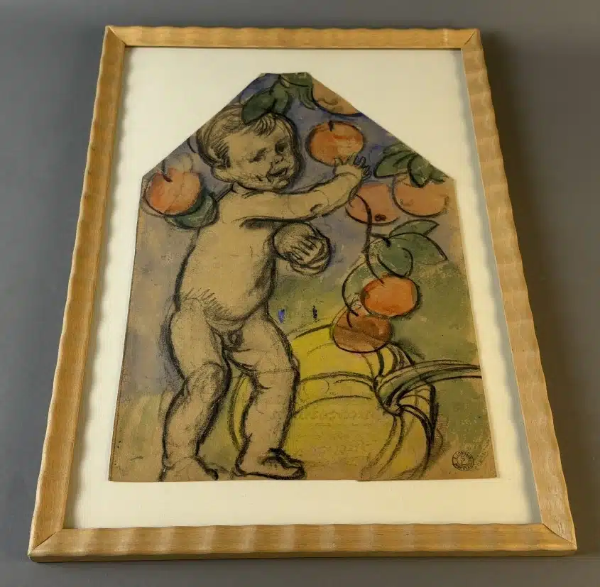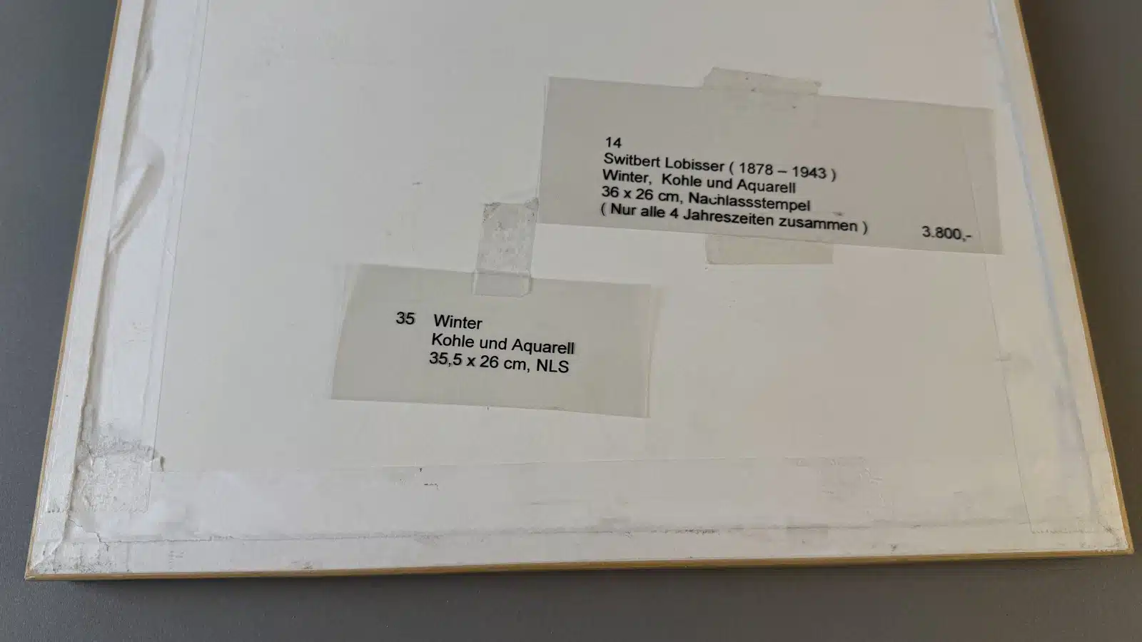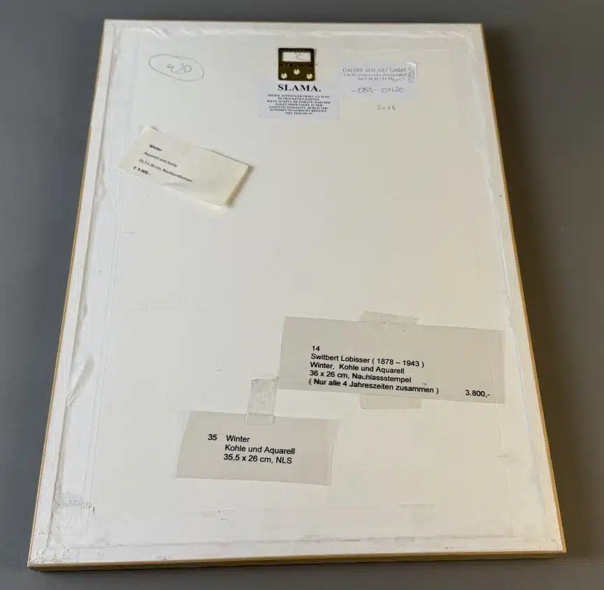 Switbert Lobisser – Aus persönlichem Besitz – Bauerntruhe seiner Eva „Ev“ Luise Bleymaier mit den 4 Jahreszeiten von Lobisser bemalt, Frühling, Sommer, Herbst, Winter L 154 T 70 H 79 cm 4 Stück – Kohle und Aquarell – Entwurf zur Bauerntruhe seiner Ev. – Frühling, Sommer, Herbst und Winter, Nachlassstempel 47×34 cm Blatt 39×25 cm Abholungsort: Galerie Magnet Völkermarkt !!